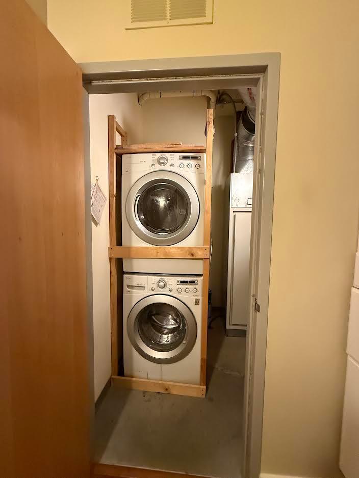 The updated kitchen features stainless steel appliances, ample counter space, and a convenient center island—perfect for entertaining or casual dining. There is also in-unit laundry for added convenience.
