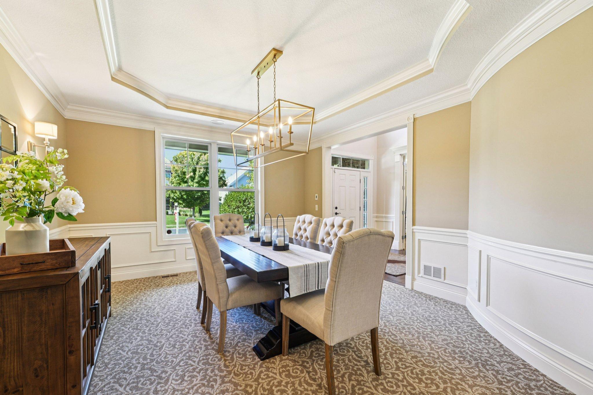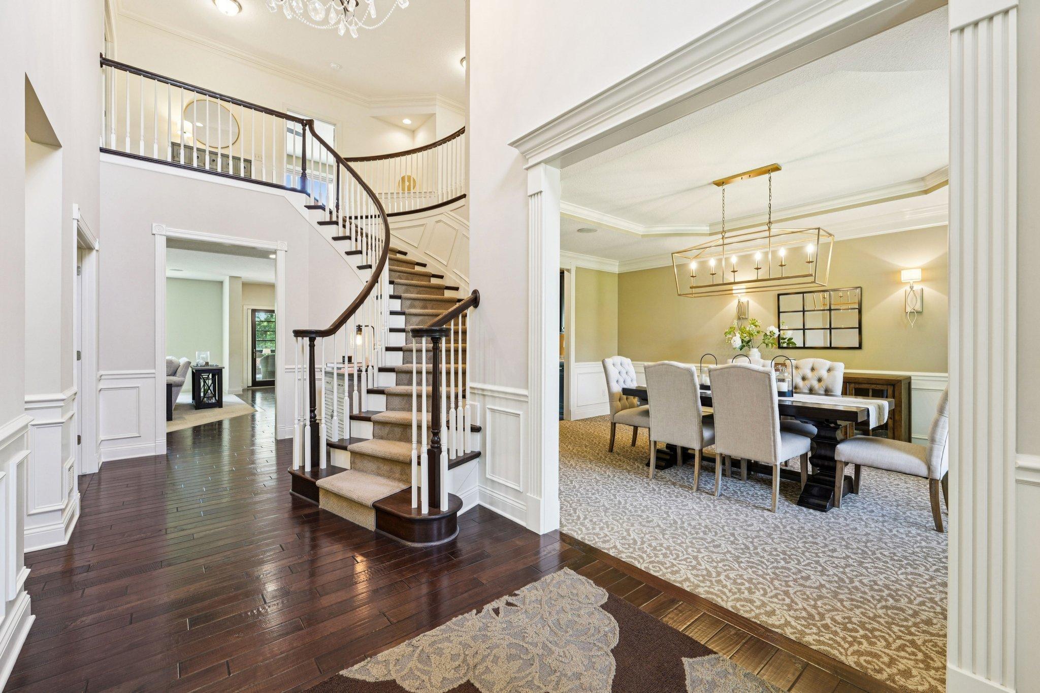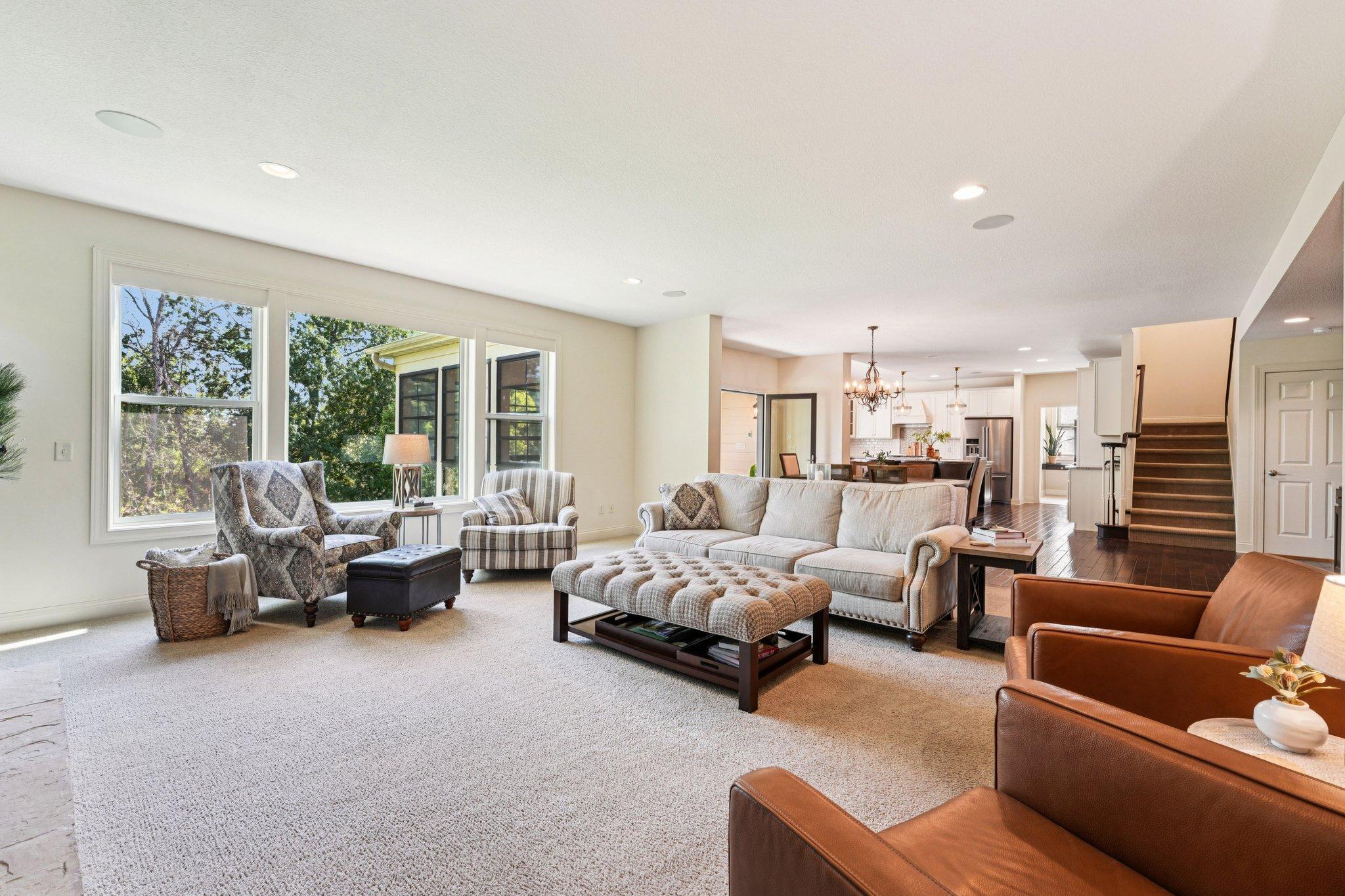 This beautifully cared for two-story home in model- like condition is ready for you to unpack and enjoy. Quality craftsmanship is evident throughout this stunning two-story property, complete with every imaginable upgrade, set on a serene, private wooded, walkout lot. The open and airy floor plan showcases large windows, soaring 10-foot ceilings, and generously sized rooms, all featuring meticulous attention to detail. The gourmet kitchen is a chef’s dream, outfitted with top-of-the-line appliances, a stylish dry bar with a beverage fridge, and a spacious pantry. It seamlessly flows into a gorgeous family room, perfect for entertaining. The main level also includes an elegant dining room, a functional office, and a versatile den, providing ample flexible space for your lifestyle. The real highlight is the stunning three-season porch, complete with a cozy two-sided fireplace, heated tile floors, and a mix of glass windows and convenient EZ screens. This tranquil space opens to a spacious, maintenance-free deck—ideal for outdoor gatherings. Upstairs, you’ll discover five total bedrooms, including a luxurious primary suite featuring an expansive bathroom and his-and-her closets. The additional four bedrooms encompass two with en-suite bathrooms and one Jack-and-Jill bath, perfect for family or guests. The lower level boasts a sizable media room with a wet bar, a 6th BR / exercise space, and abundant storage. Outside, enjoy professionally designed landscaping, an irrigation system, and an oversized garage for all your needs. This inviting neighborhood offers fantastic amenities, including a community pool, park, and walking trails. Experience the tranquility of this peaceful retreat, close to parks, shops, and schools. Don't miss your chance to own this mint-condition gem!