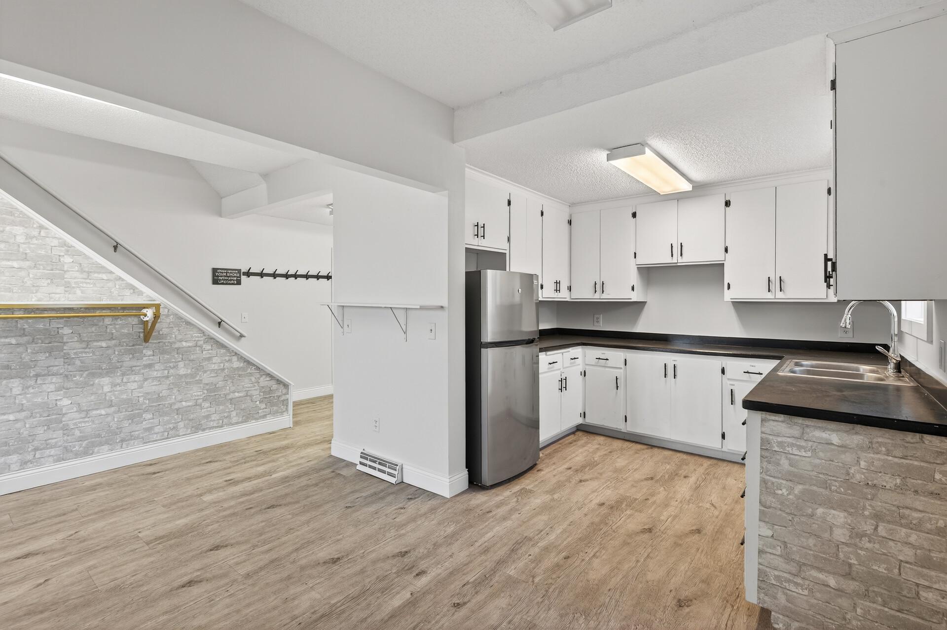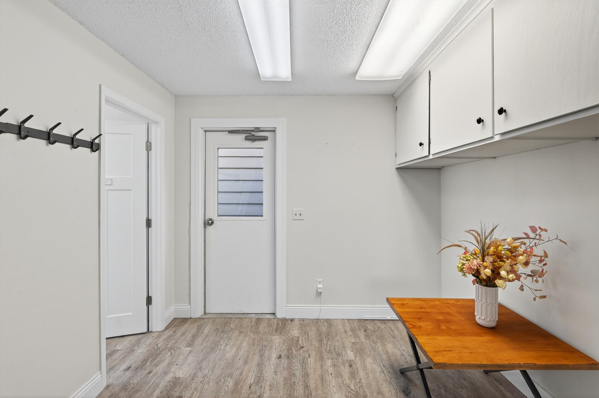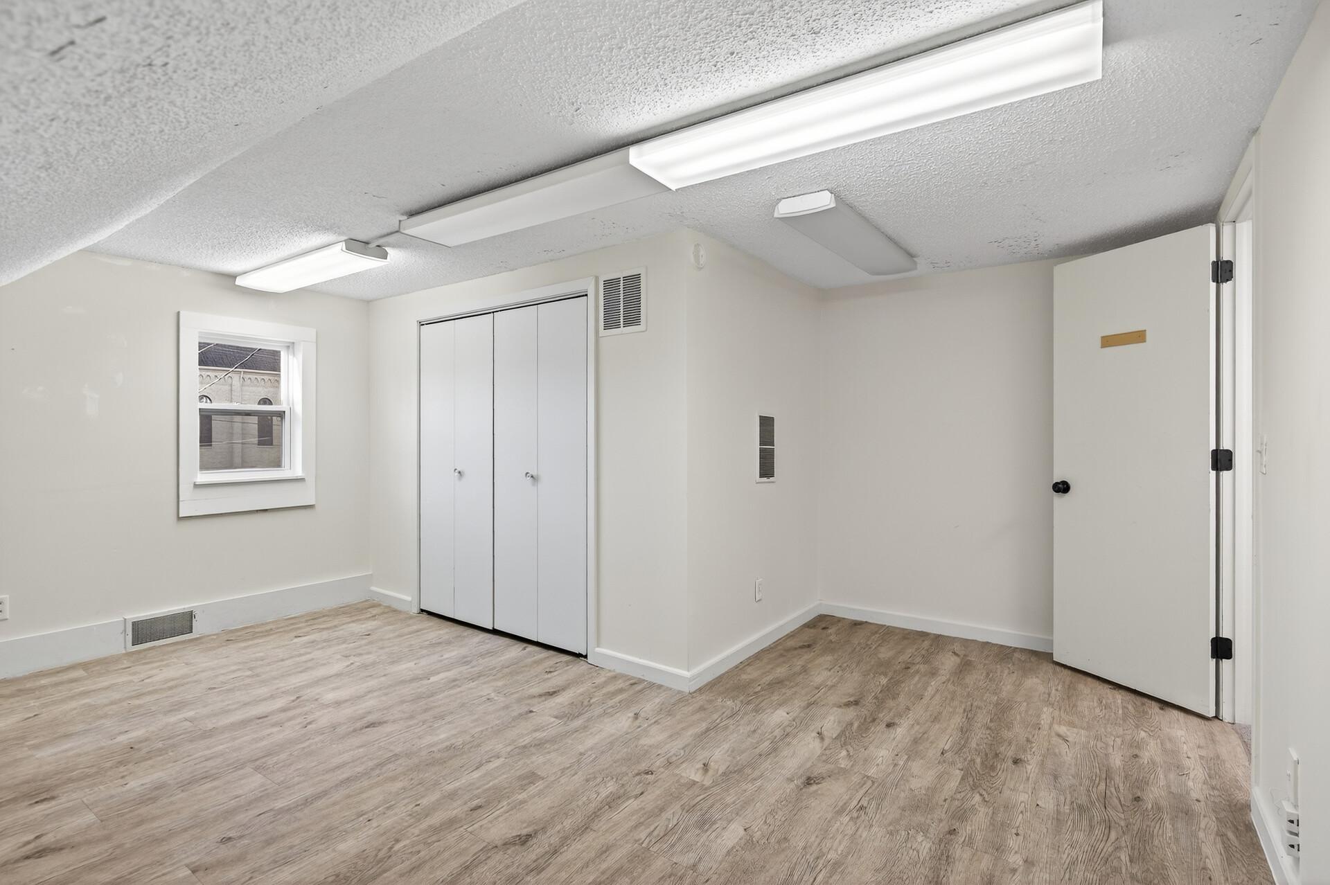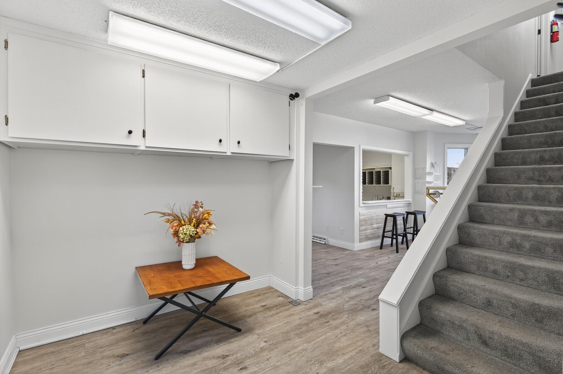 The main level features a welcoming entryway with a bright waiting area and a reception space complete with built-in shelving—perfect for a retail display or client check-in. You’ll also find a private office and a spacious additional room that can serve as a conference area or team workspace. The large kitchen provides convenience for staff breaks or casual meetings, and LVP flooring adds modern style and durability throughout.