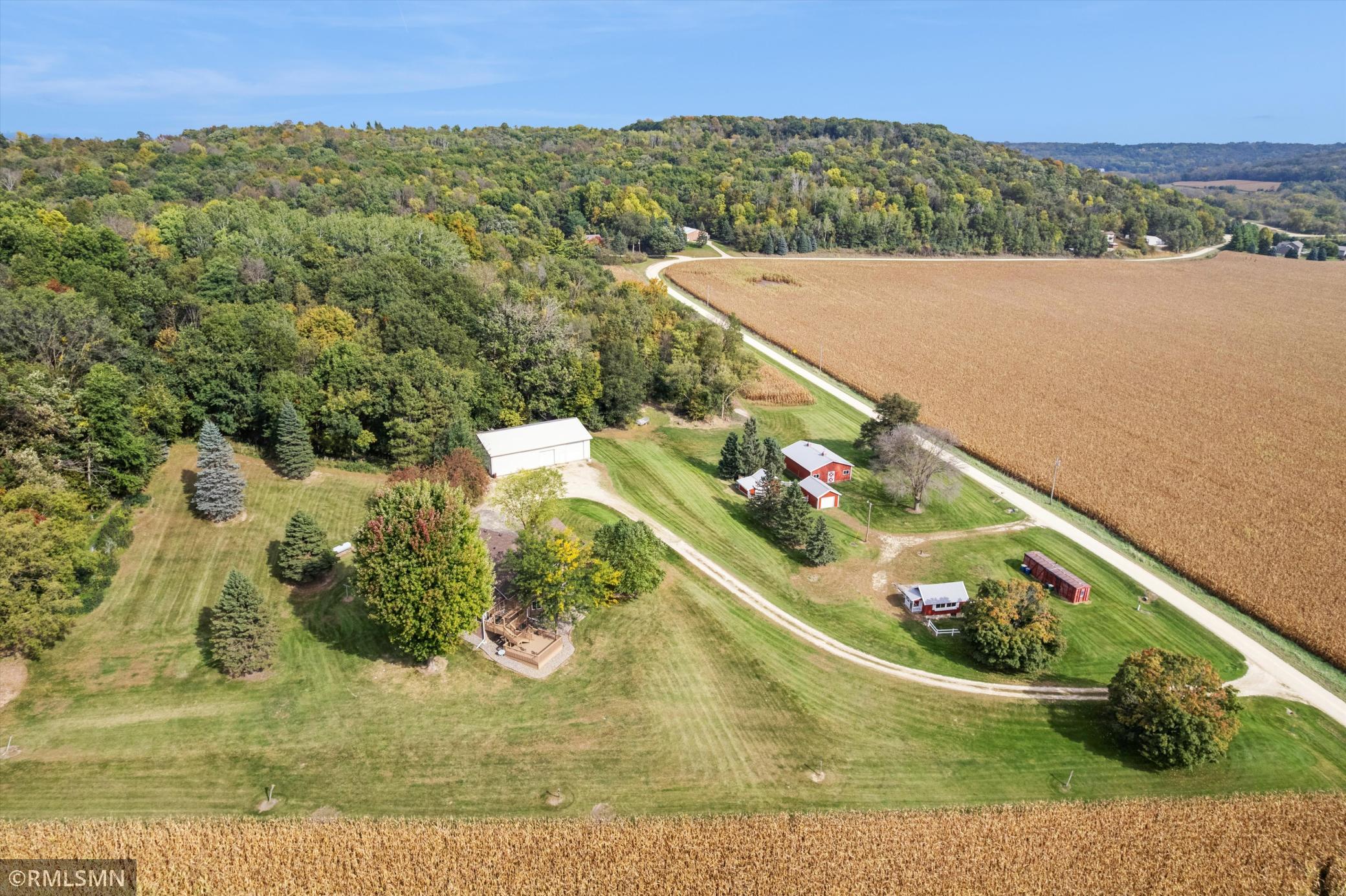 166.88 acres in the heart of Beautiful Sogn Valley! Discover a rare opportunity to own 166.88 acres of rolling countryside in the scenic Sogn Valley. This property has it all - expansive views, a spacious home, multiple outbuildings, and trails perfect for horseback riding, hunting, or exploring! The 4 - bedroom, 3 - bath rambler offers comfortable one-level living with a bright, open layout. Main level features include: Primary ensuite with a private little deck (perfect for morning coffee overlooking the valley), second bedroom/office, living room with stone fireplace, vaulted ceilings, dining room, awesome kitchen with eat around island and plenty of cupboard and countertop space, four season porch, full bath, laundry with cupboards and folding counter! Walk out lower level features: large family room out to an amazing patio area, two spacious bedrooms, office, plenty of storage, space for a kitchenette or wet bar area, and a full bath! There is an attached, heated, 2 car garage with a closet and cupboard space. The exterior hosts an amazing deck (recently redone) - perfect for entertaining and sitting and enjoying the valley views. Outbuildings: 64 x 40 pole shed with partial concrete (heated and ac) and then storage on the other side, traditional barn (40 x 30) with box stalls and tack room, single stall garage (25 x 20) for storage, smaller barn for storage or goats, chickens, etc! There is an adorable "cabin" or "bunkhouse" - perfect for kids, guests, hunters - complete with heat, window AC and a compost toilet! The little Cannon River meanders through a portion of the property - adding the natural beauty and providing serene spots to relax or explore! Whether you are looking for a private hunting retreat, horse property, or simply a quiet slice of country life, this land offers endless potential! Recent Updates: Pressure Tank and Water Heater (2025), New Well (2024), Furnace/Heat Pump (2015), New Roof (2023), Water Filtration System.