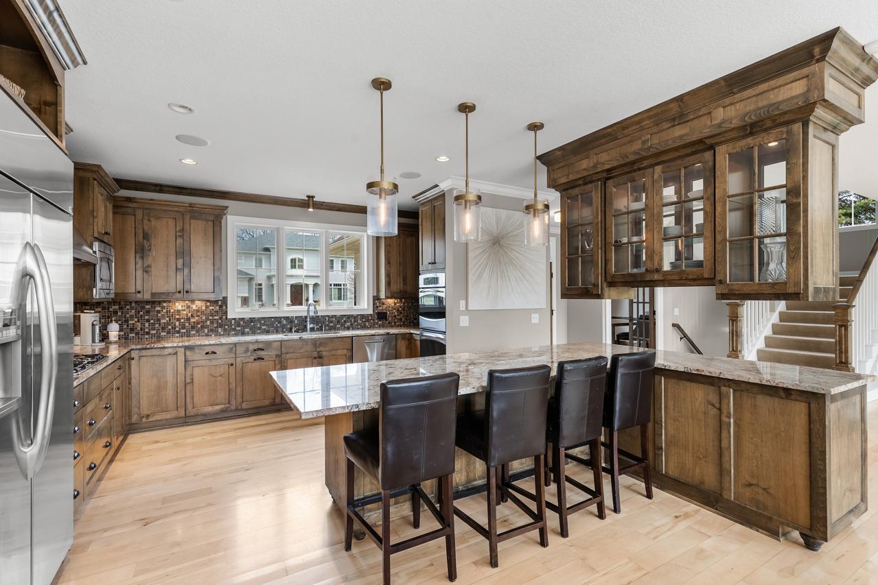Beautifully built by Kroiss, this custom two-story home offers high-end finishes and details at every turn! Enjoy the open and flowing floor plan, natural light-filled spaces, and large gourmet kitchen overlooking the impeccably landscaped backyard. The main-level features an office with gorgeous built-ins, spacious family room, and dining room with access to the patio. The upper-level offers four bedrooms including the spacious Primary Suite with spa-like bathroom (dual vanities, jetted bathtub and walk-in shower). The lower-level is ideal for entertaining guests with a large family room, amusement room and additional bedroom! Backyard with recreational space and mature trees, landscaped to maximize privacy; gorgeous 16 x 36 saltwater pool with auto cover, upgraded texture liner, LED lights in pool + waterfall feature all controlled via app! Highly sought-after Minnetonka School District, within walking distance to MMW! Just minutes to bike/walking trails, shops, restaurants and all the amenities downtown Excelsior has to offer!