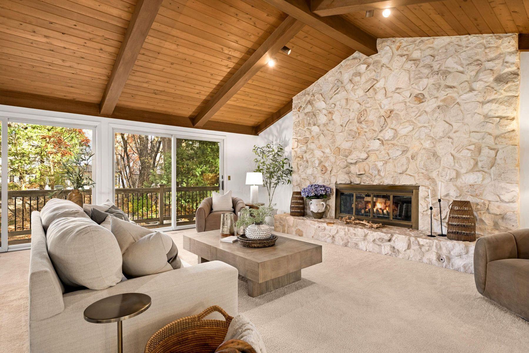 Sprawling Indian Hills rambler on an elevated lot in a private, cul de sac walking distance to EHS, Valley View and Creek Valley! Spread out into this spacious floorplan with a gracious foyer that opens to a stunning vaulted living room. Walls of sliding doors flood the space with light while the stone fireplace and wood beams add architectural significance. The formal dining room will be the hub of holiday entertaining while the kitchen's cozy corner breakfast nook is perfect for everyday. Abundant counter space, storage and natural light make this a kitchen you'll love spending time in. Main level family room offers connection to the backyard deck with main level laundry nearby. Three incredible main level bedrooms are massive in size, with fabulous custom closets. The primary suite boasts a large ensuite with spacious walk-in closet. The walkout lower level offers complete flexibility with a third living space, game area, massive mudroom with connection to the attached, three-car garage. Two additional bedrooms have large windows and would make ideal guest accommodations or wellness studio - especially with the adjacent whirlpool and sauna! A canvas ready to make your own! Don't miss it!
