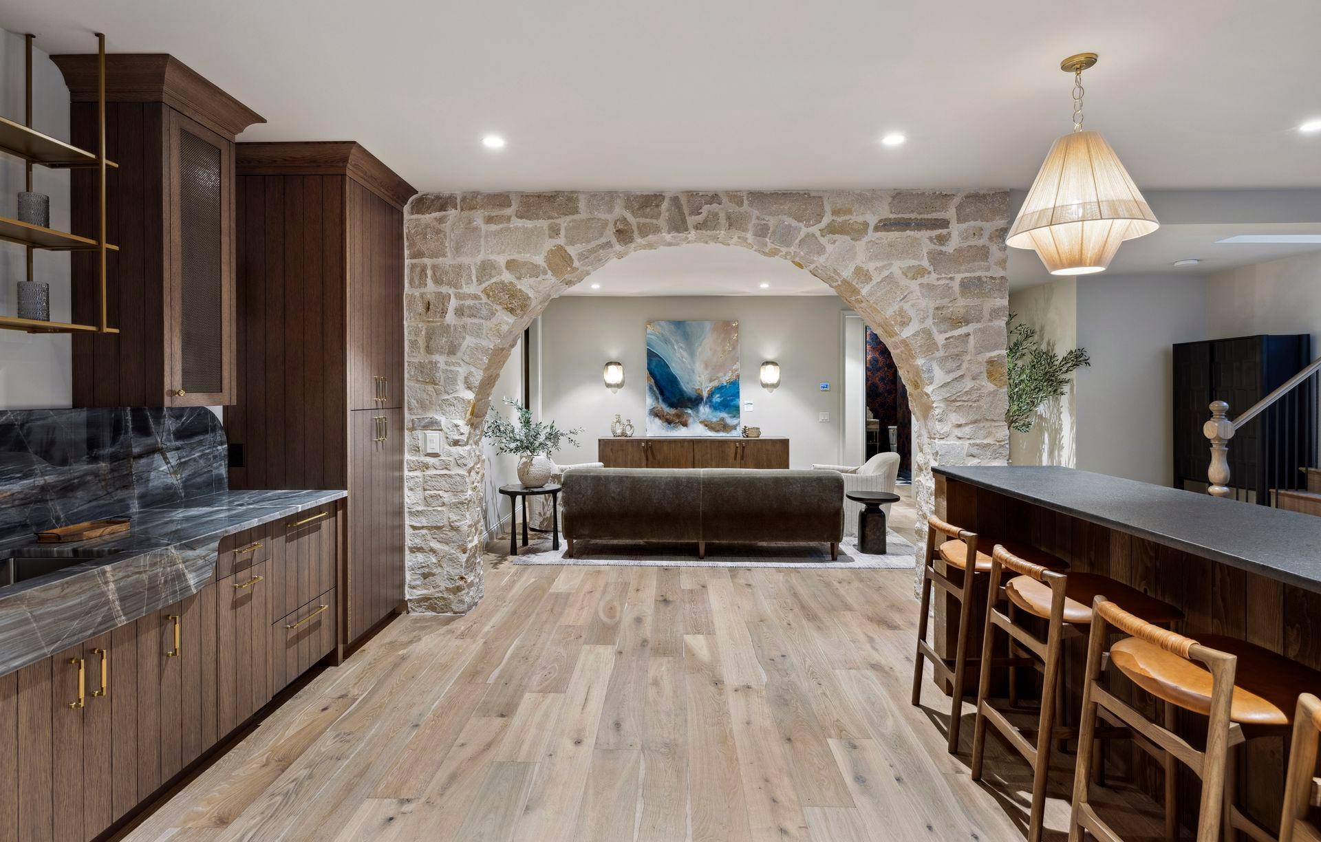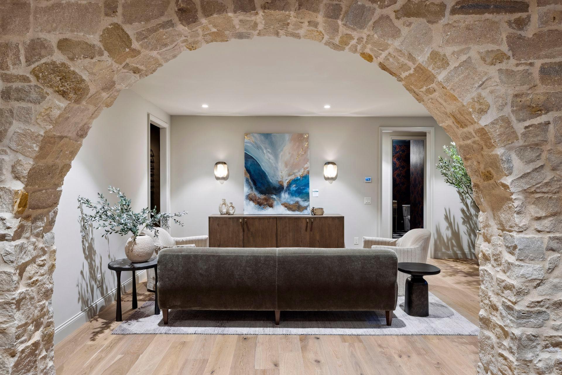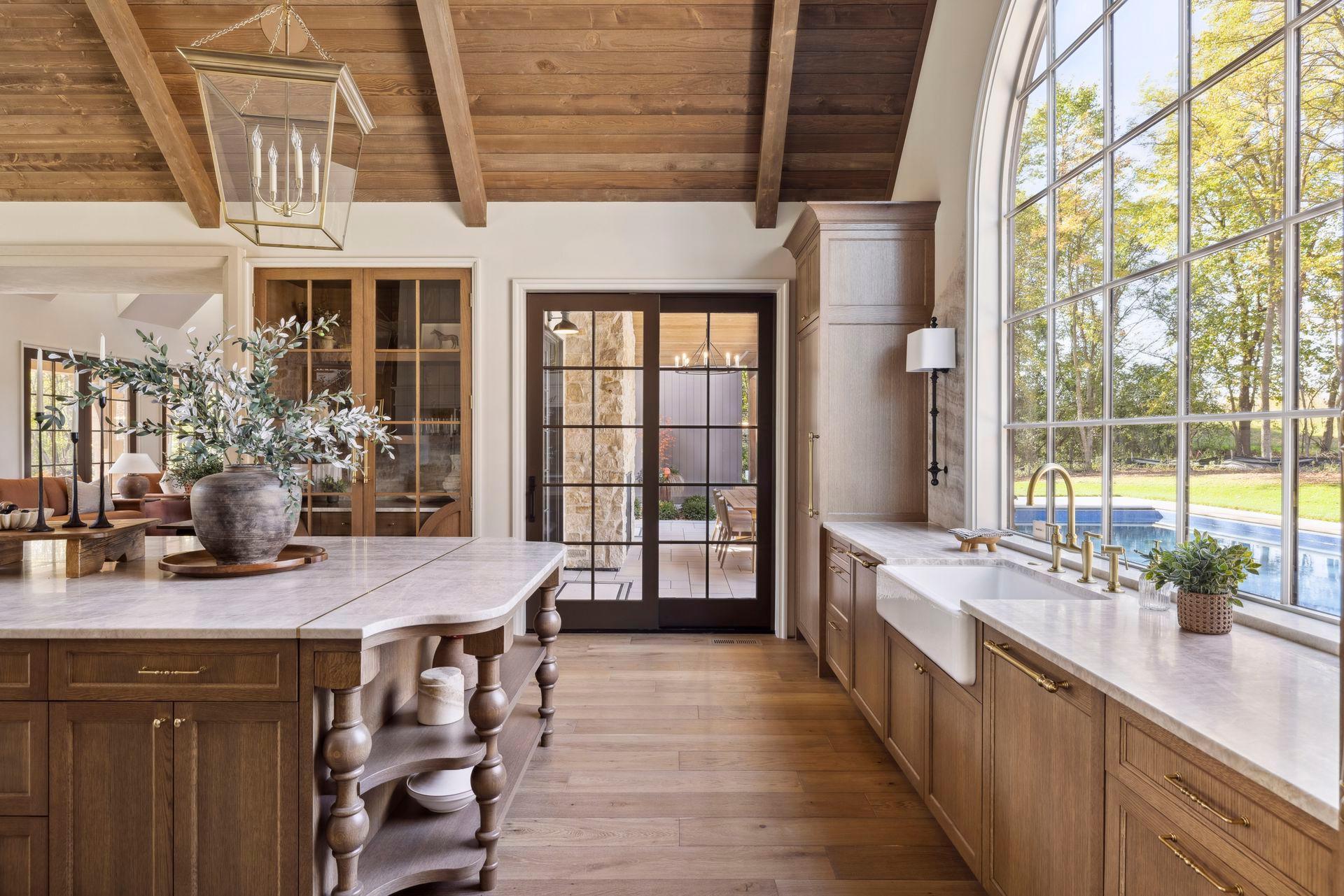 Welcome to Tamarack Ranch, a serene retreat nestled at the end of a picturesque winding driveway. This exquisite estate is the result of a masterful collaboration: constructed by James Co. Homes, with architectural design by Alexander Design Group, and beautifully hand-selected, curated finishes and furniture by Redstone Interiors. Thoughtfully sited on 20 wooded acres, the property offers breathtaking views of the rolling countryside. Experience natural elegance both inside and out, featuring a harmonious blend of Ascona stone, stucco, Indiana limestone, Douglas Fir porch beams, White Oak flooring, wire-brushed paneling from Montana Timber, and richly textured plaster accents. Designed with so many stunning and layered details from the vaulted and paneled kitchen ceilings, arched windows framing the stunning landscape and wooded views, unique and textural tile combinations in each bathroom, a pool bathroom with a curved shower enveloped in tadelakt plaster and rooms color drenched with perfection. The kitchen is truly the heart of the home, featuring an oversized island with Taj Mahal quartzite countertops and brass inlay accents, White Oak cabinetry, a farmhouse sink, full-sized freezer and refrigerator, double dishwasher, Wolf range, and a gorgeous scullery nearby. The main level primary suite has a private wing that includes an office, a bedroom with a beautiful fireplace, doors to the back patio and a spa-like bathroom. The backyard is an oasis, featuring a covered porch perfectly suited for al fresco dining with a gas fireplace, and another vaulted porch with a wood-burning fireplace and built-in grill. The upper level includes four junior bedrooms, a laundry room, and a spacious bonus room. The lower level offers a lounge area, bar with a bar ledge overlooking the simulator (which can easily be your big screen movie and game watching zone too), exercise room, sixth bedroom, and generous utility and storage rooms. Tamarack Ranch offers a tranquil escape that feels far removed from the hustle and bustle of town, yet is conveniently located just 10 minutes from Downtown Wayzata and within Orono Schools. Created to exude warmth and coziness, this countryside oasis is one that will stand the test of time.