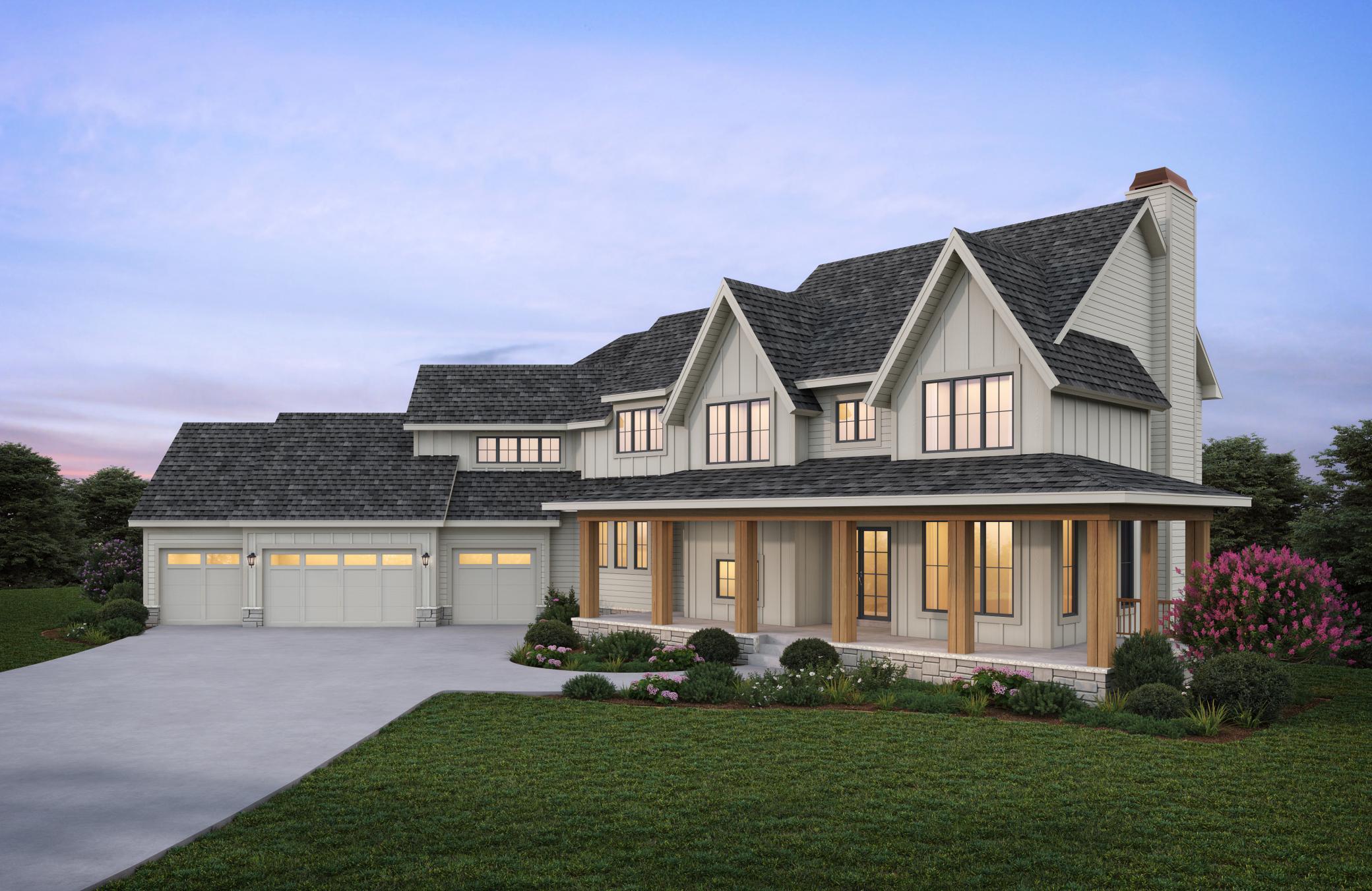 Hanson Builders 'Hawthorne' is under construction and will be showcased in the Summer Artisan Home Tour! This exceptional home is set on a picturesque 1.7 acre lot offering serene pond and wooded views. Discover unique details sprinkled through the home — including 10' main level ceilings accented by 9 wood beams that extend across the Kitchen and Great Room, a vaulted Sunroom with floating beams, while the dining room is finished with an elegant wood ceiling. The gourmet Kitchen is designed to impress, overlooking a single Dining area and complemented by a spacious Prep Kitchen equipped with a second refrigerator, double ovens, center island, and abundant storage. The upper level includes four bedroom suites, included a private owner’s suite, bonus room, and a conveniently located laundry area. The lower level provides space for recreation and relaxation, featuring an indoor sport center, a large exercise area, a wellness room with a cold plunge and sauna, a wet bar and game room, and an additional fifth bedroom. A 1,263 SQFT insulated and heated garage with floor drains and electric car charger. The whole home is wrapped in James Hardie cement board siding and Marvin windows. Located in Koch Farm Sanctuary, this home is part of an exclusive community offering 33 acreage lots ranging from 1.5 to 3.6 acres. Open enrollment is available in the Orono School District, with an out-of-district bus stop conveniently located within the neighborhood!