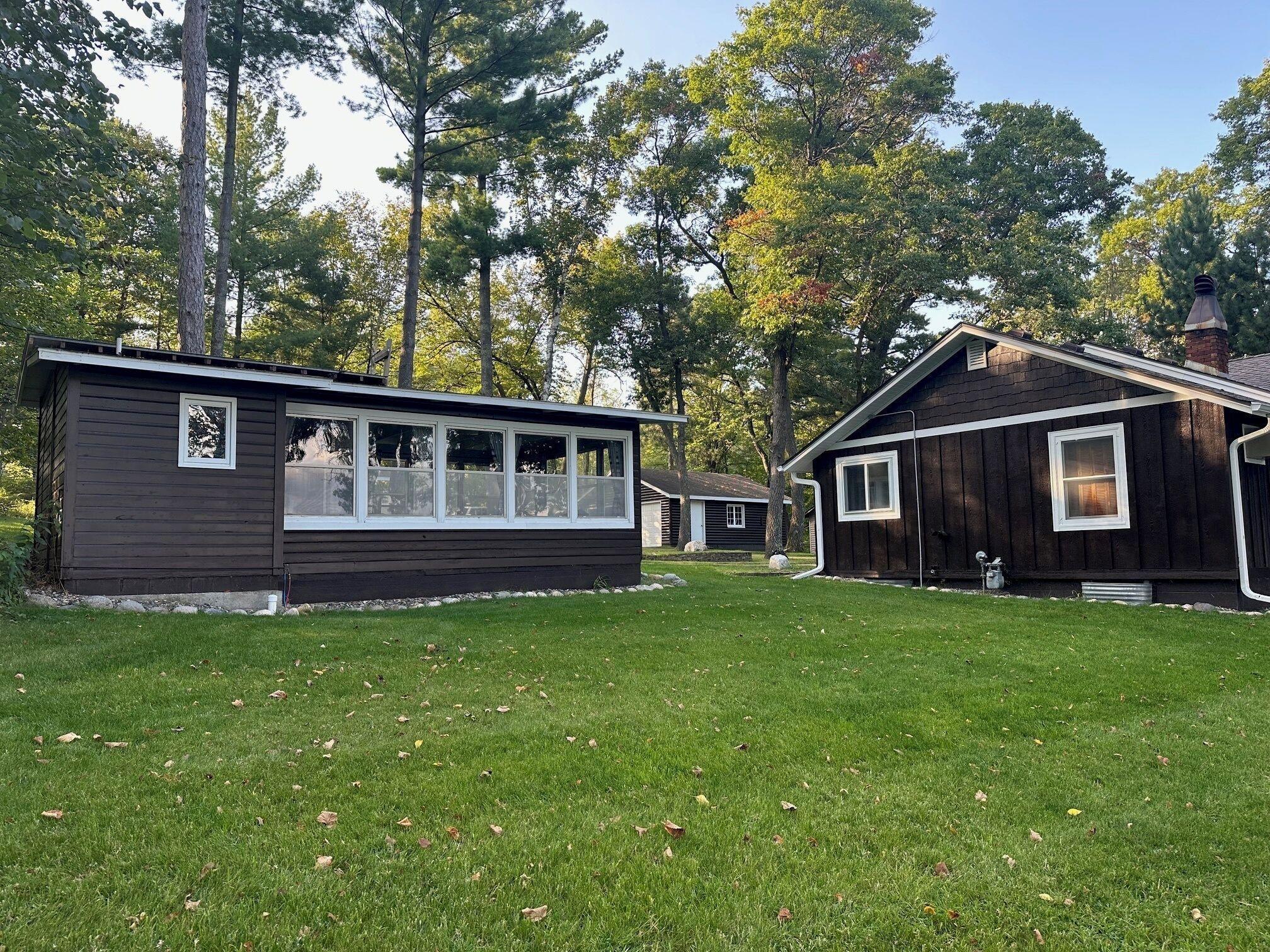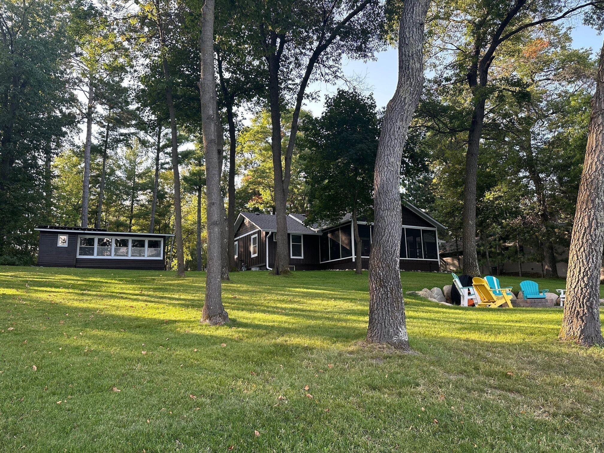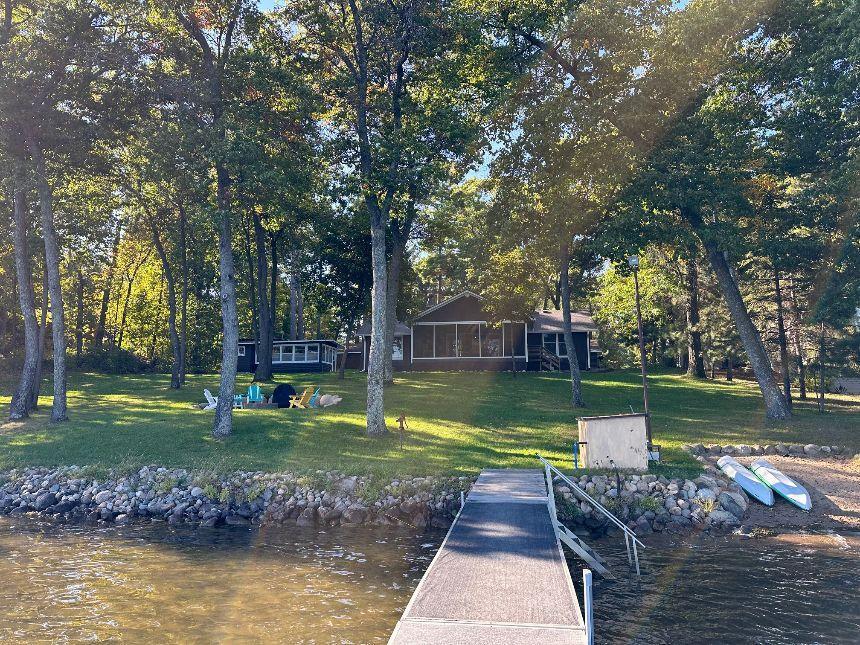 DOUBLE LOT, APPROX 157ft SHORELINE FRONTAGE, GRADUAL ELEVATION, 2 GARAGES, NEW SEPTIC, QUIET DEAD END ROAD - This charming Roy Lake property offers a wonderful opportunity to enjoy life on the Gull Lake Chain. The main 2BR/1BA cabin has a fresh, updated look with new flooring, new appliances, a new roof, and new siding. The cabin includes an unfinished basement just waiting for your finishing touches. The porch has also been rescreened and is the perfect spot to relax and take in the lake views. The property has also been beautifully landscaped with an in-ground sprinkler system and a new fire pit patio — perfect for evenings by the water. A new septic system was installed in 2023, giving you peace of mind for years to come. The additional 1BR/1BA guest cabin provides extra space for family and friends, and two detached garages offer plenty of storage for vehicles, boats, and lake toys. With approximately 157 feet of shoreline, very gradual elevation, and nearly an acre of land, this property combines comfort, privacy, and potential. Whether you’re looking for a ready-to-enjoy lake getaway or the perfect site to build your dream home, this one has it all. Located near the end of a quiet dead-end road, you’ll enjoy a private setting just minutes from everything Nisswa has to offer. Cabin being sold fully furnished minus a few personal things. Dock is included in the sale.