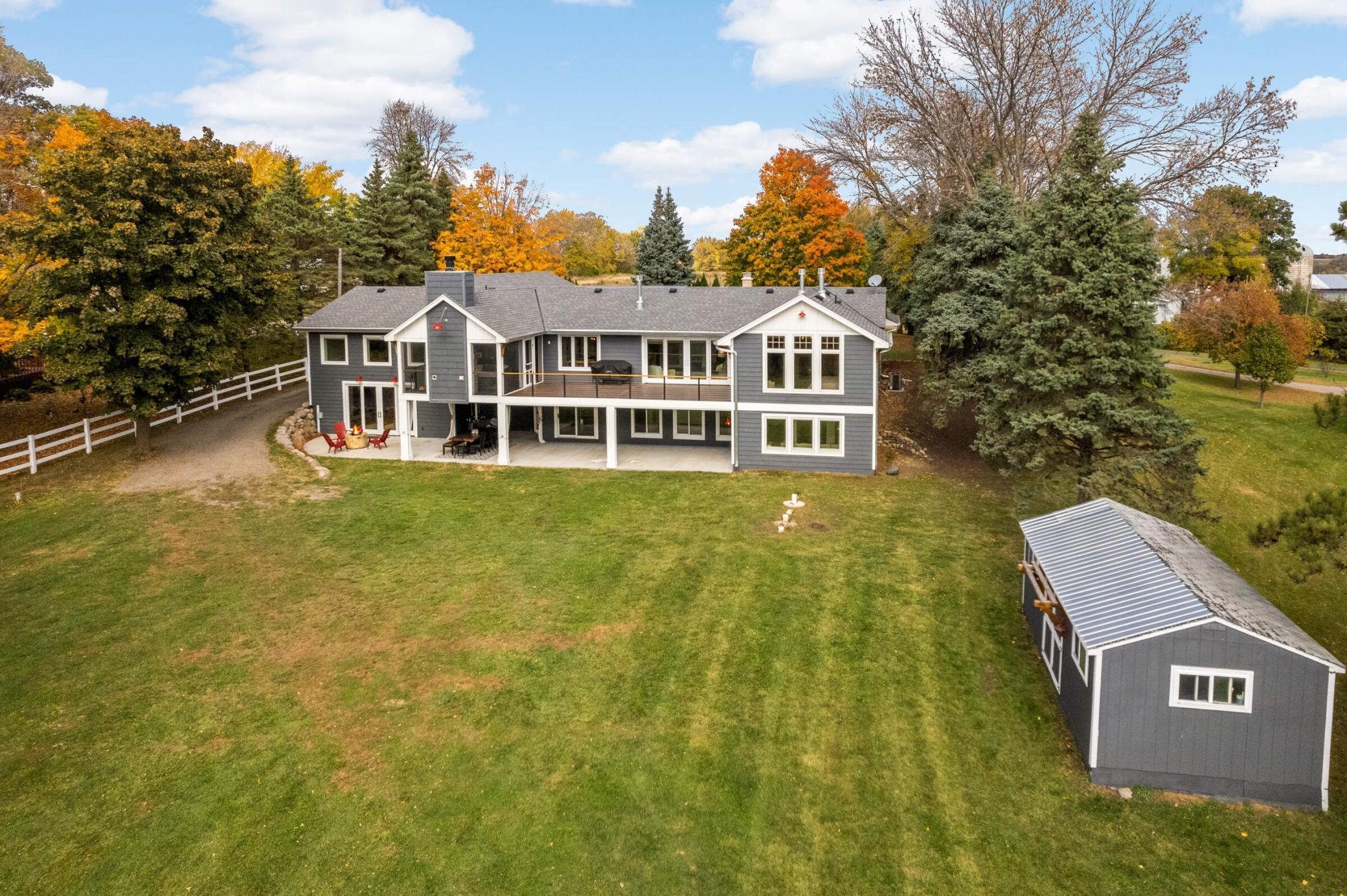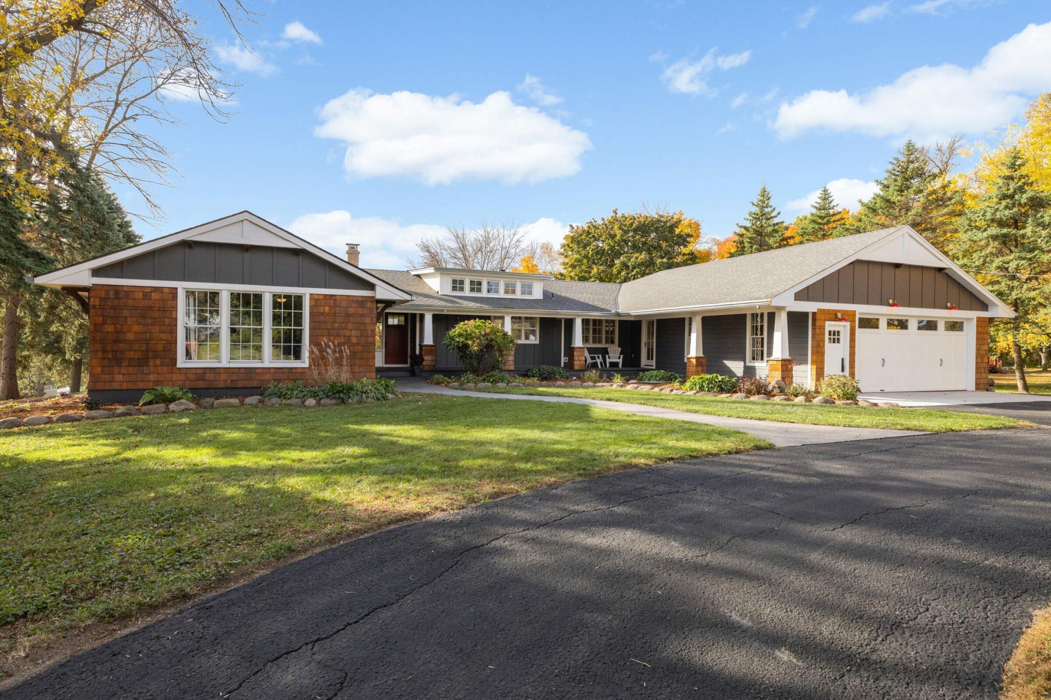 From the moment you pull into the circular drive, this home will wow you like you can't imagine. Step inside to be greeted by walls of glass & panoramic views of the backyard, custom millwork, & spaces that live so comfortably you'll forget you are in a 5,000+ sq foot home. The designer kitchen steals the show with honed leather-finish granite, a beautiful center island, professional-grade 6-burner range, & Viking appliances that will make every meal an occasion. The lifestyle-friendly floorplan shows off the hardwood floors, & you'll love the dreamy screened porch with a wood-burning fireplace. The main level features a private primary suite with a gas fireplace plus a separate wing with 2 additional bedrooms, a dream multi-function laundry room & Pella windows that frame sweeping views of nearly three acres. The lower level offers a one-of-a-kind private secondary suite with its laundry, bathroom & a sitting room that walks out to the backyard, ideal for multi-gen living. The theater, game room & bar/kitchenette are perfect for everyday living & entertaining. Imagine all the uses for the sport court - parties, community yoga events, basketball & working out, to name a few. Enjoying summer nights on the maintenance-free deck & large covered patio will be the norm next summer. The 36x40’ shop is perfect for hobbies, a man-cave, artist studio - the options are endless. Bring out your inner child on the sledding hill & walk/bike the Dakota Rail Trail right from your backyard. Beautifully designed top to bottom, this home is as functional as it is fabulous - a place where country charm meets designer living. Schedule a private tour today.