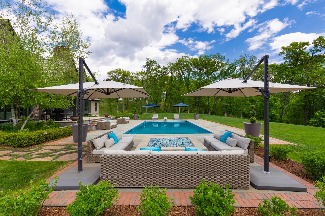Exquisite Sunfish Lake estate thoughtfully designed by Peter Eskuche and beautifully built by Nor-Son! This breathtaking residence offers an open flowing floorplan showcasing endless nature views at every turn. Enjoy the great room with vaulted ceiling + wood beam accents; spacious gourmet kitchen with dining area & wall of folding glass doors that open to the porch (phantom screens + heaters) and out to the pool. The prep kitchen is ideal for entertaining with additional appliances and window that opens to the bar and great room! Main-level primary suite with spa-like bath (steam shower, heated floor, fireplace) and upper-level offering three junior suites. The lower-level features an additional guest suite; theater area; wet bar; exercise room and sport court! Tranquil backyard retreat with saltwater pool and built-in firepit all surrounded by soaring mature trees. Additional features: Heated extra deep 3-car garage; space for a golf simulator and whole house generator. The carriage house offers a family room, game area, beverage bar, fireplace, ½ bath and additional 4-car heated garage! Private 10.5 acre setting adjacent to Musser Park for additional privacy. Truly a must-see!