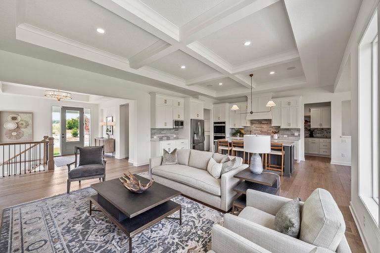Discover ELWELL FARMS, a thoughtfully planned community spanning 515 acres and bordering the scenic Carlos Avery Wildlife Management Area. With 106 spacious acreage homesites, this stunning neighborhood blends natural surroundings with luxurious living. HANSON BUILDERS has 15 premium homesites available in Phase 1, many offering wooded landscapes and peaceful pond views. Experience the perfect blend of style and comfort in this beautifully crafted home, thoughtfully designed for luxurious main-level living. From the moment you step inside, exquisite custom ceiling details and high-end finishes set a tone of sophistication throughout.? The Great Room captivates with a vaulted ceiling and three floating wood beams, creating a warm and open atmosphere. The chef-inspired Kitchen features a spacious Prep Pantry—ideal for both entertaining and everyday living—while the adjoining Sunroom invites relaxation with its cozy stone fireplace and wood-beamed ceiling.? The main level Owner’s Suite provides a private, spa-like retreat, and the flexible second Bedroom or Study adapts easily to your lifestyle needs. Downstairs, the fully finished lower level offers abundant space for family and guests, including three additional Bedrooms, an Exercise Room, a generous Family Room, a Game Room, and a stylish Wet Bar—perfect for gatherings or quiet evenings in. Additional features include a heated 4-car garage featuring floor drains and 220V outlet for an EV charger. Wrapped in James Hardie cement board siding and Marvin Windows. Nestled in Elwell Farms, this home offers access to an exceptional collection of community amenities, including a pool, clubhouse, playground with picnic pavilion, pickleball courts, fishing pier, and scenic walking trails. Discover a one-of-a-kind lifestyle in a community designed for connection, recreation, and relaxation.