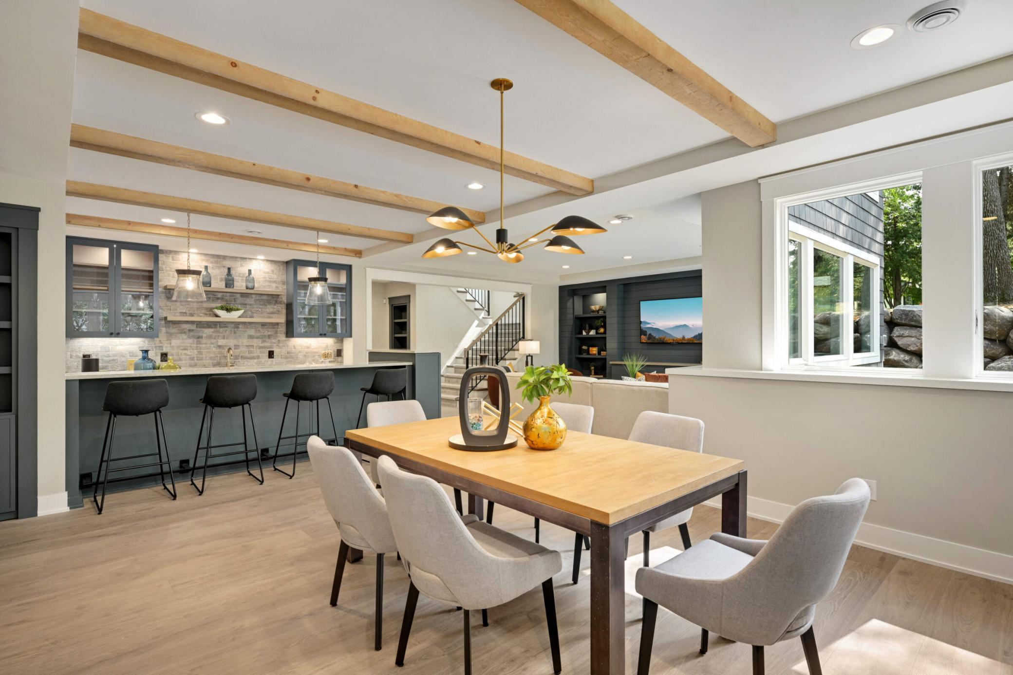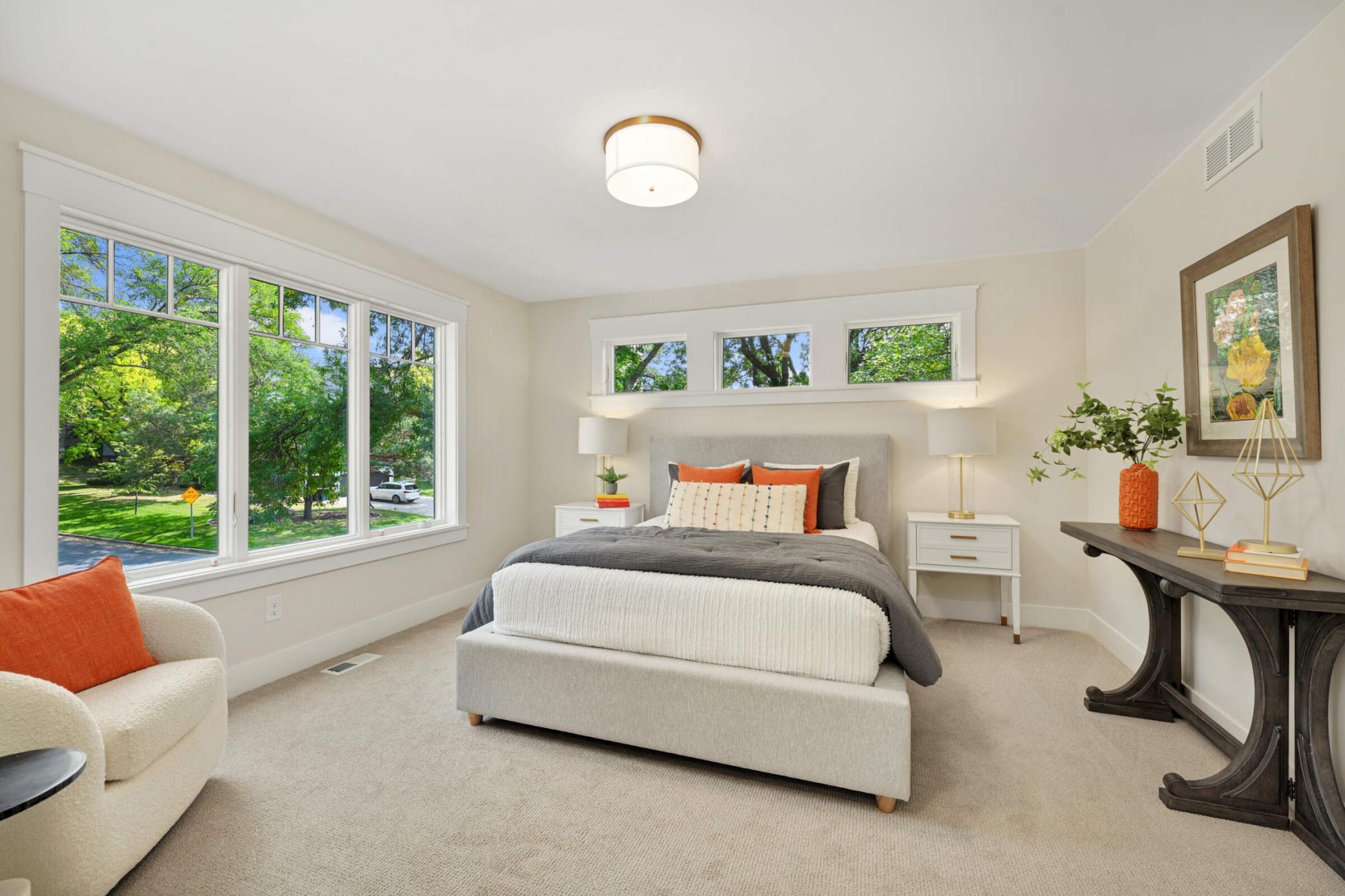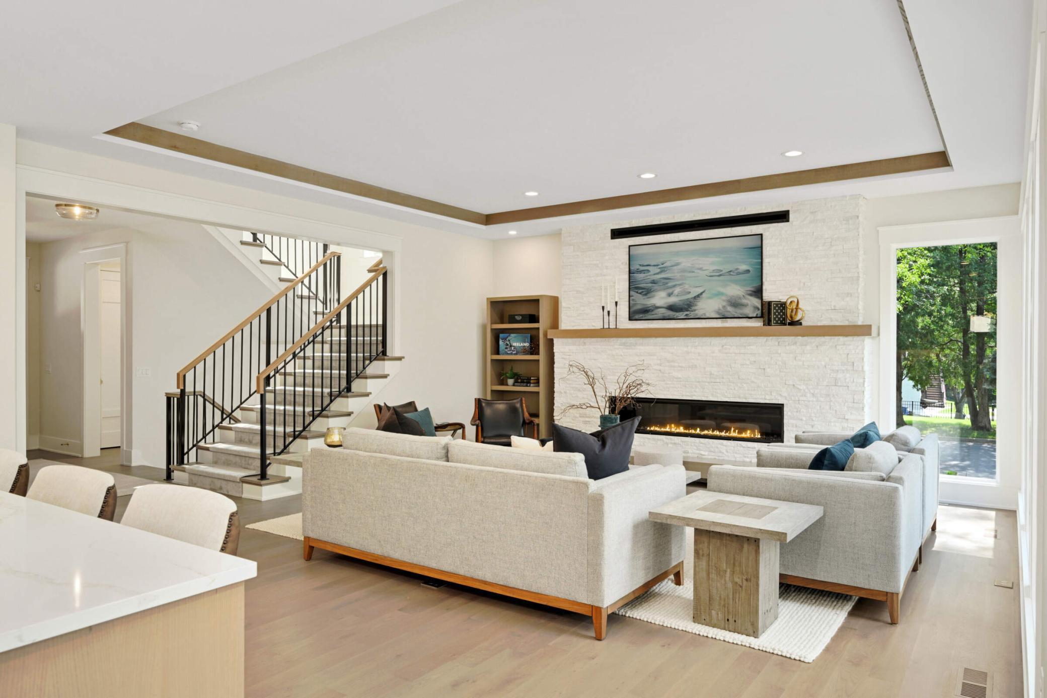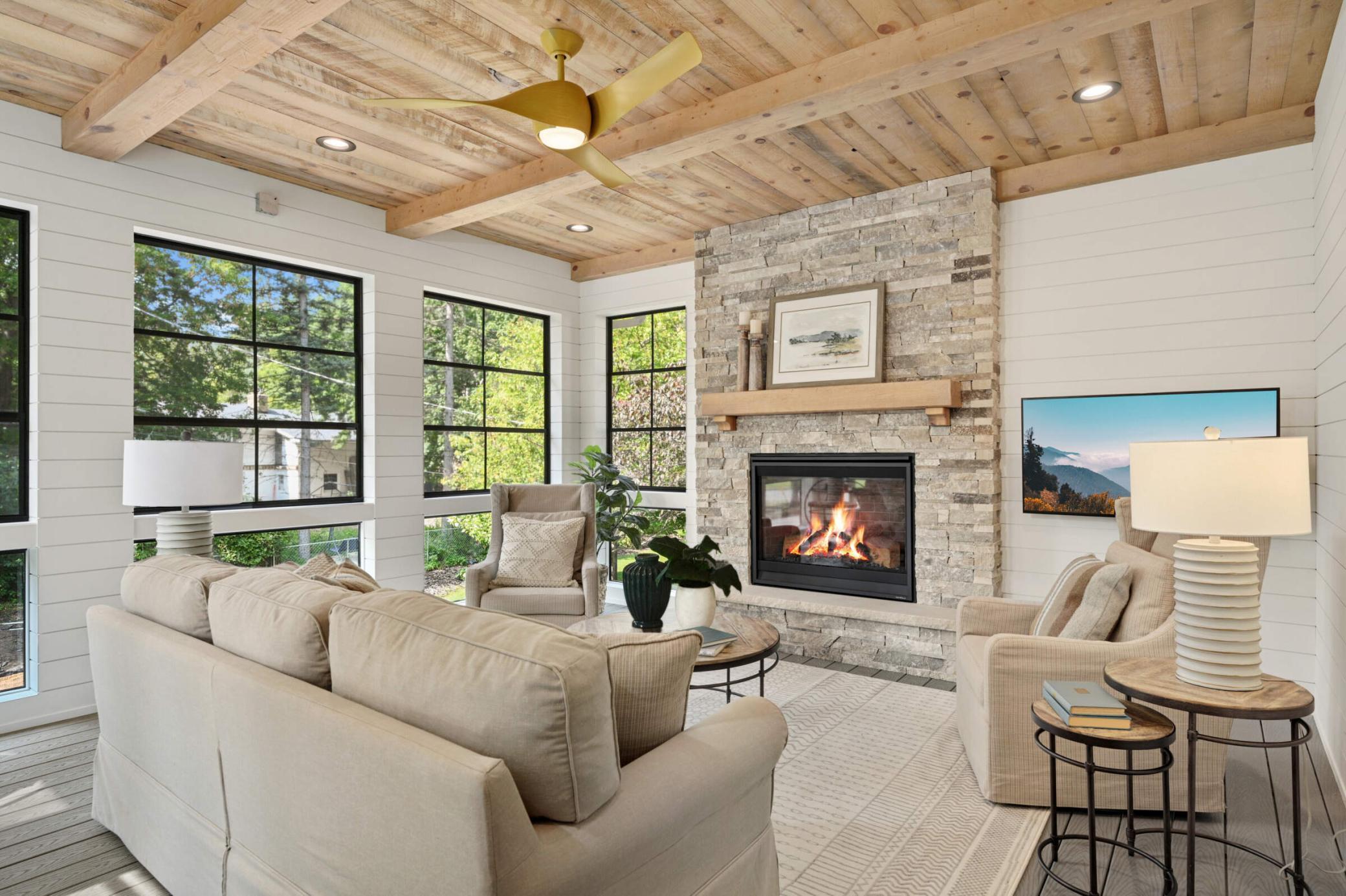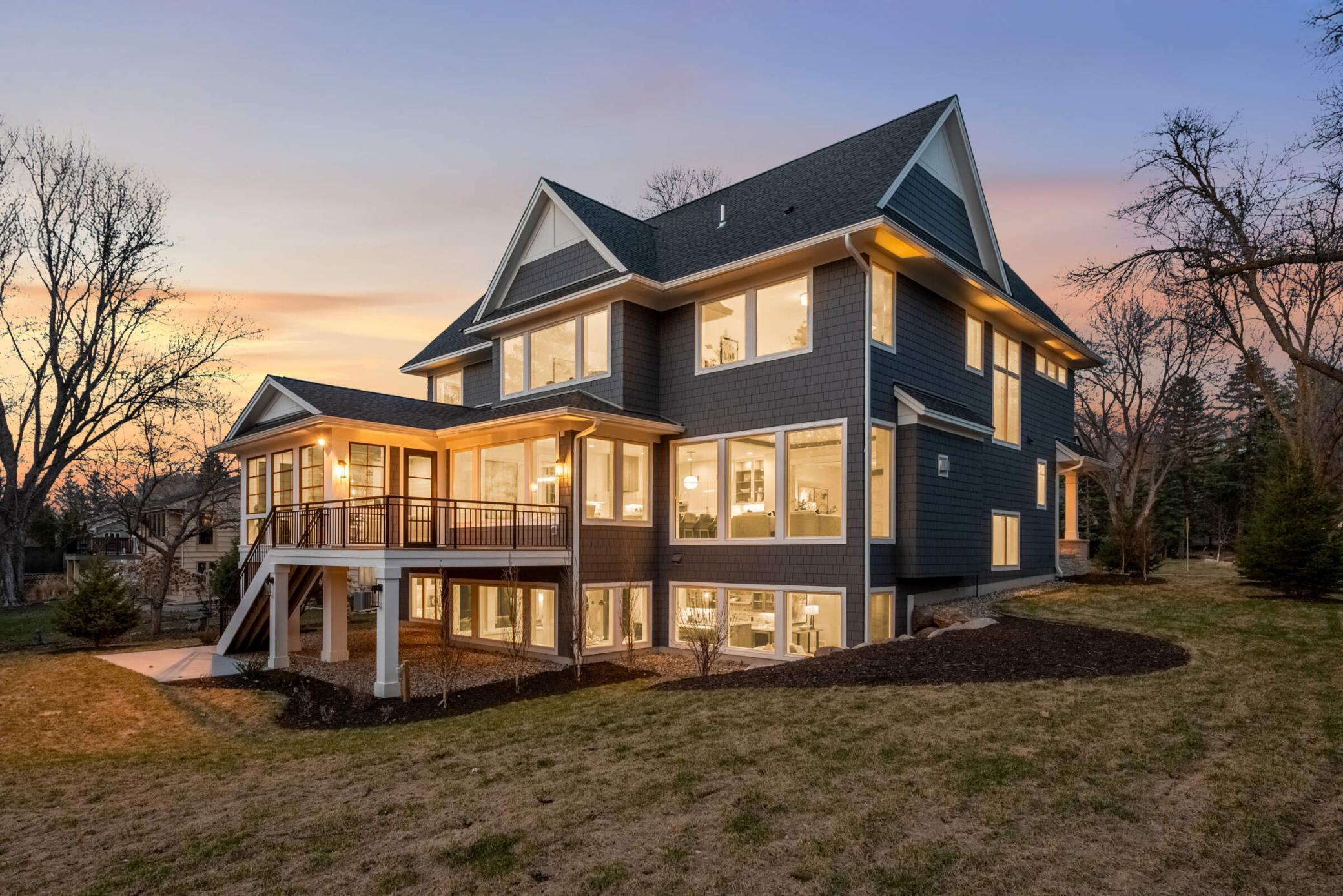 This stunning Wooddale Builders home offers exceptional design and craftsmanship in the heart of Edina. The main level features a light-filled great room with walls of windows and a gourmet center island kitchen with a walk-through pantry. Four bedrooms sit upstairs, including a luxurious owner’s suite with a spa-inspired bath and walk-in shower. The inviting three-season porch—with fireplace, shiplap detailing, retractable windows, and a barn wood ceiling with beams—creates the perfect year-round retreat. The finished lower level includes a walk-behind bar and Wooddale’s signature hidden doors, ideal for entertaining. Additional highlights include a three-car heated garage with epoxy floors, welcoming front porch, and spacious back deck overlooking a beautiful yard. Blending luxury, comfort, and timeless style, this home exemplifies Edina living at its best.