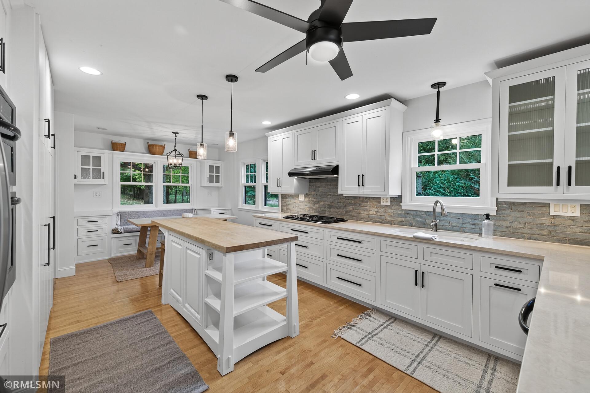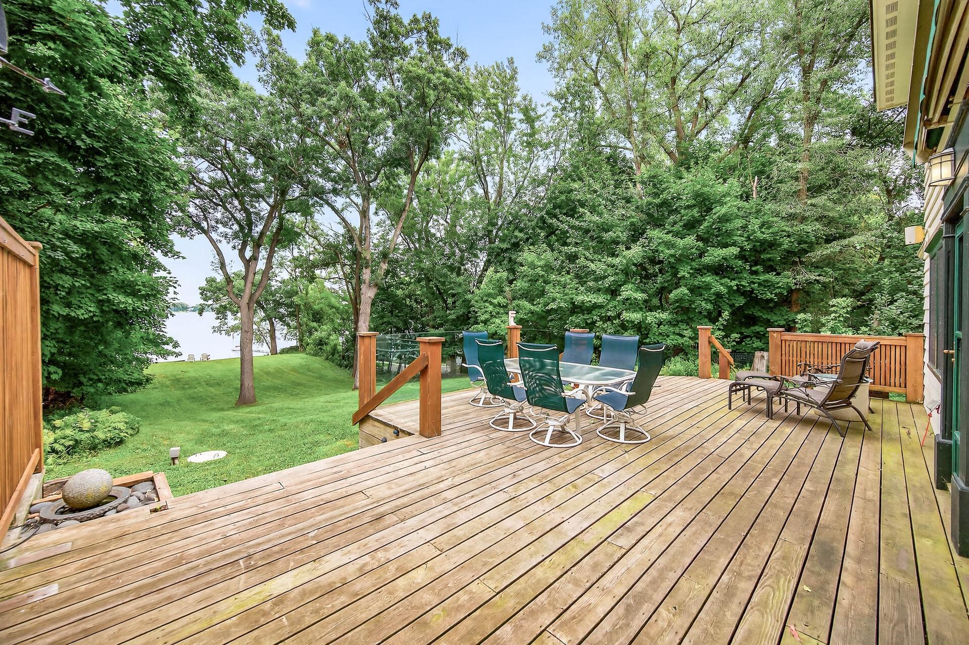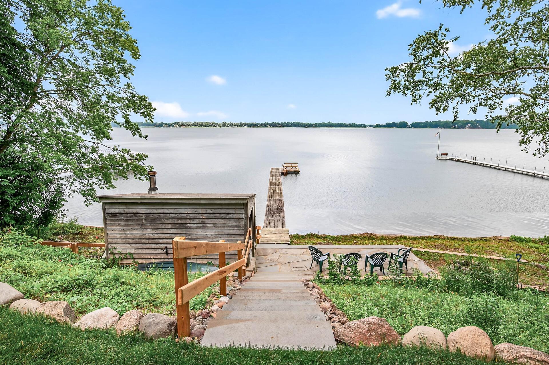 One of few Lakeshore Living houses currently available on White Bear Lake — .83 Acres of Pure Serenity! Welcome home to the perfect blend of privacy, natural beauty, and convenience. This .83-acre lakeshore property offers 75 feet of pristine frontage and extends 560 feet deep, capturing the peaceful feel of a Northwoods retreat—just minutes from shops, restaurants, and city life. The main level features stunning lake views, a beautifully updated kitchen, spacious living room, bathroom, and an elegant office with access to a private deck. Upstairs, you’ll find three comfortable bedrooms and a full bath, while the lower level offers additional living space with a family room, fourth bedroom, bathroom, and generous storage. This inviting 4-bedroom, 3-bath home includes a detached 3-stall garage with a versatile bonus room—ideal for a studio, guest suite, or home office. Thoughtful landscaping welcomes you from the street, leading to a park-like backyard that gently slopes to the lake. At the water’s edge, a private sauna provides a peaceful year-round retreat. Recent updates make this home truly move-in ready, including fresh interior paint, painted kitchen cabinets, new carpet and light fixtures, an EV charger, radon mitigation system, chimney repair, and electrical upgrades. Whether you’re ready to enjoy lakeside living as is or envision creating your dream lakefront home, this property offers endless potential in an unbeatable setting. A rare opportunity to experience the best of White Bear Lake living—where nature, comfort, and connection come together beautifully.