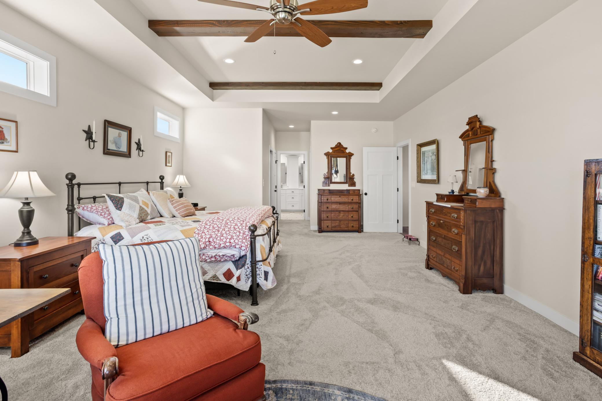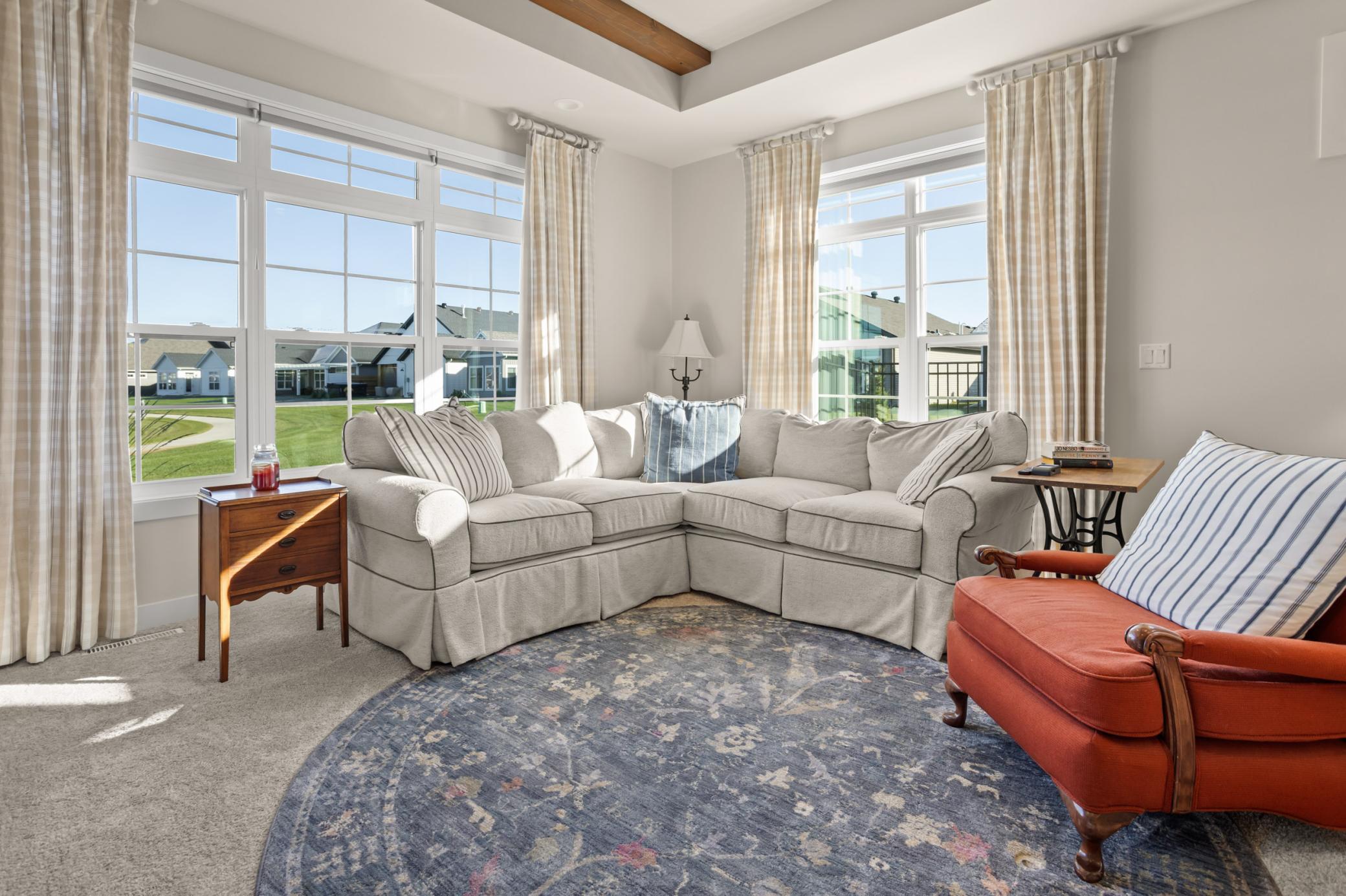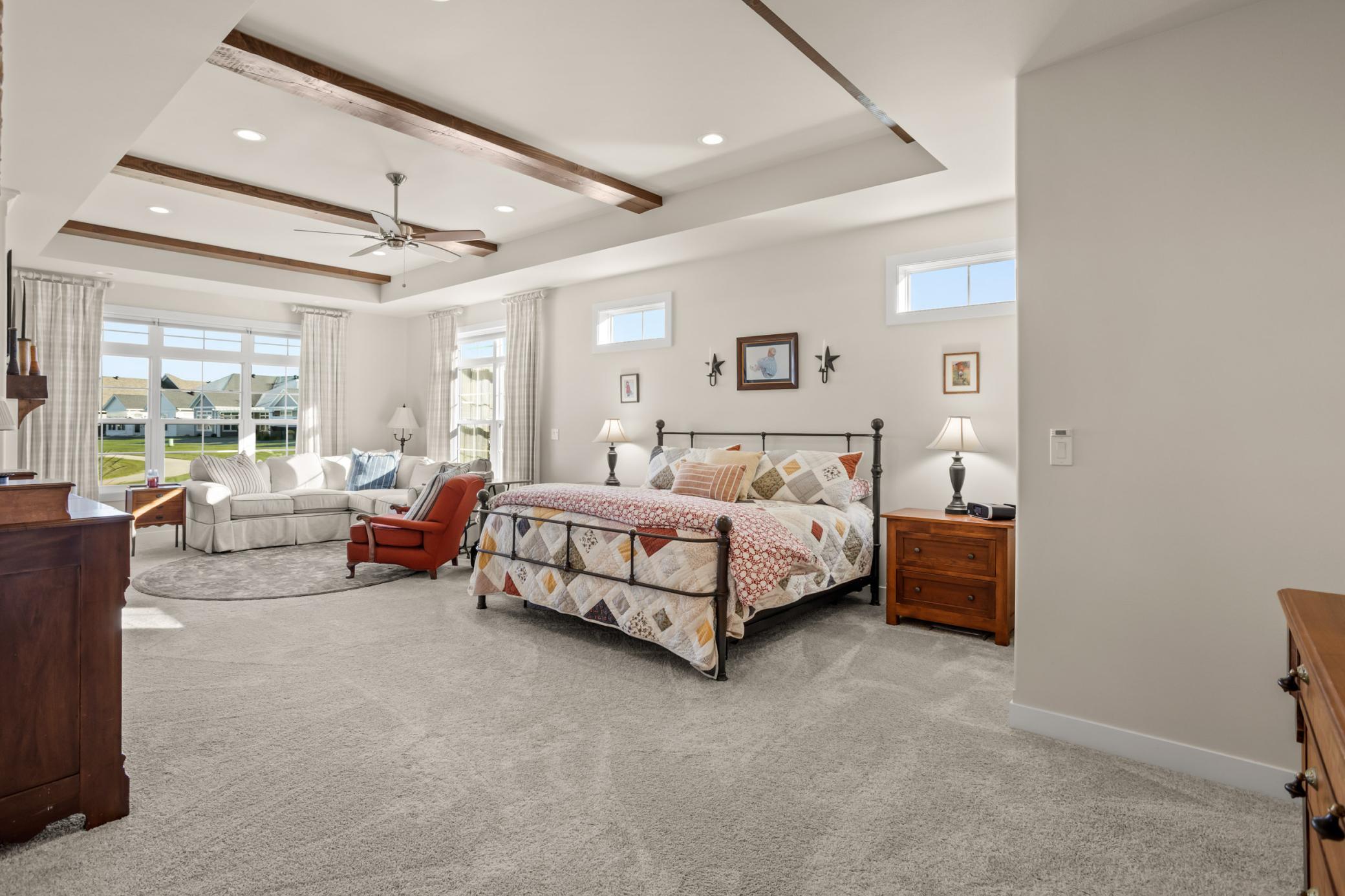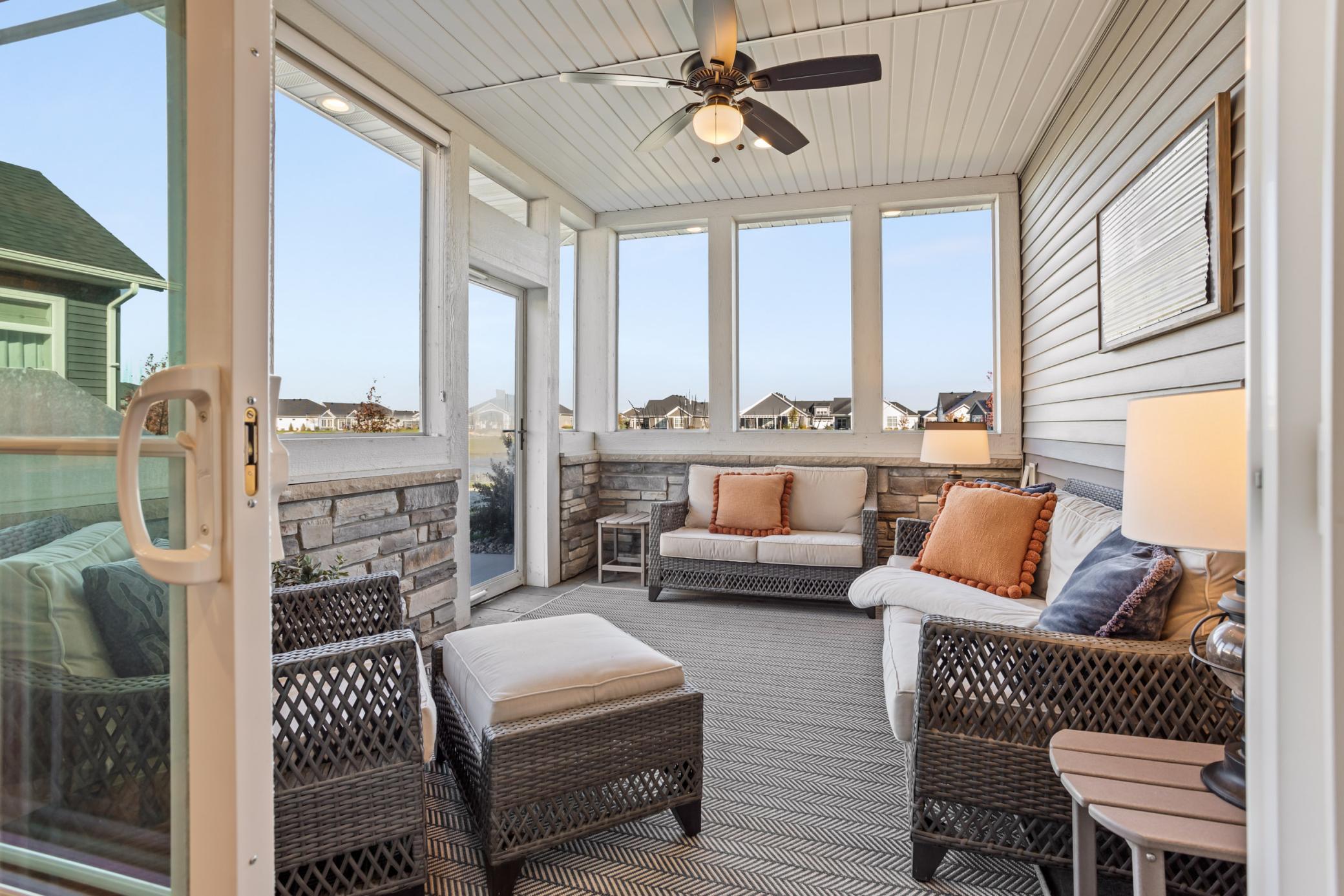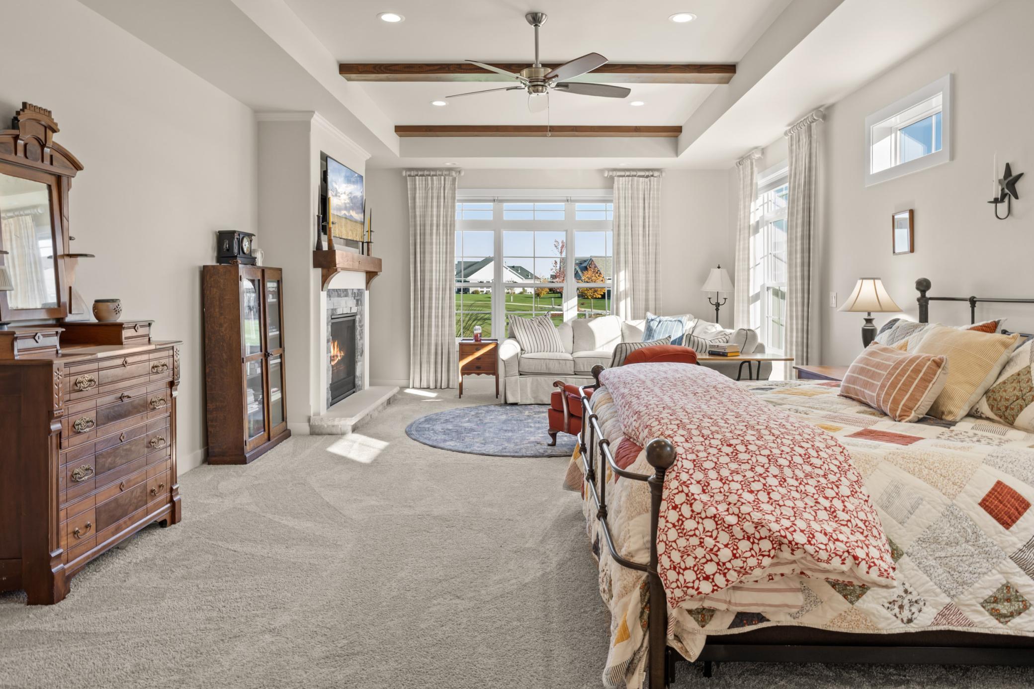 Welcome to 5179 Mira Way W, where sophistication, comfort, and design perfection converge. This expanded Verona model sits gracefully on a premium pond lot in The Ranch at The Wilds, offering serene views, refined craftsmanship, and effortless one-level living with an additional private upper-level suite. Built in 2022 and meticulously maintained, this 3,858 sq. ft. masterpiece captures the essence of modern luxury. Step through the front door and feel the calm sophistication of open, airy spaces filled with natural light. The gourmet kitchen is the showpiece of the home, equipped with Sub-Zero, Wolf, and Cove appliances—dual refrigerators, full-size double ovens, six-burner cooktop, warming drawer, microwave, and refrigerated drawers. An expansive 22 ft island invites gathering, while a hidden walk-in pantry disguised behind custom shelving adds a touch of intrigue and elegance. Quartz surfaces, dual prep sinks, and custom cabinetry with soft-close pull-outs make this space as functional as it is stunning. The main-floor primary suite is a true sanctuary, featuring a tray ceiling accented by natural wood beams, a gas fireplace, sitting are and dual walk-in closets with custom systems. The spa-inspired bathroom boasts heated tile floors, a zero-threshold dual-head shower, and refined finishes designed to soothe and impress. The great room offers architectural beauty with its coffered ceilings, warm wood beams, and built-in cabinetry surrounding a gas fireplace. Walls of windows frame tranquil pond views, filling the home with soft natural light and a seamless connection to the outdoors. Upstairs, guests enjoy their own private retreat complete with a cozy living area, built-ins, full bath, and spacious bedroom with dual closets—ideal for hosting family or friends with total privacy. Step outside to the covered and screened-in patio, an entertainer’s dream overlooking the water. Featuring stamped concrete, ceiling fan, and a natural gas line for grilling, it’s the perfect space to unwind as the sun sets over the pond. Your furry friends will love the fenced in dog run and you will appreciate the ease of clean up. The professionally landscaped yard completes this outdoor haven. Luxury extends to every detail: a fully finished and heated 3-stall garage with epoxy floors and hot/cold water, 20KW whole-home generator, smart home automation, security and monitoring systems, and remotely controlled thermostats for year-round comfort. Ceiling fans in all bedrooms, quartz countertops in every bath, and a main-floor laundry room with custom cabinetry and sink further elevate the experience. Even the future has been planned—all exterior windows were upgraded in 2025, ensuring enduring quality and value. Living in The Ranch at The Wilds means more than owning a beautiful home—it’s a lifestyle. Residents enjoy access to a private clubhouse, swimming pool, pickleball courts, golf simulator and scenic walking paths. Whether hosting friends, relaxing by the heated pool, or simply savoring quiet mornings on the patio, this property delivers an unparalleled living experience. 5179 Mira Way W isn’t just a home—it’s a statement of elegance, craftsmanship, and comfort. Designed for those who appreciate quality and serenity in equal measure, this residence redefines what luxury living in West Fargo can be.