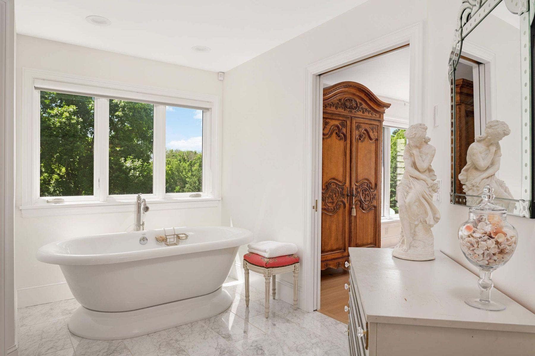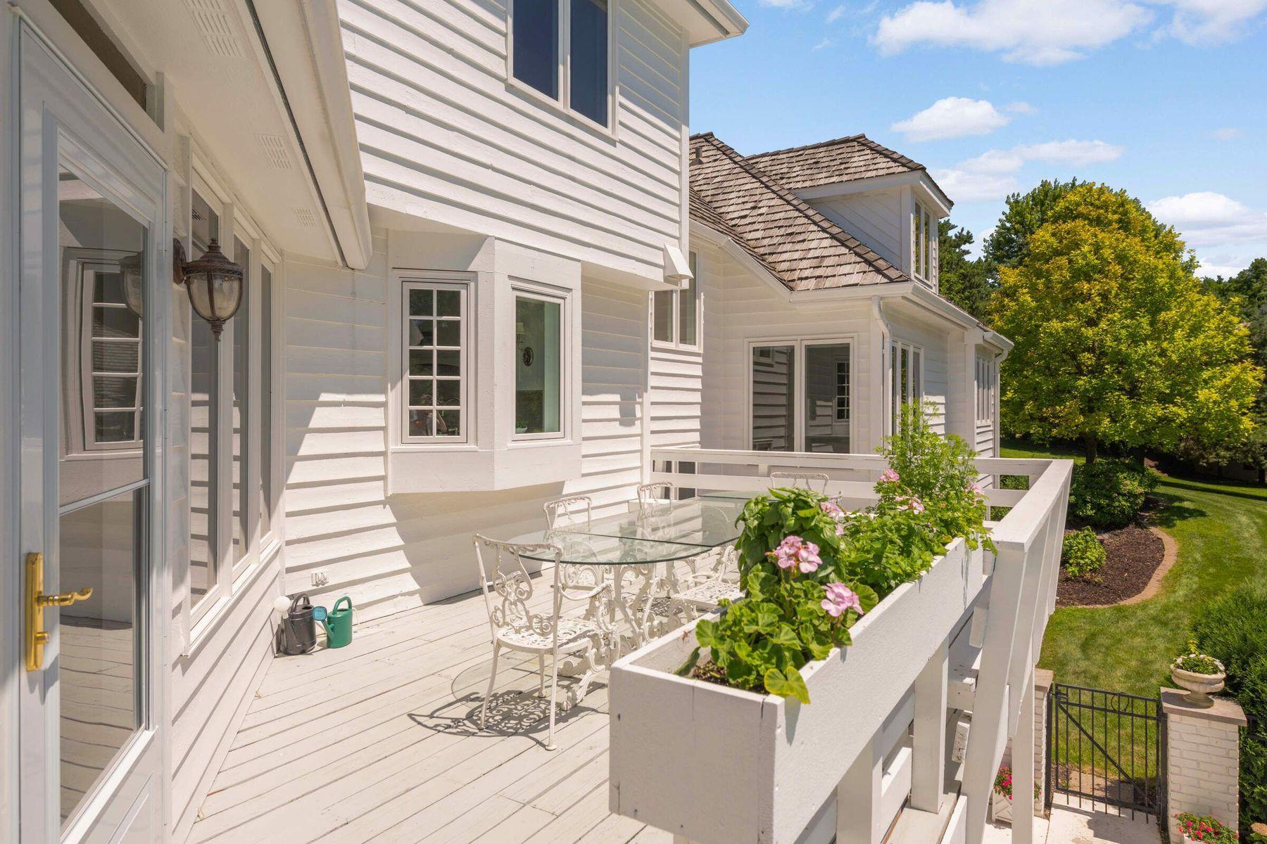 This remarkable home is an offering of fresh, French aesthetic in a bucolic setting. With timeless details and European elegance the airy floor plan is optimal for many lifestyles and both intimate and large gatherings. A true designer's home - over and above details, exceptional materials, artisan built. Each room is an open space, each defined with great attention to design integrity and master craftsmanship. The crown jewels are the giant custom Palladian window (by Marvin) to be enjoyed inside and out, the La Cornue range with double ovens, framed cathedral ceilings dramatic pedestal powder room sink, and the marble primary bathroom suite. The home is ultimate main level living, with three bedrooms upstairs and two additional in the walk-out lower level, every bedroom facing south overlooking wooded acreage. The coveted French Creek neighborhood is all private roads, and includes two tennis courts (one lined for pickle ball), a gazebo with fireplace to reserve, a peaceful connected lifestyle with a social presence. All the conveniences of lake life without the hassle and expense! Orono schools, seven minutes to Downtown Wayzata. Close to Lafayette, Woodhill, Wayzata Country Clubs and many marinas. If you're looking for privacy, exquisite taste with lake-like living, this house is for you.