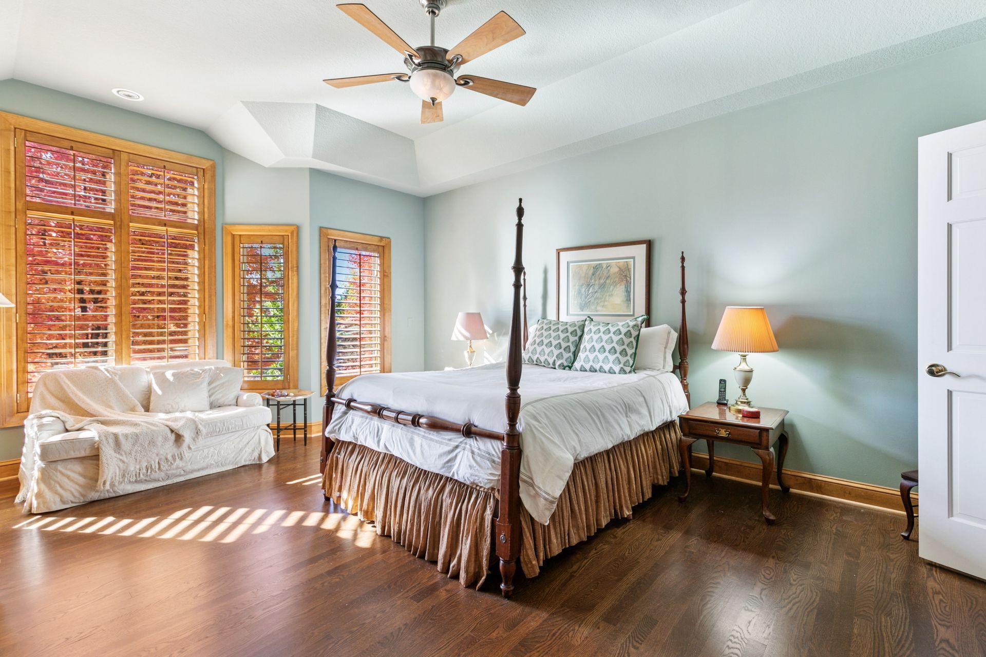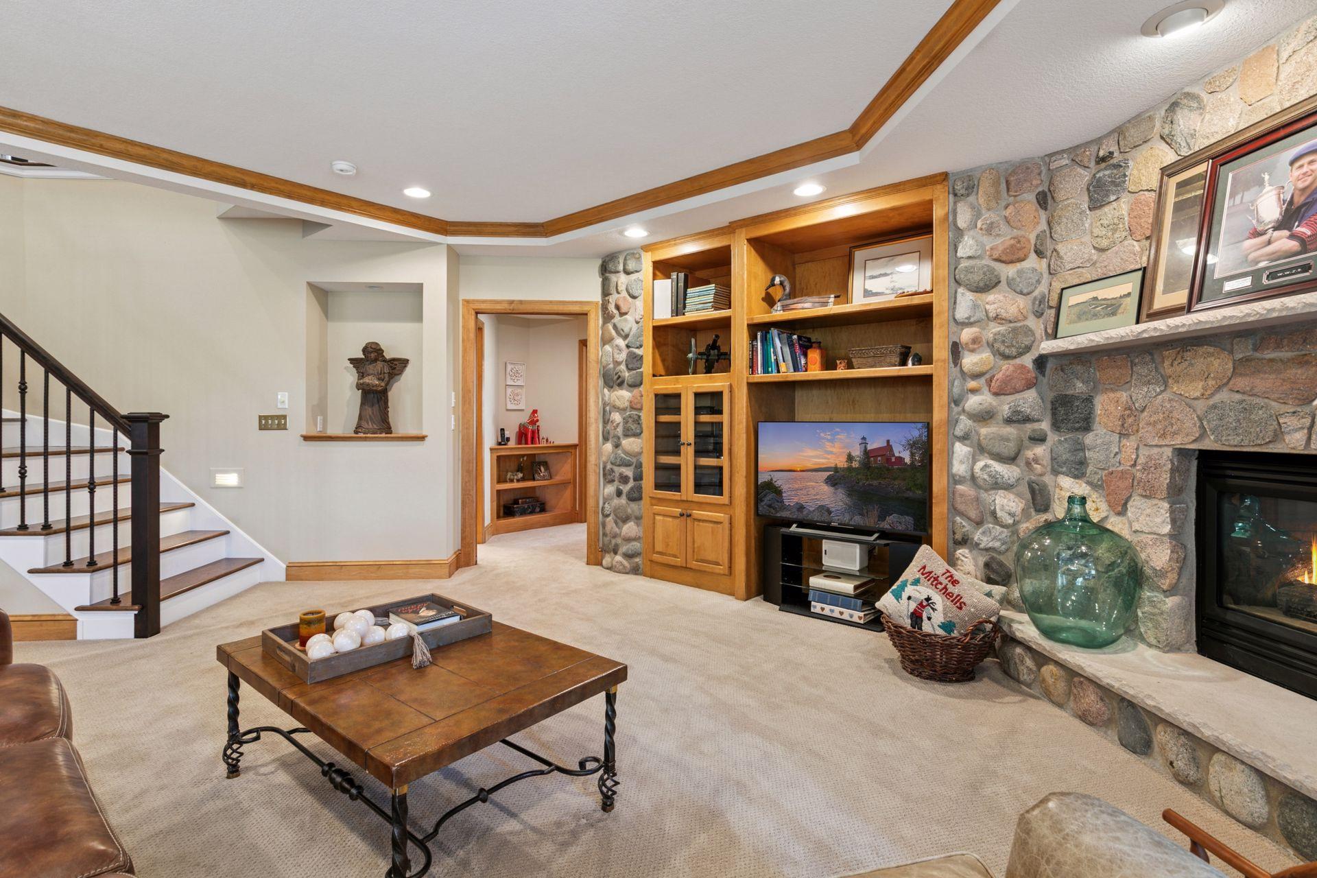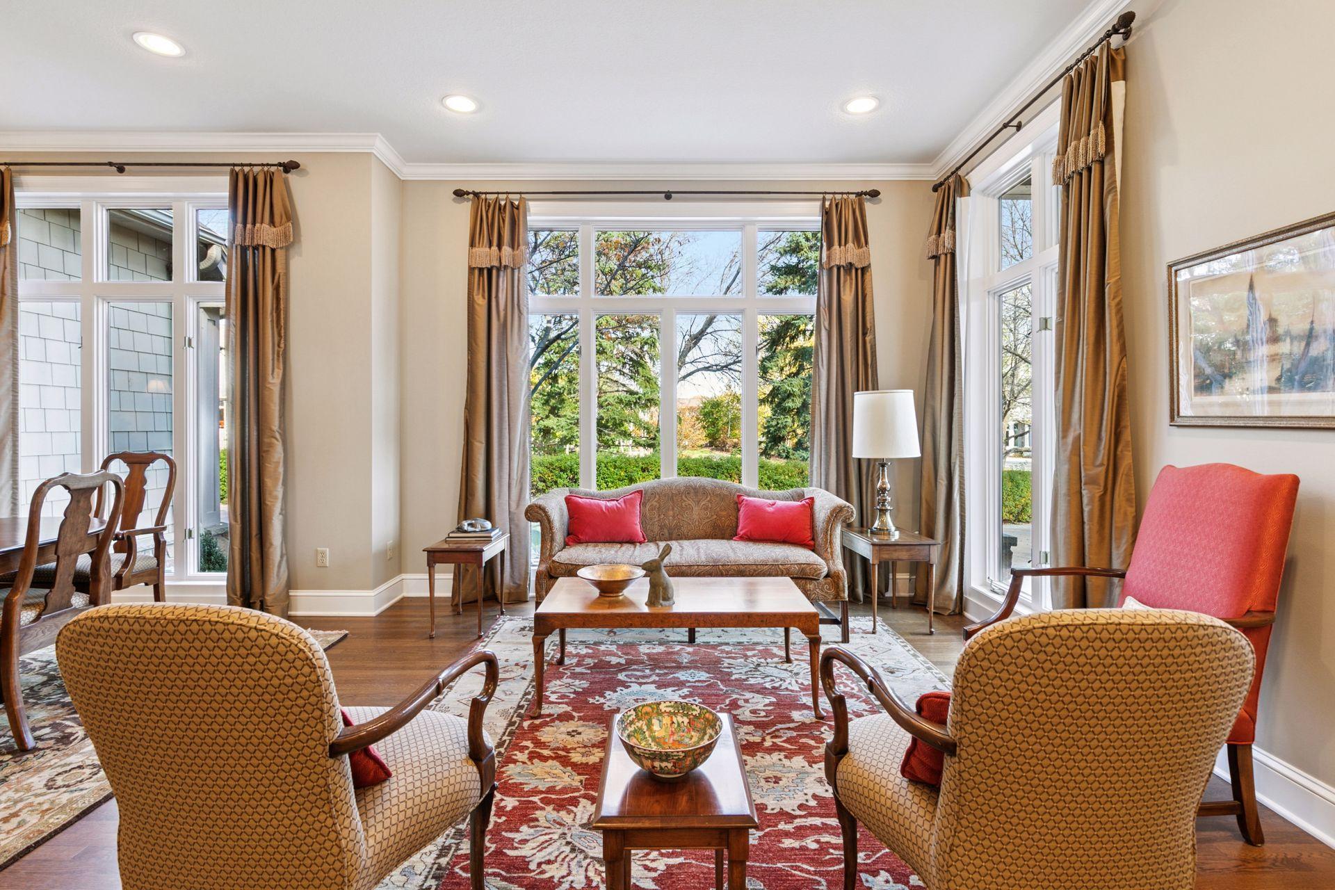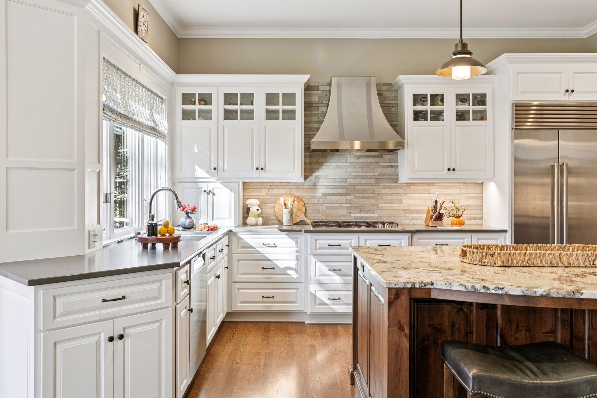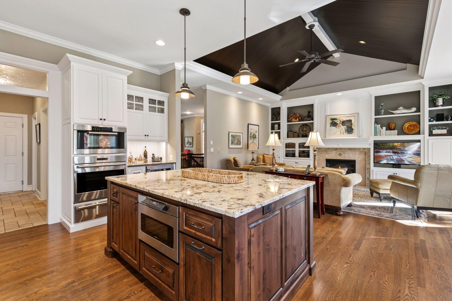 This Bruce Kading-designed remodel pairs classic architecture with modern sophistication. Soaring vaulted ceilings, rich hardwood floors, and a main-floor library create an inviting backdrop. At the heart of the home, a stunning gourmet kitchen shines with custom cabinetry, Wolf and Sub-Zero appliances, steam oven, warming drawer, and exquisite finishes. The main floor also features a private office and a refreshed primary suite with spa-inspired bath and heated floors.