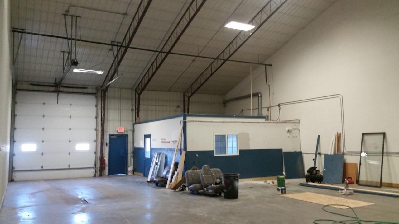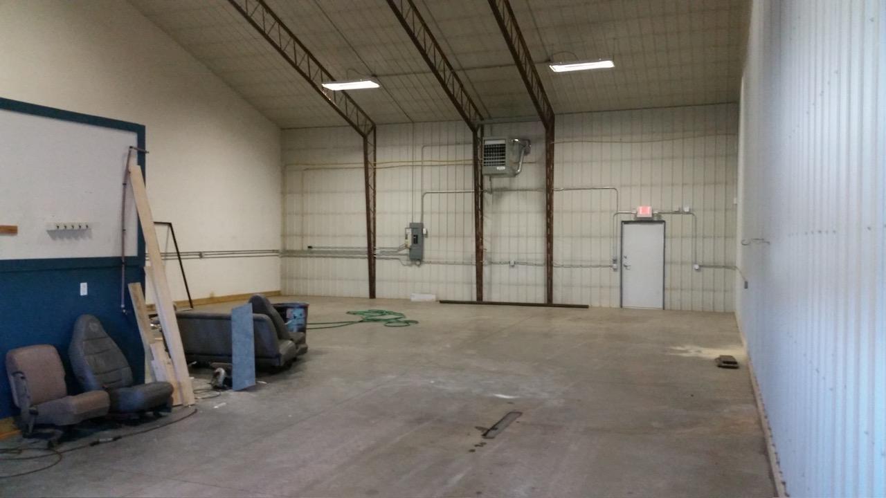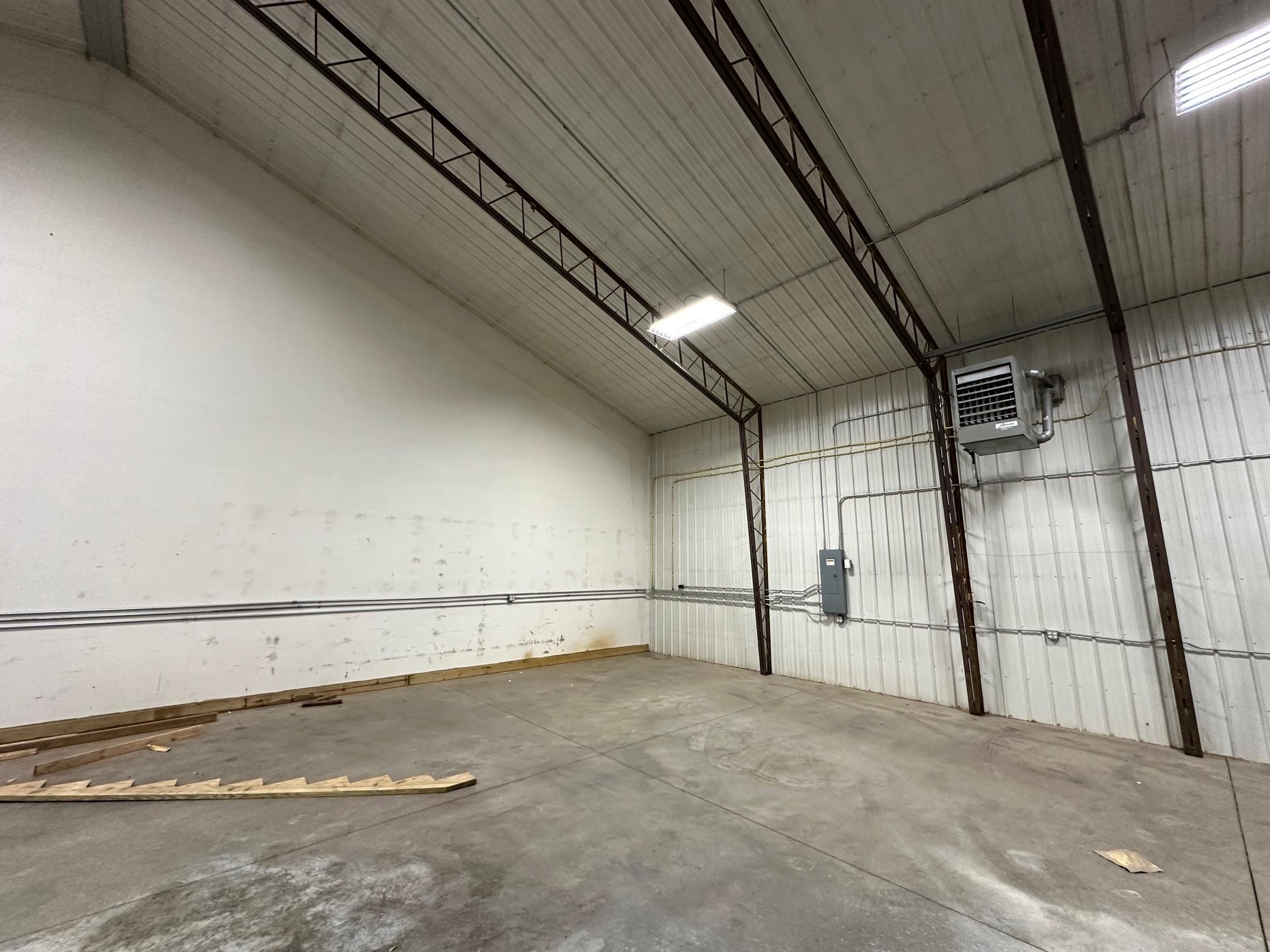 Lease space available in Teders Industrial Park located only 2 miles South of St Cloud with visibility to Hwy 10. 2,400sf available (40' wide X 60' deep) with 16' sidewalls & 25' high in center of vaulted ceiling. This unit has one 12' wide X 14' high overhead doors with power openers and two service doors including 20'x20' office with restroom. Interior of space features all steel construction, efficient spray foam insulation, 125,000 btu hanging heater, T-8 six bulb high efficient LED lights, haz mat floor drain, ceiling fan, 200 amp elec panel with three phase power, separate metered utilities, interior office with window AC and lots of exterior parking in the front & rear of the building. Available immediately. Gross monthly lease plus utilities.