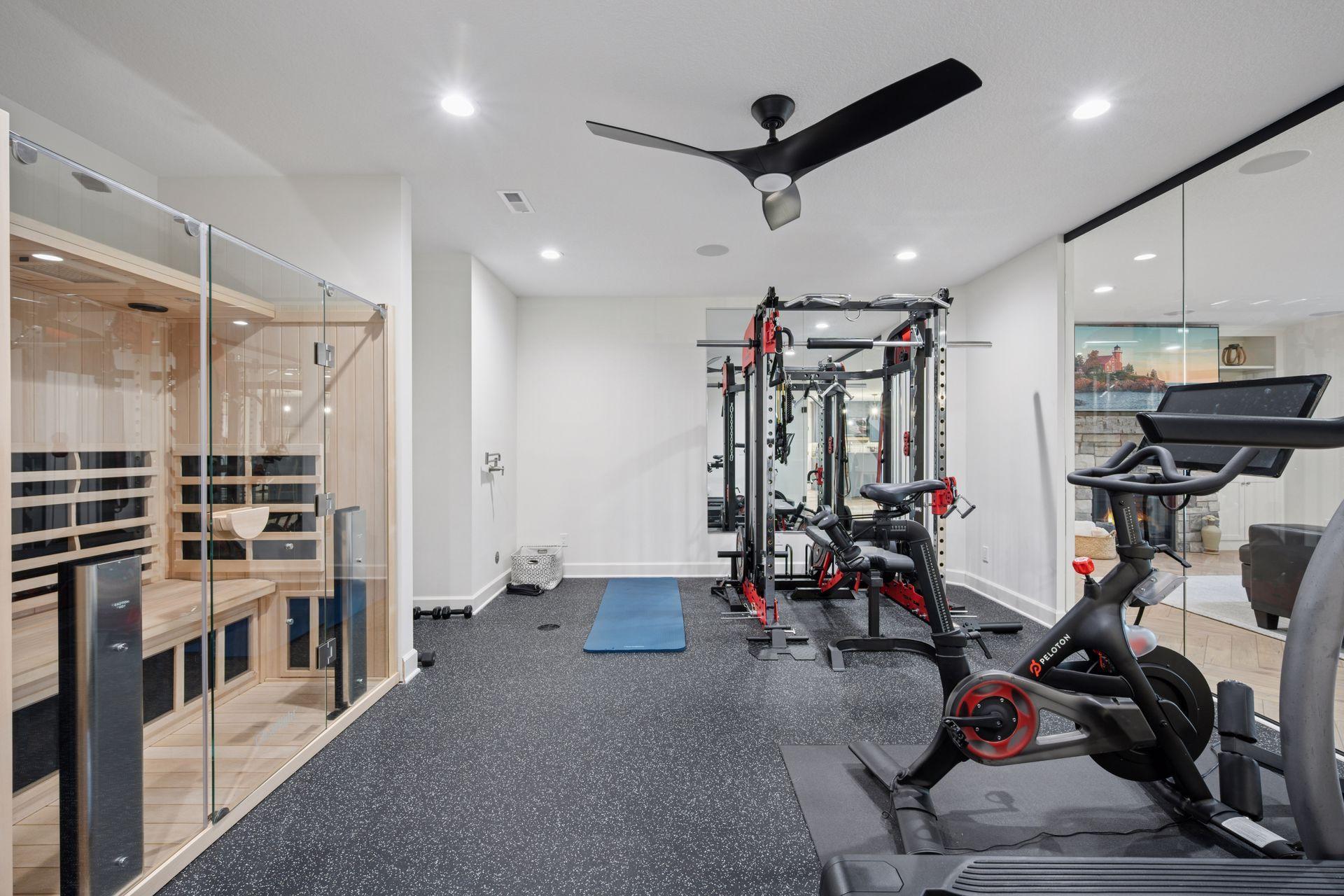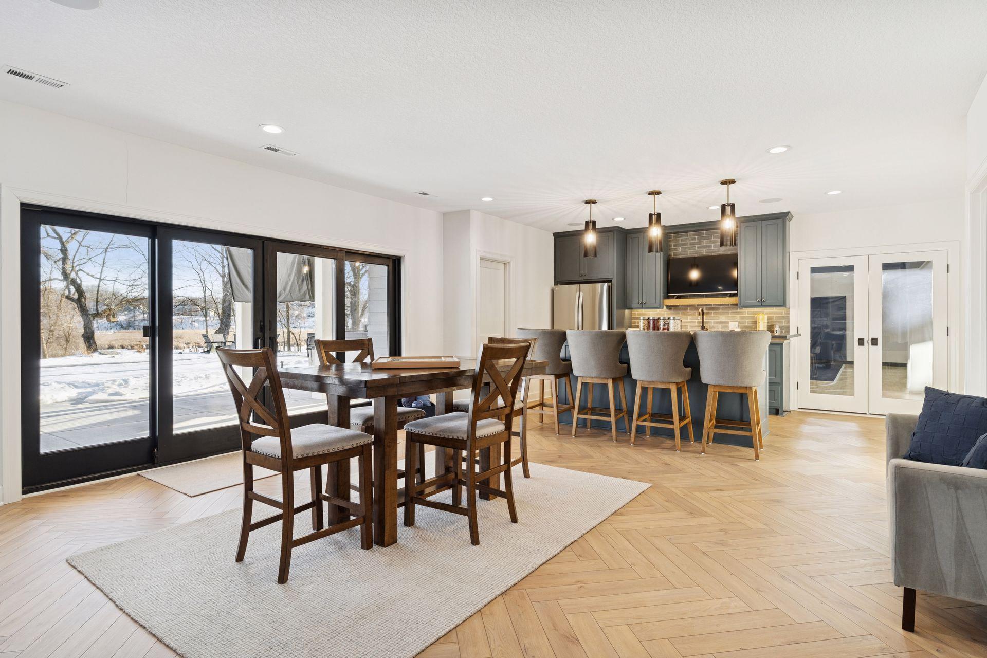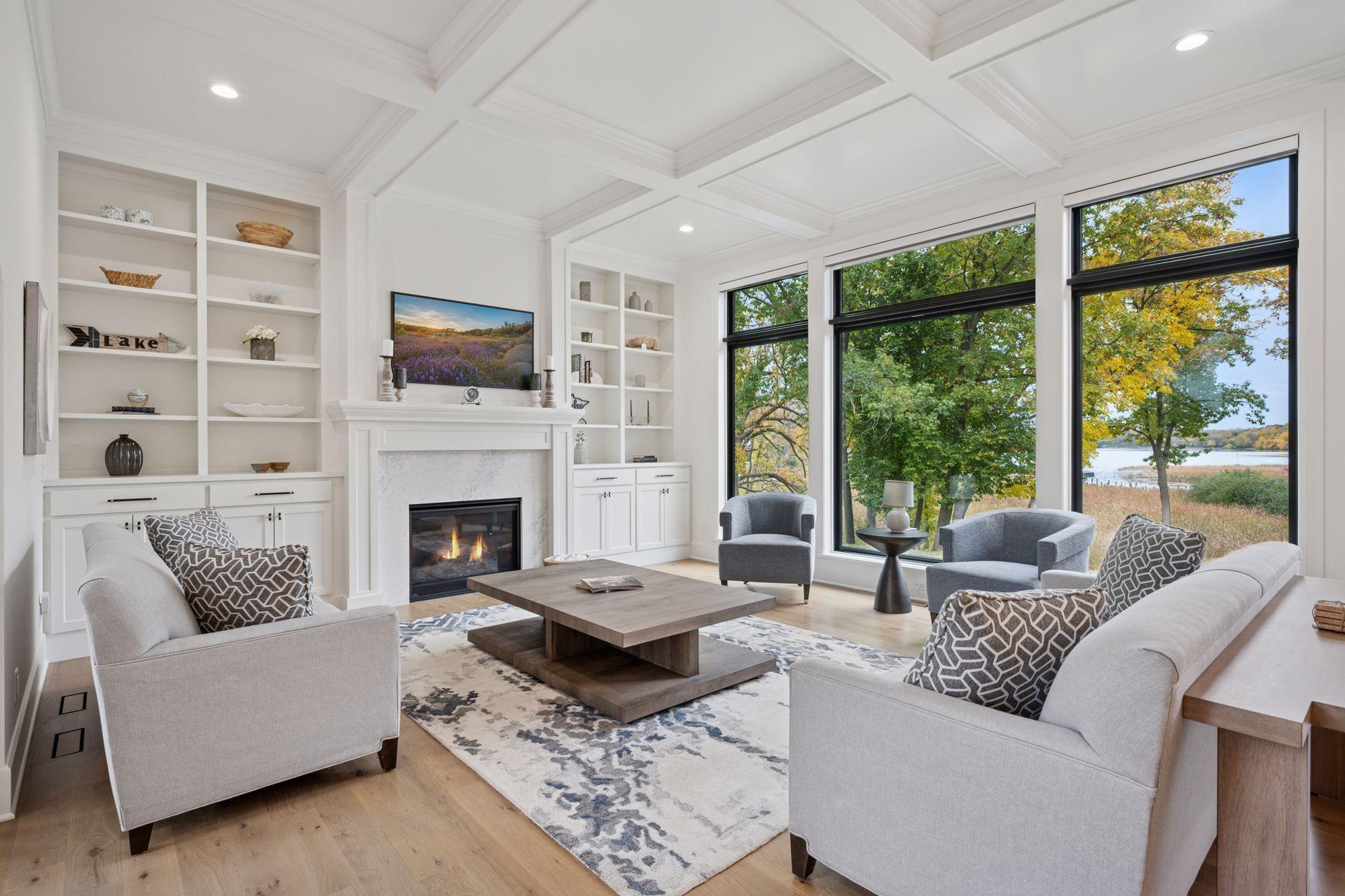 An absolutely breathtaking 2023 custom built home by Creek Hill Builders. This exquisite property offers over 7,000 sq ft of meticulously thought out spaces, a spectacular .74 acre lakefront lot on coveted Lake Minnetonka, 111 feet of shoreline, two 36 ft permanent dock slips on Halstead Bay, PLUS its very own .78 acre island. With endless entertaining spaces and flawless finishes, there truly is no detail left untouched. Spectacular main level great room with walls of windows overlooking Halstead Bay, a gorgeous, newly built pool and landscaping, exceptional vaulted porch with fireplace and built-in grill, two main level offices, butlers kitchen, 4 car heated garage, Sonos whole home speaker system, and so much more. The kitchen is a chef's dream, equipped with top-of-the-line Thermador appliances, Miele built in coffee machine, beautiful wood panel overlays, eye-catching floor-to-ceiling built-in hutch, and all the extra touches that make this home so special. The upper level boasts 4 bedrooms, plus a huge bonus room/5th bedroom, 5 bathrooms, double laundry and an exceptional vaulted primary suite with balcony, overlooking the incredible yard and lake. The lower level is an entertainers dream with a spacious living area, kitchen, glass wall gym and sauna, oversized sport court, bedroom, 2 bathrooms, additional laundry and doors leading out to your true backyard oasis - heated pool, jacuzzi, two fire pits, stunning patio, and that incredible dock and island. It's a true Creek Hill masterpiece that is sure to wow from the moment you arrive.