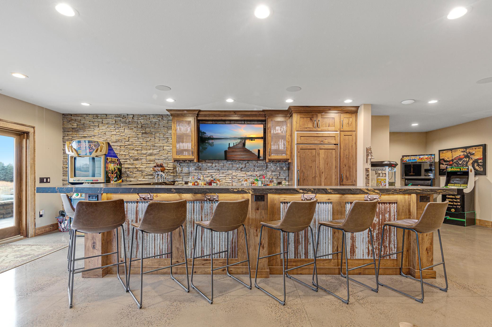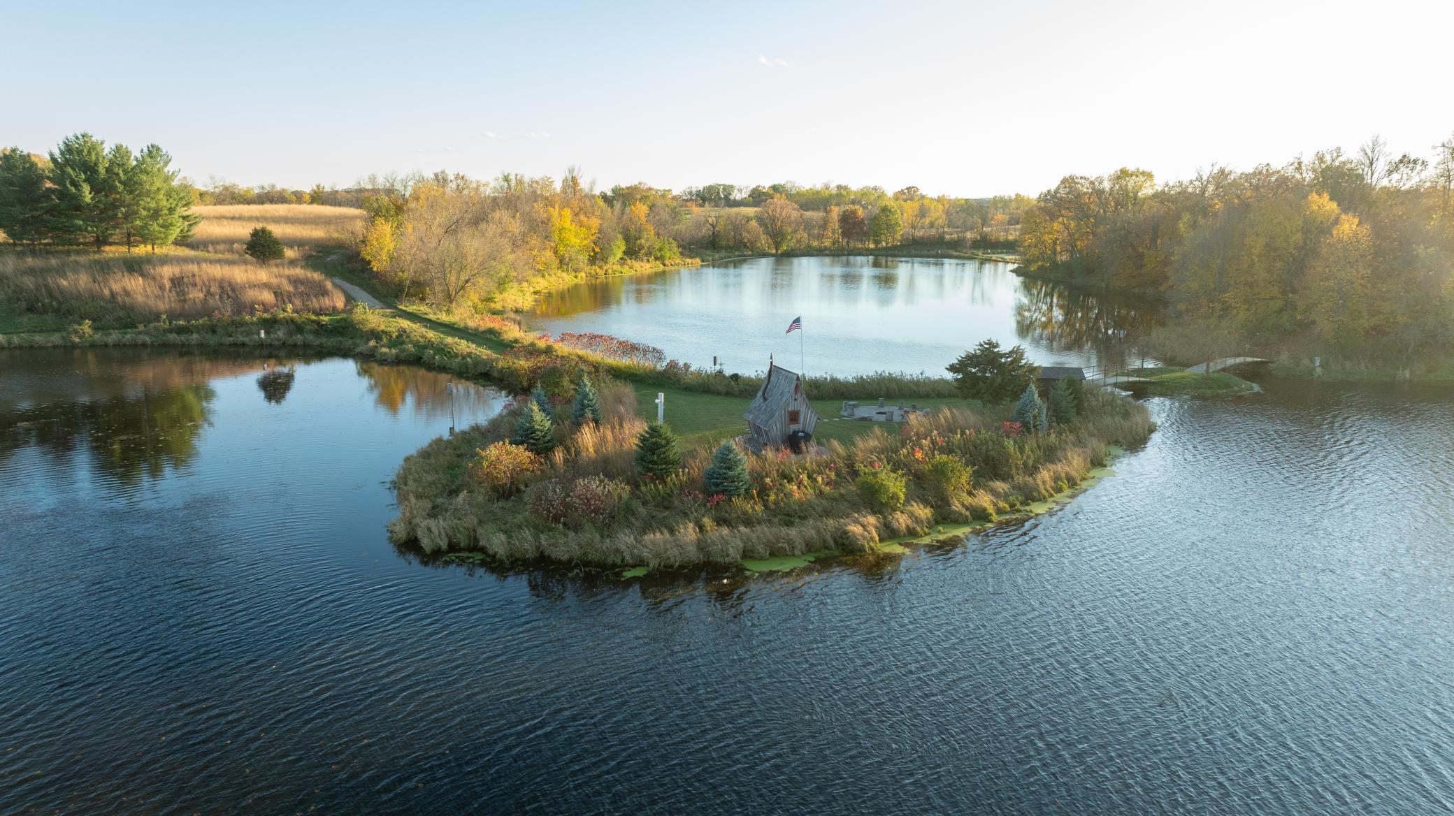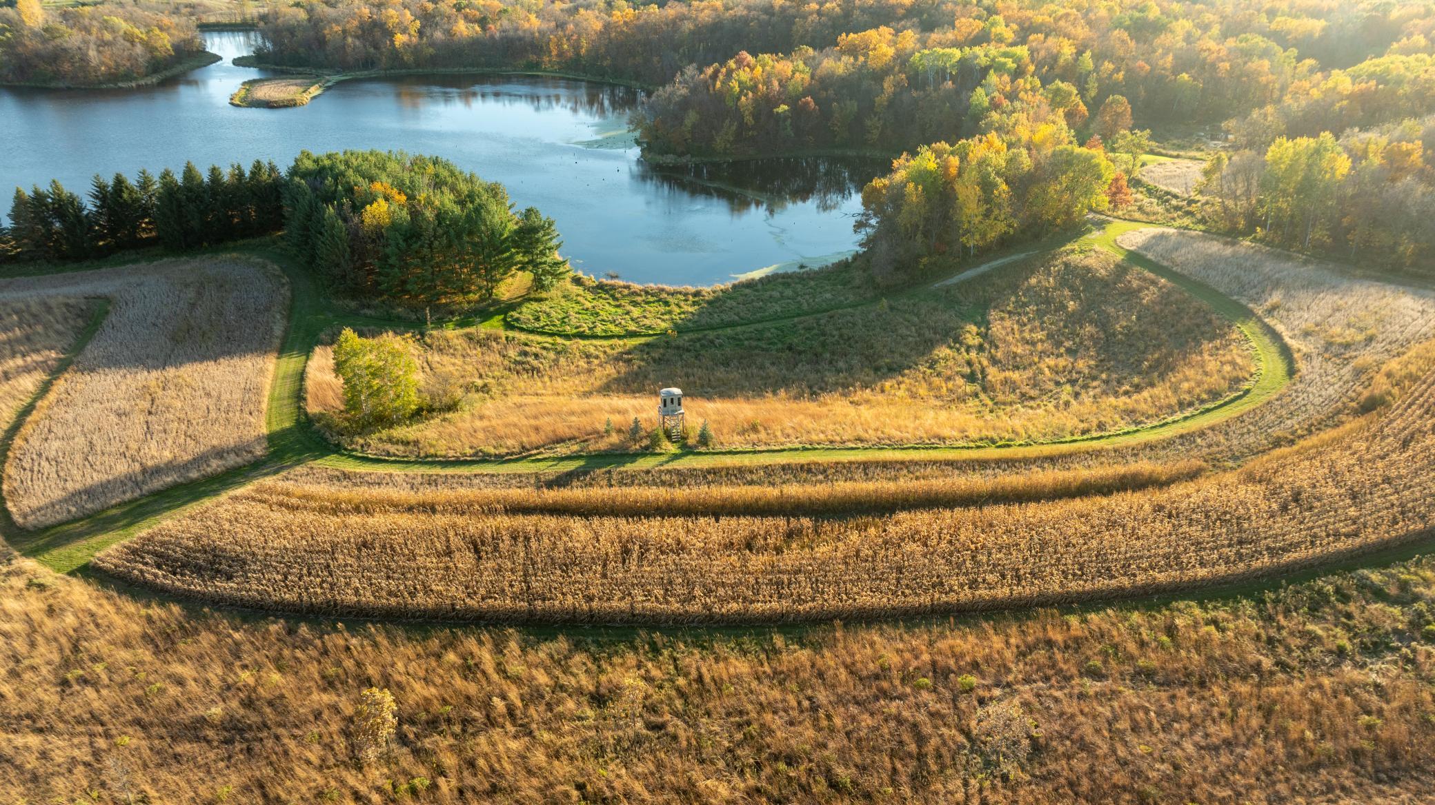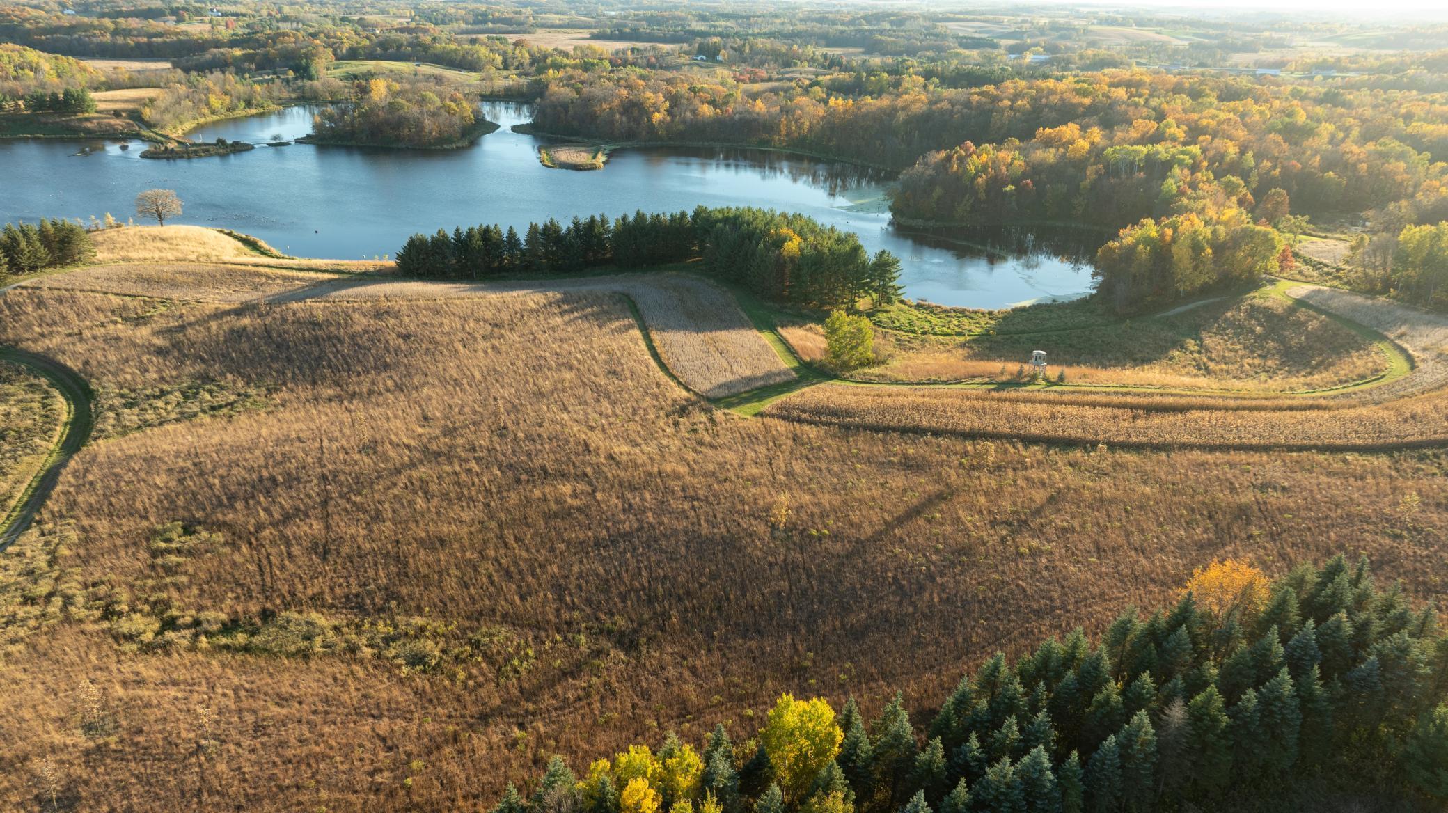Discover Haven 189, an extraordinary 189-acre country estate nestled in pristine wildlife habitat, overlooking a breathtaking 40-acre pond. This private retreat blends luxury living, lodge-style entertaining, and unparalleled outdoor adventure, offering a lifestyle that is both hunter-friendly and adventurous. The property is rich with wildlife, including whitetail deer, turkeys, waterfowl, and pheasants, making it a true paradise for outdoor enthusiasts. Arriving at Haven 189, a powered entrance gate welcomes you to an elegant residence with rolling hills, native prairie grasses, mature landscaping, and scenic water views. The home itself is a harmonious mix of elegance and comfort. Inside, the great room features soaring natural wood beams, a dramatic stone fireplace, and European white oak floors, while walls of windows frame the pond and surrounding landscape. The chef’s kitchen is both functional and stunning, with custom cabinetry, a large island, premium countertops, and professional-grade appliances—perfect for everything from casual family meals to entertaining large groups. The owner’s suite is a private sanctuary, complete with vaulted ceilings, a seating area, and a spa-inspired bath with Jacuzzi tub, walk-in shower, heated tile floors, and dual vanities. A custom walk-in closet with center island connects directly to the laundry and craft room, providing unmatched convenience and organization. The main level also offers a refined office with built-in cabinets, providing a polished workspace. Two spacious guest suites each feature dual vanities, and access to a large shared walk-in shower with changing area. A versatile laundry and craft room offers custom cabinetry, oversized storage drawers, and a built-in bench—combining style with practicality. Step down to the lower level, designed with masculine warmth and rugged sophistication. Polished, heated concrete floors lead to a full-sized bar and a large entertainment space with gas fireplace and dining area, creating the perfect space for gatherings. The bunk room features three sets of built-in queen bunk beds, ideal for family, guests, or large groups. This level also includes two spacious bathrooms with walk-in showers, one featuring a urinal. The dedicated outdoor gear room offers six lockers, a large island with ample storage for supplies, and behind barn doors, a closet conceals a large steel security door to a gun vault with ample storage for firearms, ammo, and hunting gear. Walk-out patios with pavers, fire pit, and grilling stations extend the lodge-style atmosphere outdoors, perfect for relaxation and camaraderie. A private gym with audio and wall-mounted TV completes this level. Additional Home Amenities Haven 189 is equipped with a full in-home audio system, dual air handlers with individual zoning for total temperature control everywhere in the home, and seamless wireless internet throughout the home. Each bedroom and living space features dedicated, wall-mounted screens for comfortable, customized viewing. The home also includes a mechanical room with a full-size washer and dryer on pedestals, ideal for cleaning and caring for outdoor gear, ensuring convenience and efficiency throughout the estate. Adjacent to the home, the 1,450 sq. ft. attached, oversized three-car heated and air-conditioned garage offers epoxy-coated floors, in-floor drain, remote-access keyless locks, and a finished trophy wall, combining practicality with luxury. This space is ideal for storing vehicles, atv’s, utv’s, providing functionality without compromising style. Haven 189’s grounds are meticulously designed with automated outdoor lighting, lawn irrigation with chemical injection, and drip lines for landscaping, ensuring healthy and vibrant grounds year-round. An elevated hardscape vegetable garden with a built-in watering system adds both beauty and functionality, enhancing the estate’s outdoor living experience.