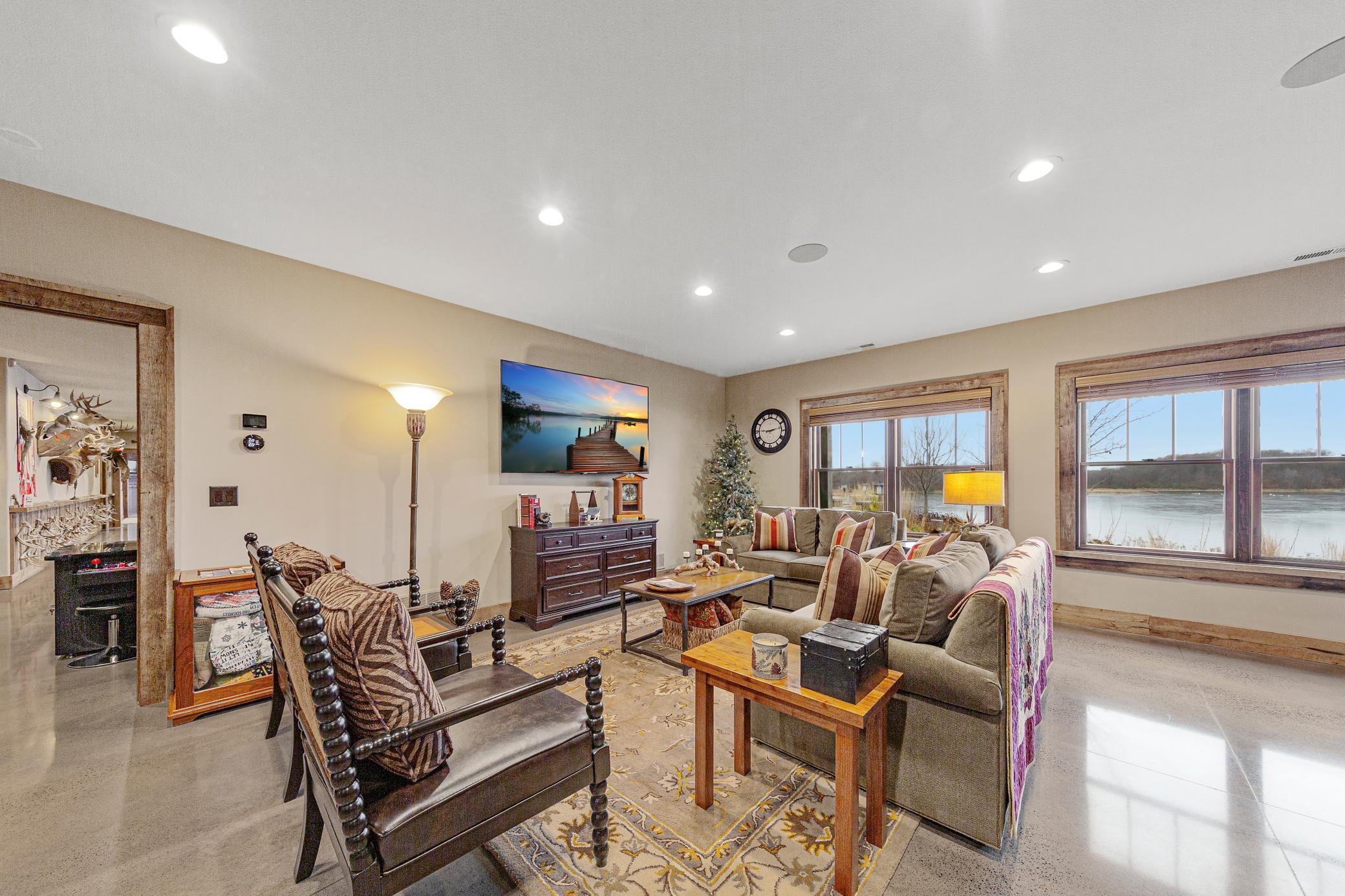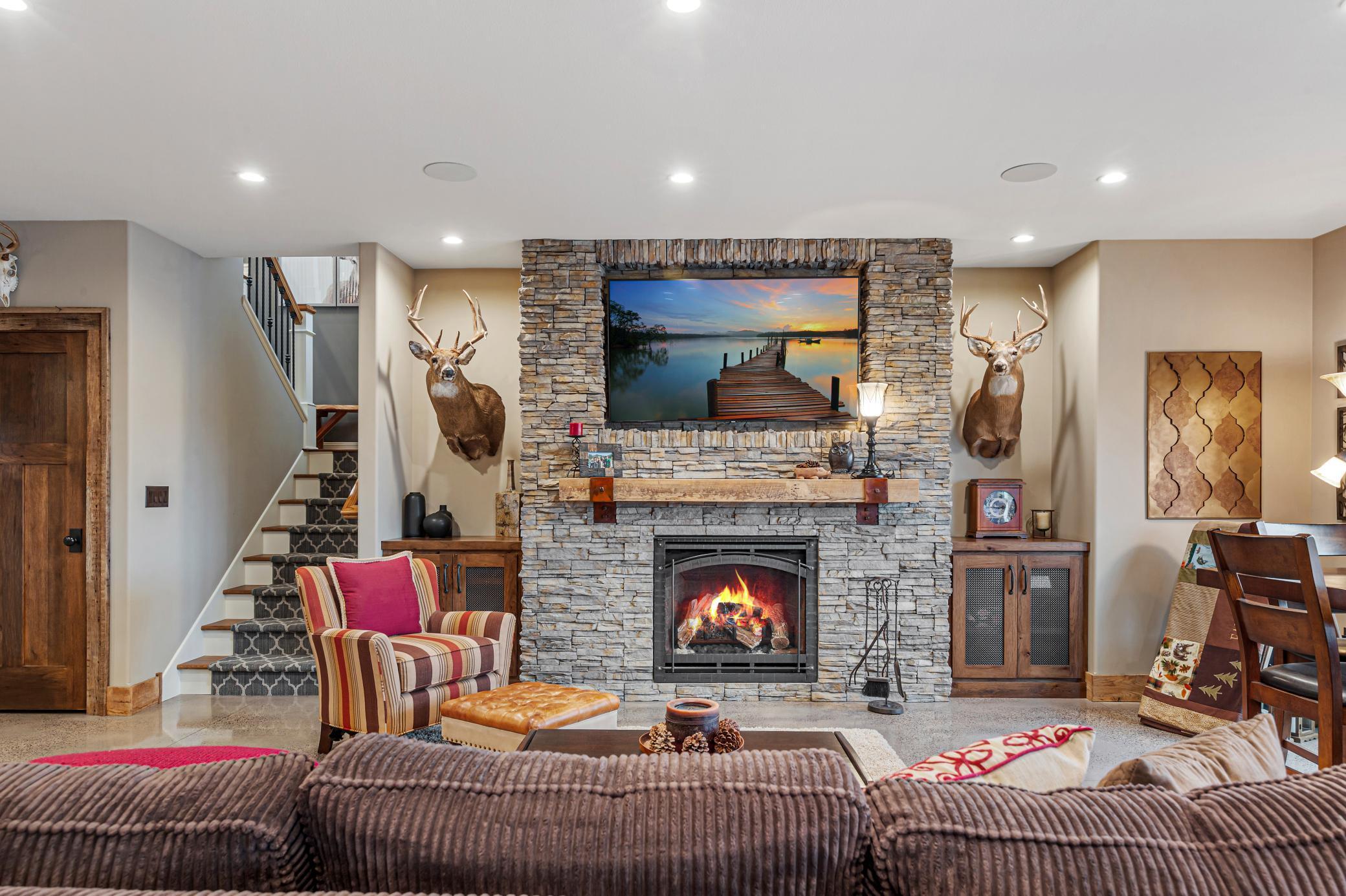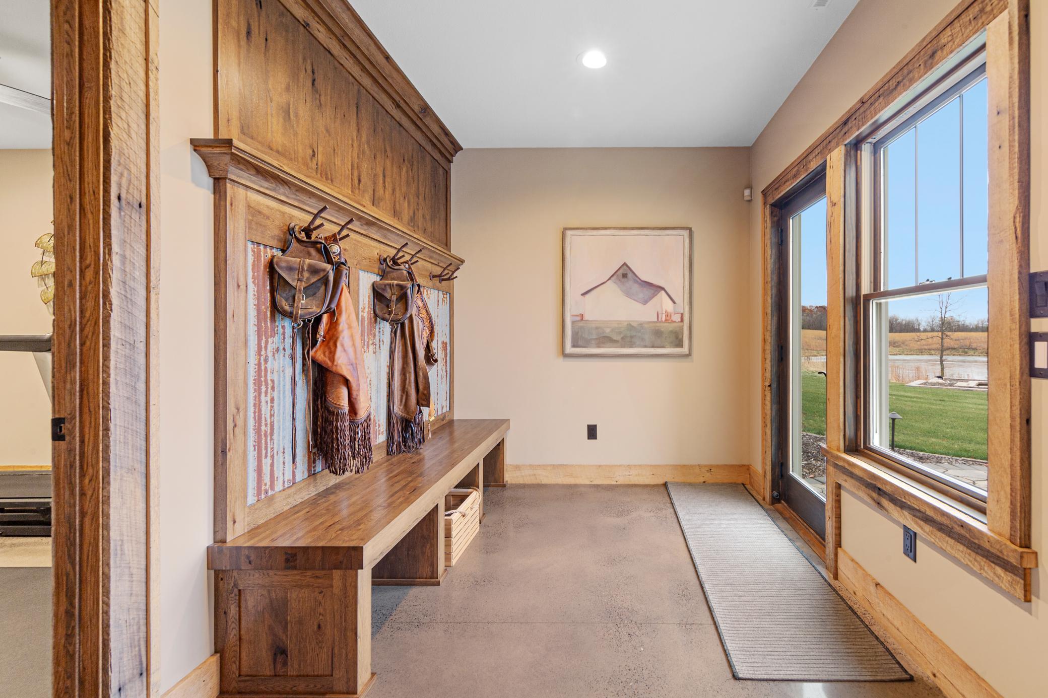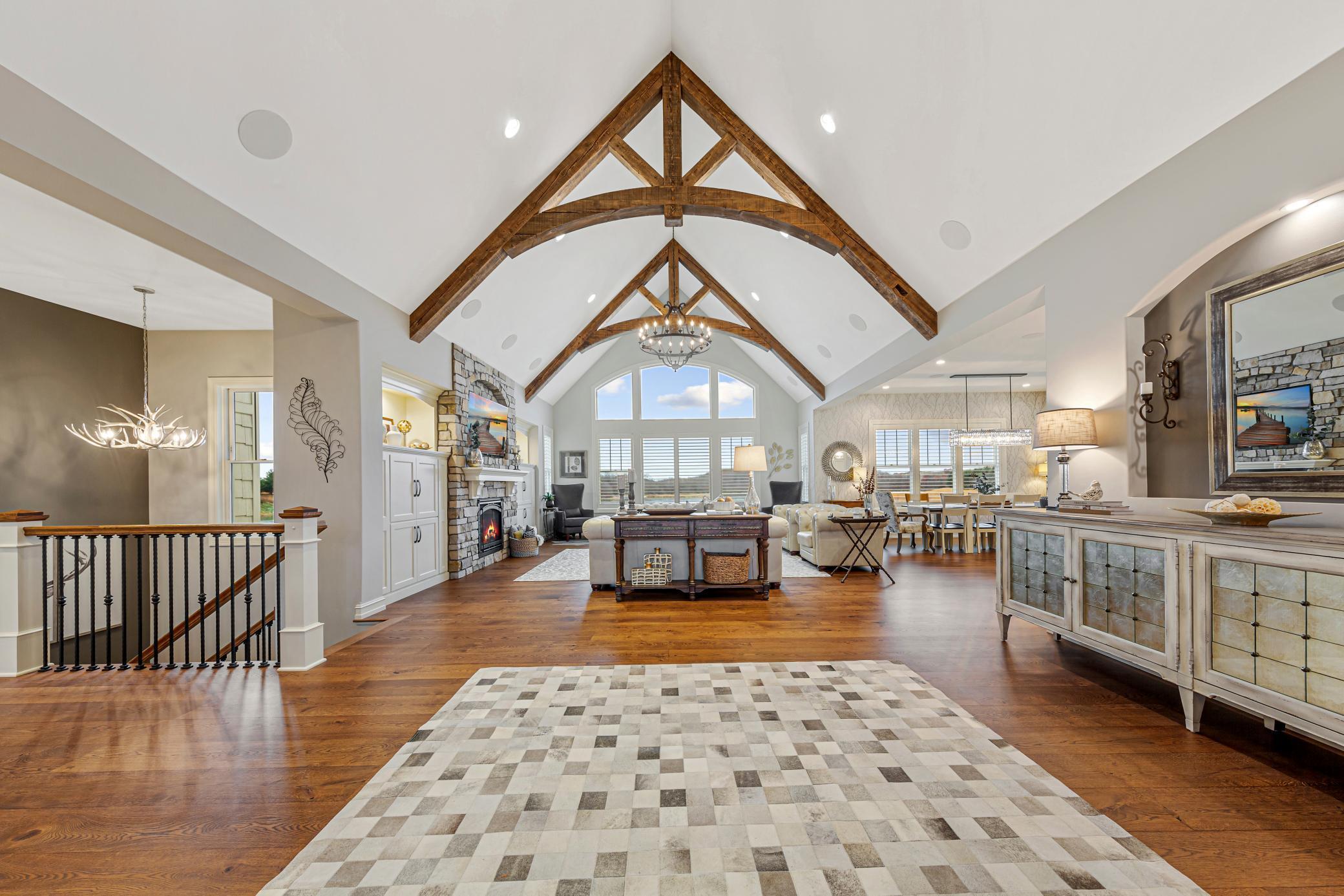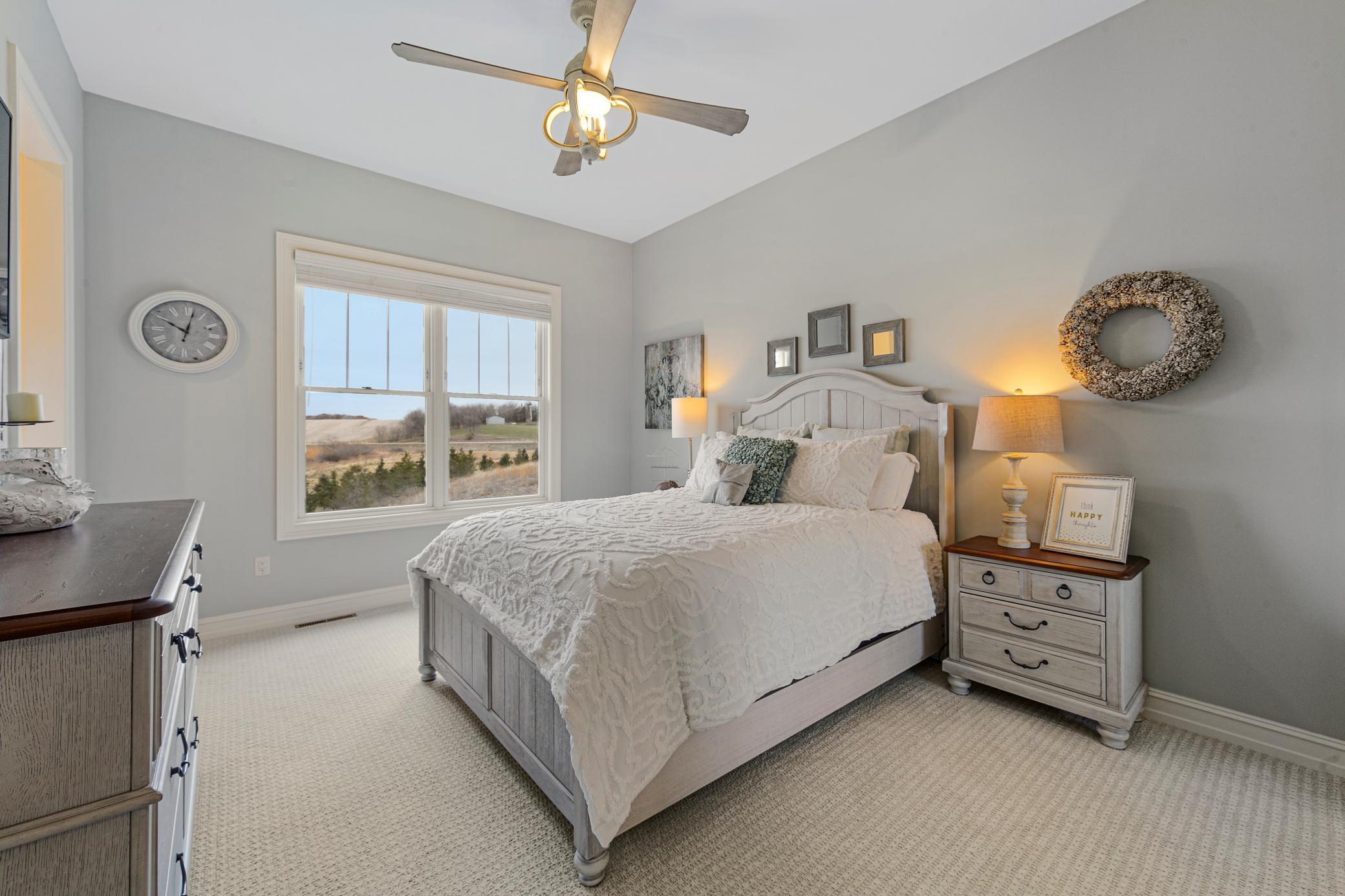 Discover Haven 189, an extraordinary 189-acre country estate nestled in pristine wildlife habitat, overlooking a breathtaking 40-acre pond. This private retreat blends luxury living, lodge-style entertaining, and unparalleled outdoor adventure, offering a lifestyle that is both hunter-friendly and adventurous. The property is rich with wildlife, including whitetail deer, turkeys, waterfowl, and pheasants, making it a true paradise for outdoor enthusiasts. Arriving at Haven 189, a powered entrance gate welcomes you to an elegant residence with rolling hills, native prairie grasses, mature landscaping, and scenic water views. The home itself is a harmonious mix of elegance and comfort. Inside, the great room features soaring natural wood beams, a dramatic stone fireplace, and European white oak floors, while walls of windows frame the pond and surrounding landscape. The chef’s kitchen is both functional and stunning, with custom cabinetry, a large island, premium countertops, and professional-grade appliances—perfect for everything from casual family meals to entertaining large groups. The owner’s suite is a private sanctuary, complete with vaulted ceilings, a seating area, and a spa-inspired bath with Jacuzzi tub, walk-in shower, heated tile floors, and dual vanities. A custom walk-in closet with center island connects directly to the laundry and craft room, providing unmatched convenience and organization. The main level also offers a refined office with built-in cabinets, providing a polished workspace. Two spacious guest suites each feature dual vanities, and access to a large shared walk-in shower with changing area. A versatile laundry and craft room offers custom cabinetry, oversized storage drawers, and a built-in bench—combining style with practicality. Step down to the lower level, designed with masculine warmth and rugged sophistication. Polished, heated concrete floors lead to a full-sized bar and a large entertainment space with gas fireplace and dining area, creating the perfect space for gatherings. The bunk room features three sets of built-in queen bunk beds, ideal for family, guests, or large groups. This level also includes two spacious bathrooms with walk-in showers, one featuring a urinal. The dedicated outdoor gear room offers six lockers, a large island with ample storage for supplies, and behind barn doors, a closet conceals a large steel security door to a gun vault with ample storage for firearms, ammo, and hunting gear. Walk-out patios with pavers, fire pit, and grilling stations extend the lodge-style atmosphere outdoors, perfect for relaxation and camaraderie. A private gym with audio and wall-mounted TV completes this level. Additional Home Amenities Haven 189 is equipped with a full in-home audio system, dual air handlers with individual zoning for total temperature control everywhere in the home, and seamless wireless internet throughout the home. Each bedroom and living space features dedicated, wall-mounted screens for comfortable, customized viewing. The home also includes a mechanical room with a full-size washer and dryer on pedestals, ideal for cleaning and caring for outdoor gear, ensuring convenience and efficiency throughout the estate. Adjacent to the home, the 1,450 sq. ft. attached, oversized three-car heated and air-conditioned garage offers epoxy-coated floors, in-floor drain, remote-access keyless locks, and a finished trophy wall, combining practicality with luxury. This space is ideal for storing vehicles, atv’s, utv’s, providing functionality without compromising style. Haven 189’s grounds are meticulously designed with automated outdoor lighting, lawn irrigation with chemical injection, and drip lines for landscaping, ensuring healthy and vibrant grounds year-round. An elevated hardscape vegetable garden with a built-in watering system adds both beauty and functionality, enhancing the estate’s outdoor living experience.