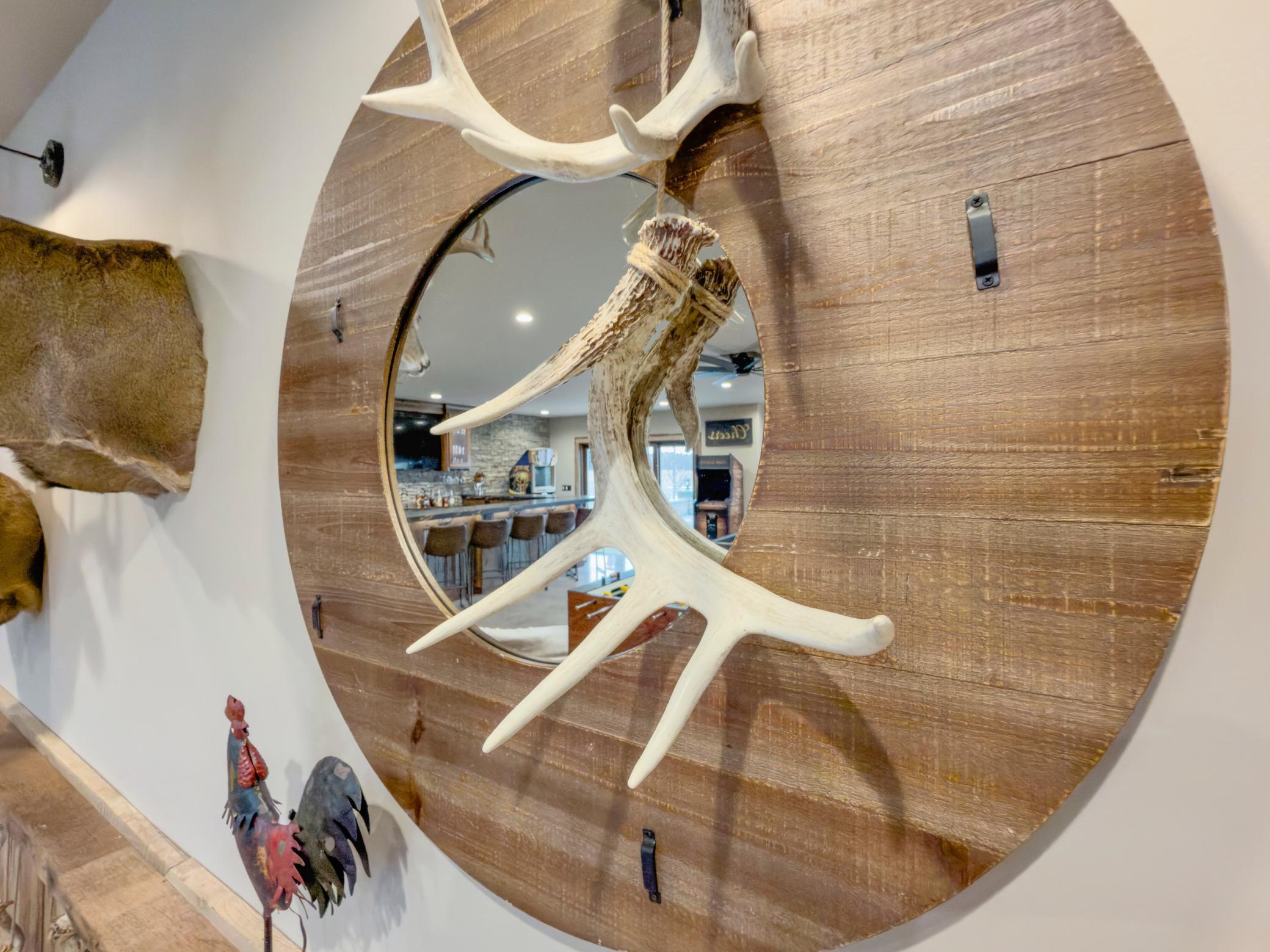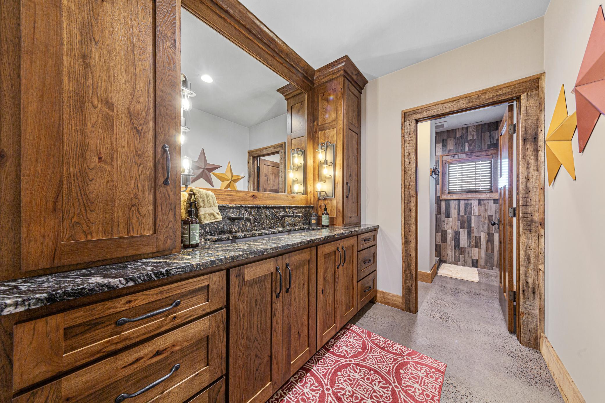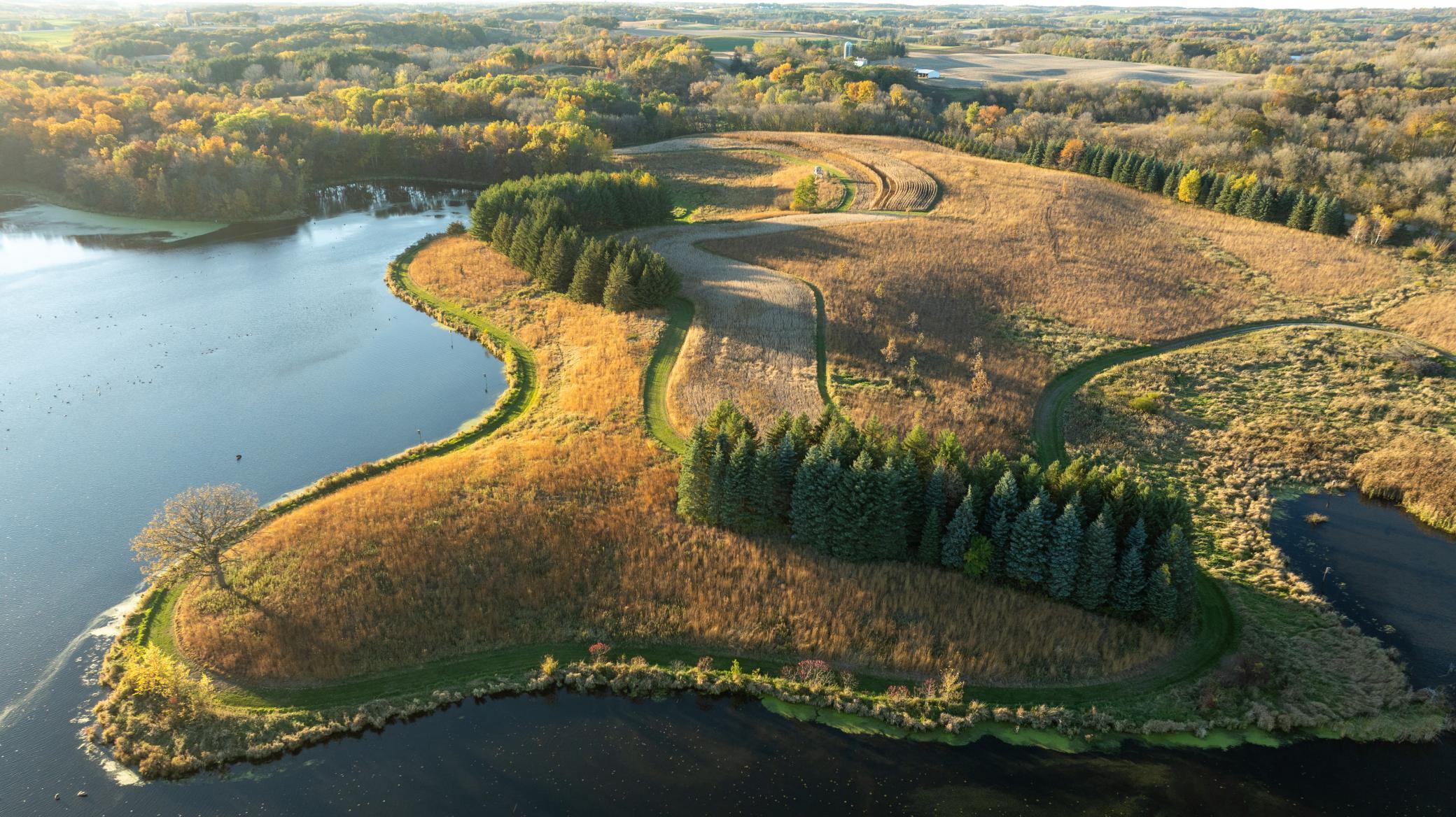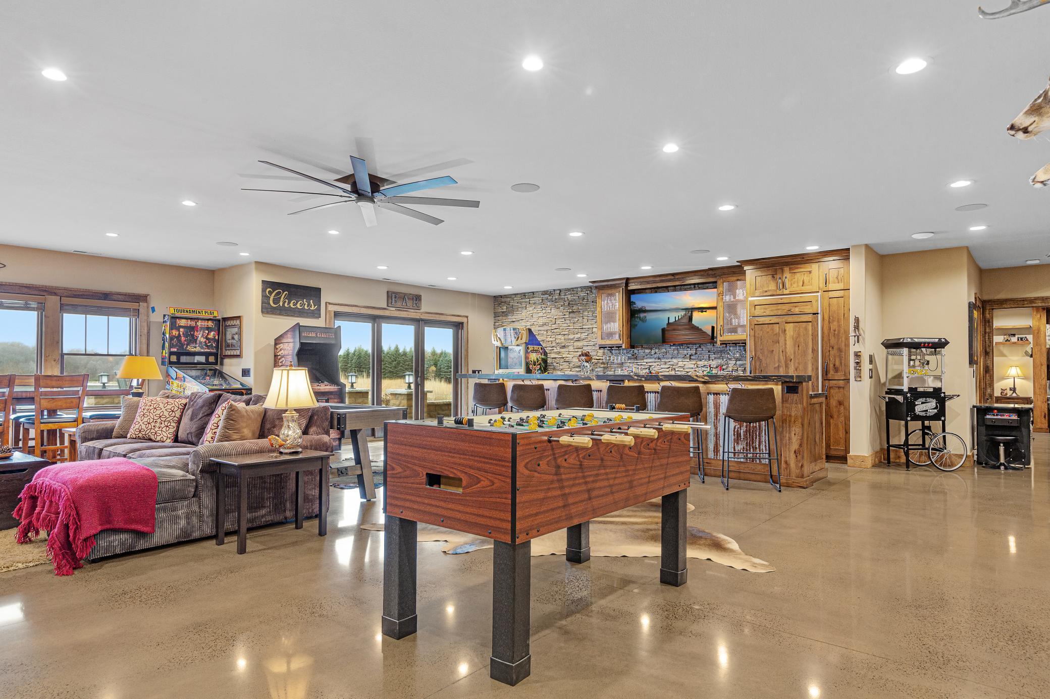 Discover Haven 189, an extraordinary 189-acre country estate nestled in pristine wildlife habitat, overlooking a breathtaking 40-acre pond. This private retreat blends luxury living, lodge-style entertaining, and unparalleled outdoor adventure, offering a lifestyle that is both hunter-friendly and adventurous. The property is rich with wildlife, including whitetail deer, turkeys, waterfowl, and pheasants, making it a true paradise for outdoor enthusiasts. Arriving at Haven 189, a powered entrance gate welcomes you to an elegant residence with rolling hills, native prairie grasses, mature landscaping, and scenic water views. The home itself is a harmonious mix of elegance and comfort. Inside, the great room features soaring natural wood beams, a dramatic stone fireplace, and European white oak floors, while walls of windows frame the pond and surrounding landscape. The chef’s kitchen is both functional and stunning, with custom cabinetry, a large island, premium countertops, and professional-grade appliances—perfect for everything from casual family meals to entertaining large groups. The owner’s suite is a private sanctuary, complete with vaulted ceilings, a seating area, and a spa-inspired bath with Jacuzzi tub, walk-in shower, heated tile floors, and dual vanities. A custom walk-in closet with center island connects directly to the laundry and craft room, providing unmatched convenience and organization. The main level also offers a refined office with built-in cabinets, providing a polished workspace. Two spacious guest suites each feature dual vanities, and access to a large shared walk-in shower with changing area. A versatile laundry and craft room offers custom cabinetry, oversized storage drawers, and a built-in bench—combining style with practicality. Step down to the lower level, designed with masculine warmth and rugged sophistication. Polished, heated concrete floors lead to a full-sized bar and a large entertainment space with gas fireplace and dining area, creating the perfect space for gatherings. The bunk room features three sets of built-in queen bunk beds, ideal for family, guests, or large groups. This level also includes two spacious bathrooms with walk-in showers, one featuring a urinal. The dedicated outdoor gear room offers six lockers, a large island with ample storage for supplies, and behind barn doors, a closet conceals a large steel security door to a gun vault with ample storage for firearms, ammo, and hunting gear. Walk-out patios with pavers, fire pit, and grilling stations extend the lodge-style atmosphere outdoors, perfect for relaxation and camaraderie. A private gym with audio and wall-mounted TV completes this level. Additional Home Amenities Haven 189 is equipped with a full in-home audio system, dual air handlers with individual zoning for total temperature control everywhere in the home, and seamless wireless internet throughout the home. Each bedroom and living space features dedicated, wall-mounted screens for comfortable, customized viewing. The home also includes a mechanical room with a full-size washer and dryer on pedestals, ideal for cleaning and caring for outdoor gear, ensuring convenience and efficiency throughout the estate. Adjacent to the home, the 1,450 sq. ft. attached, oversized three-car heated and air-conditioned garage offers epoxy-coated floors, in-floor drain, remote-access keyless locks, and a finished trophy wall, combining practicality with luxury. This space is ideal for storing vehicles, atv’s, utv’s, providing functionality without compromising style. Haven 189’s grounds are meticulously designed with automated outdoor lighting, lawn irrigation with chemical injection, and drip lines for landscaping, ensuring healthy and vibrant grounds year-round. An elevated hardscape vegetable garden with a built-in watering system adds both beauty and functionality, enhancing the estate’s outdoor living experience.