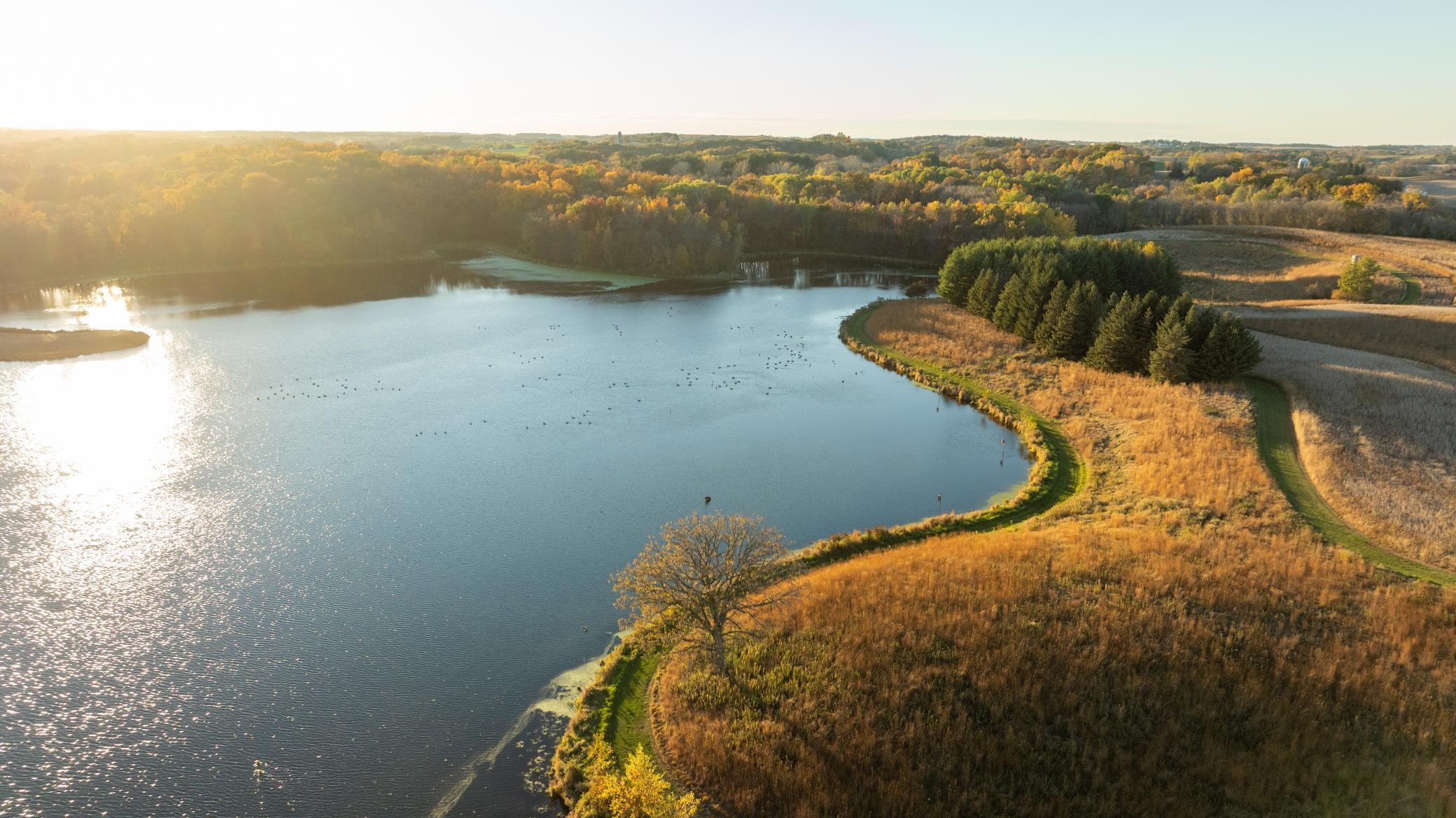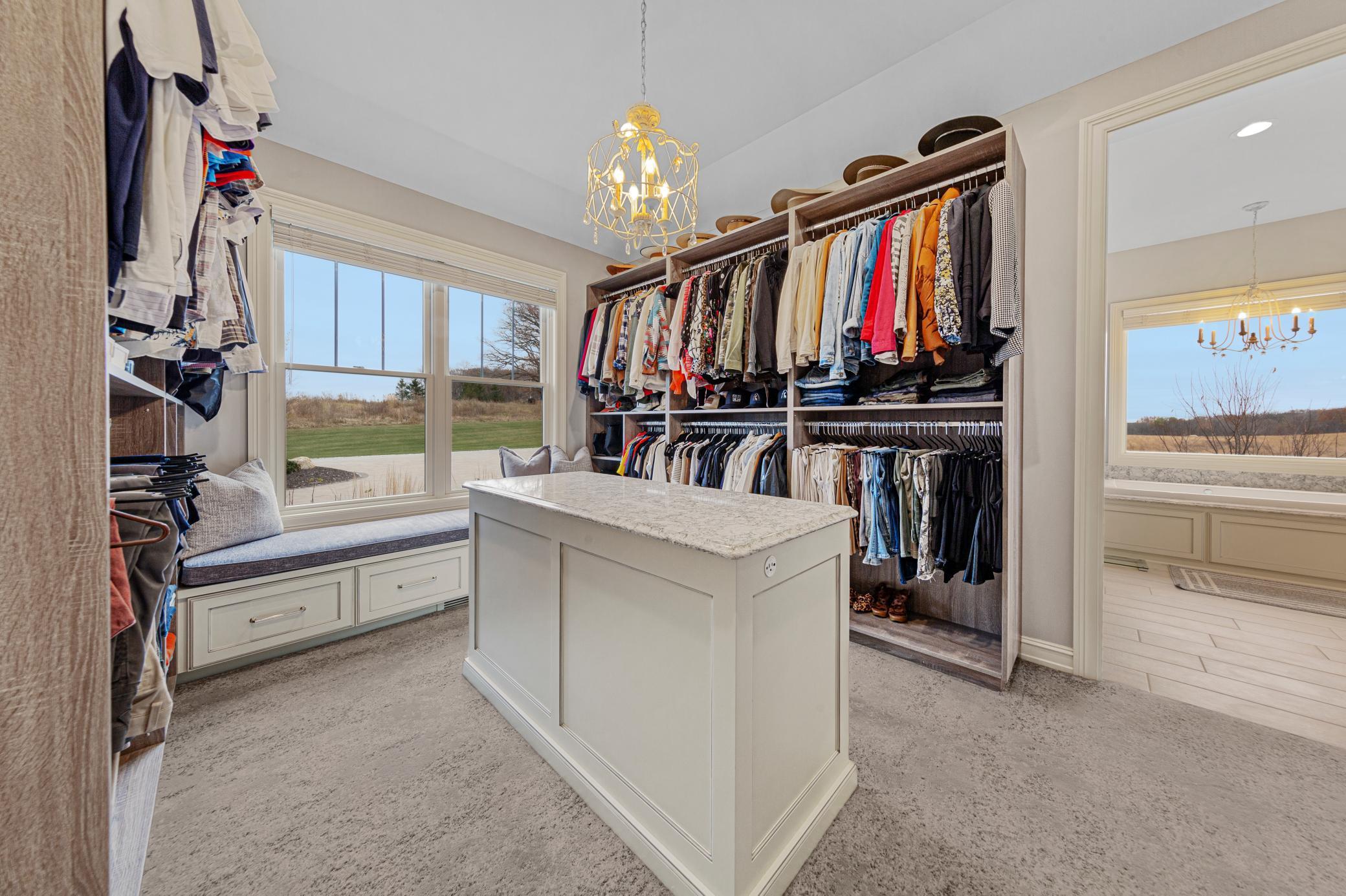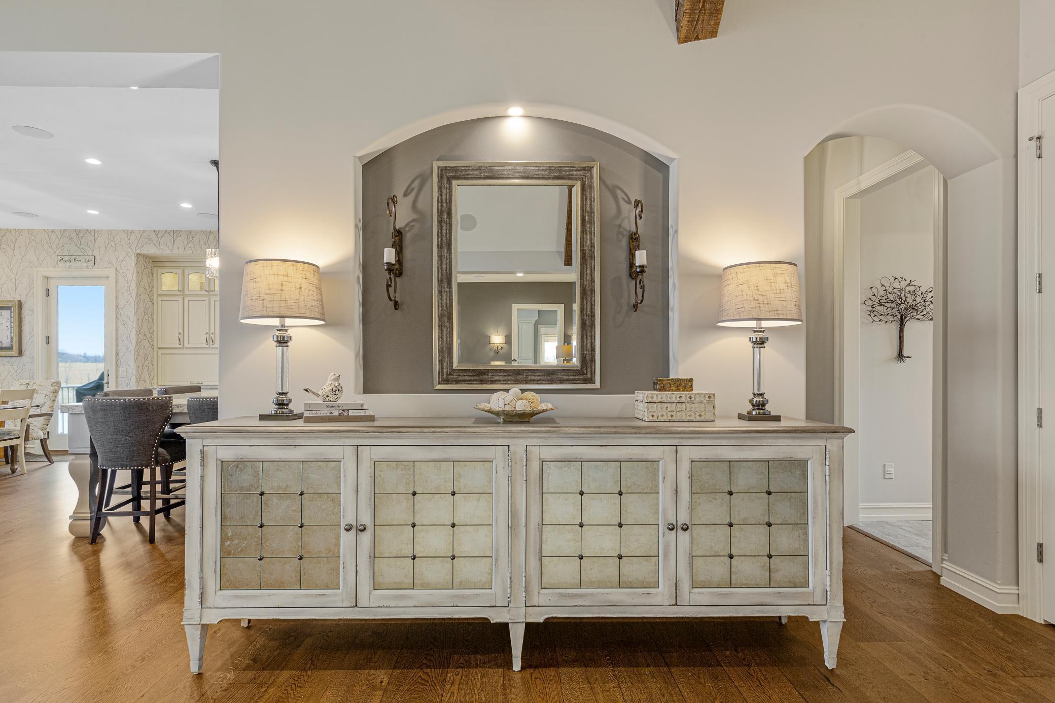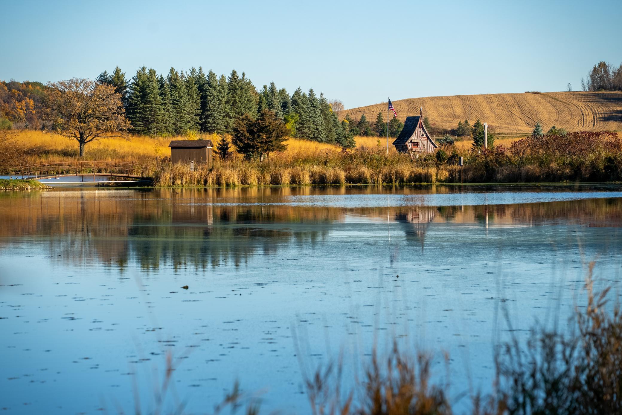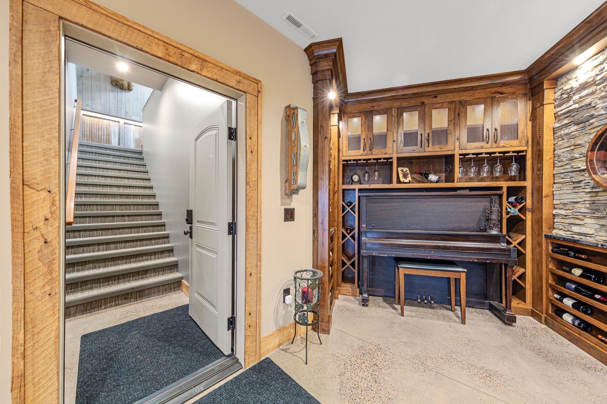 Discover Haven 189, an extraordinary 189-acre country estate nestled in pristine wildlife habitat, overlooking a breathtaking 40-acre pond. This private retreat blends luxury living, lodge-style entertaining, and unparalleled outdoor adventure, offering a lifestyle that is both hunter-friendly and adventurous. The property is rich with wildlife, including whitetail deer, turkeys, waterfowl, and pheasants, making it a true paradise for outdoor enthusiasts. Arriving at Haven 189, a powered entrance gate welcomes you to an elegant residence with rolling hills, native prairie grasses, mature landscaping, and scenic water views. The home itself is a harmonious mix of elegance and comfort. Inside, the great room features soaring natural wood beams, a dramatic stone fireplace, and European white oak floors, while walls of windows frame the pond and surrounding landscape. The chef’s kitchen is both functional and stunning, with custom cabinetry, a large island, premium countertops, and professional-grade appliances—perfect for everything from casual family meals to entertaining large groups. The owner’s suite is a private sanctuary, complete with vaulted ceilings, a seating area, and a spa-inspired bath with Jacuzzi tub, walk-in shower, heated tile floors, and dual vanities. A custom walk-in closet with center island connects directly to the laundry and craft room, providing unmatched convenience and organization. The main level also offers a refined office with built-in cabinets, providing a polished workspace. Two spacious guest suites each feature dual vanities, and access to a large shared walk-in shower with changing area. A versatile laundry and craft room offers custom cabinetry, oversized storage drawers, and a built-in bench—combining style with practicality. Step down to the lower level, designed with masculine warmth and rugged sophistication. Polished, heated concrete floors lead to a full-sized bar and a large entertainment space with gas fireplace and dining area, creating the perfect space for gatherings. The bunk room features three sets of built-in queen bunk beds, ideal for family, guests, or large groups. This level also includes two spacious bathrooms with walk-in showers, one featuring a urinal. The dedicated outdoor gear room offers six lockers, a large island with ample storage for supplies, and behind barn doors, a closet conceals a large steel security door to a gun vault with ample storage for firearms, ammo, and hunting gear. Walk-out patios with pavers, fire pit, and grilling stations extend the lodge-style atmosphere outdoors, perfect for relaxation and camaraderie. A private gym with audio and wall-mounted TV completes this level. Additional Home Amenities Haven 189 is equipped with a full in-home audio system, dual air handlers with individual zoning for total temperature control everywhere in the home, and seamless wireless internet throughout the home. Each bedroom and living space features dedicated, wall-mounted screens for comfortable, customized viewing. The home also includes a mechanical room with a full-size washer and dryer on pedestals, ideal for cleaning and caring for outdoor gear, ensuring convenience and efficiency throughout the estate. Adjacent to the home, the 1,450 sq. ft. attached, oversized three-car heated and air-conditioned garage offers epoxy-coated floors, in-floor drain, remote-access keyless locks, and a finished trophy wall, combining practicality with luxury. This space is ideal for storing vehicles, atv’s, utv’s, providing functionality without compromising style. Haven 189’s grounds are meticulously designed with automated outdoor lighting, lawn irrigation with chemical injection, and drip lines for landscaping, ensuring healthy and vibrant grounds year-round. An elevated hardscape vegetable garden with a built-in watering system adds both beauty and functionality, enhancing the estate’s outdoor living experience.
