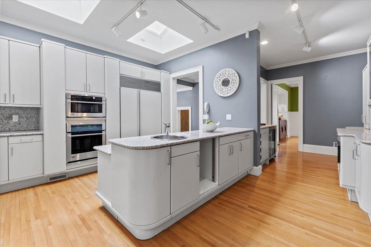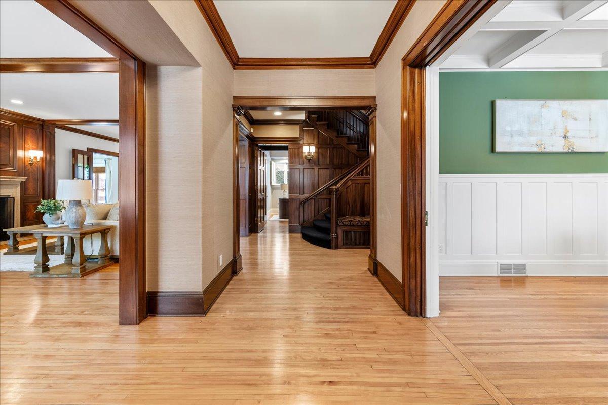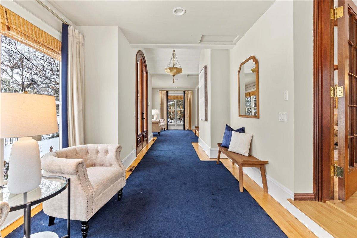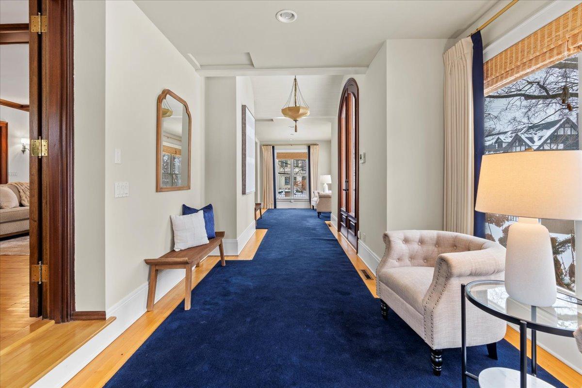 Architectural masterpiece in the heart of the Lowry Hill neighborhood, just one block from Kenwood Park and the prestigious Lake of the Isles. This exceptional 4-bedroom, 7-bath home is defined by timeless craftsmanship, stunning mahogany woodwork, and expansive, light-filled spaces. Situated on a gated corner lot at Summit and Knox Avenues, the main level features a luxurious living room with rich mahogany detailing, three fireplaces, a light-filled dining room showcasing elegant woodwork, and a spacious second living area with vaulted ceilings, custom cabinetry, and versatile design for entertaining or everyday living. A sunroom bathes the space in natural light, creating an inviting nook perfect for morning coffee, reading, or relaxing in luxury. The refined main-floor office offers abundant light, sophisticated finishes, and a conveniently connected half bath. An oversized, functional kitchen and seamless access to outdoor spaces enhance the home’s already expansive entertaining possibilities. The stunning grand staircase leads to upper-level bedrooms, each with an ensuite bath, highlighted by an expansive primary suite featuring a connected bathroom and a large walk-in closet with a separate exit. The third level offers a flexible suite with a bedroom, bath, and living space—ideal for a live-in nanny, multi-generational living, growing children, or creative use. The lower level is designed for leisure and entertainment, boasting a handcrafted bar, climate-controlled wine cellar, amusement room, and a glass-walled exercise room ready for your personal gym. Premium commercial-grade fiber and an interconnected home electronic system provide modern 21st-century convenience, while a fenced backyard and spacious, attached garage complete this private oasis. Combining elegance, functionality, and an unrivaled location, this home delivers an extraordinary living experience just minutes from downtown, the airport, and major freeways.
