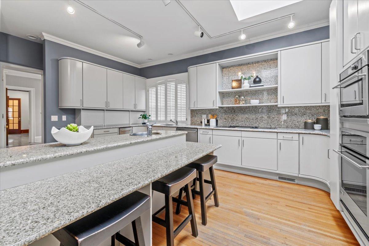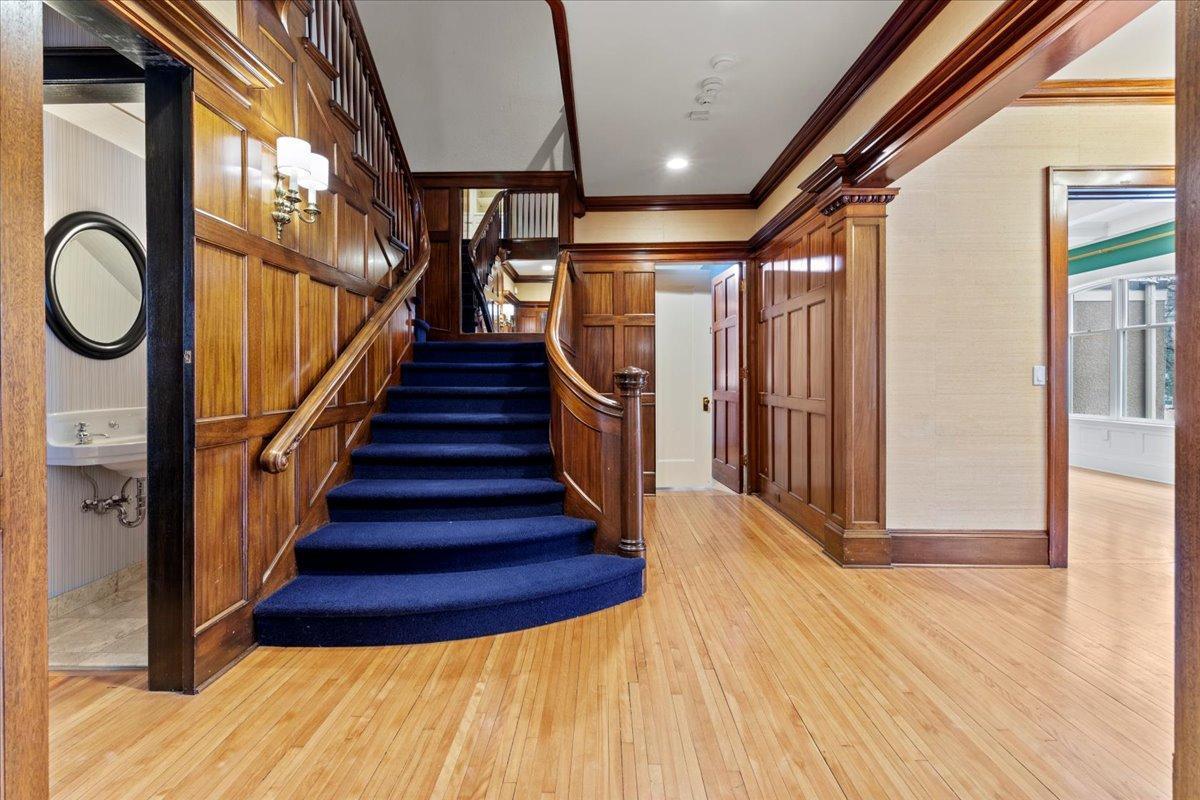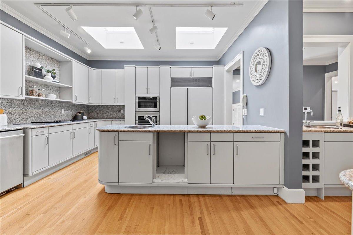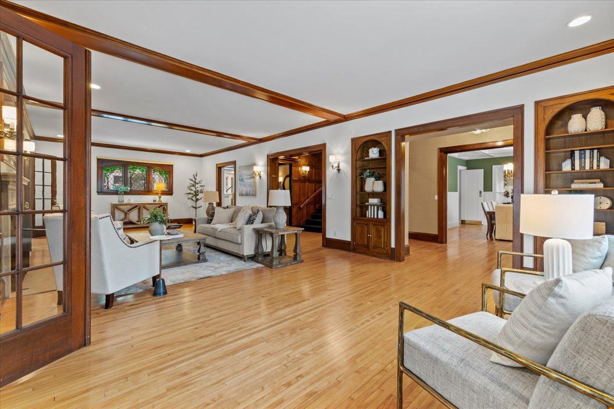 Architectural masterpiece in the heart of the Lowry Hill neighborhood, just one block from Kenwood Park and the prestigious Lake of the Isles. This exceptional 4-bedroom, 7-bath home is defined by timeless craftsmanship, stunning mahogany woodwork, and expansive, light-filled spaces. Situated on a gated corner lot at Summit and Knox Avenues, the main level features a luxurious living room with rich mahogany detailing, three fireplaces, a light-filled dining room showcasing elegant woodwork, and a spacious second living area with vaulted ceilings, custom cabinetry, and versatile design for entertaining or everyday living. A sunroom bathes the space in natural light, creating an inviting nook perfect for morning coffee, reading, or relaxing in luxury. The refined main-floor office offers abundant light, sophisticated finishes, and a conveniently connected half bath. An oversized, functional kitchen and seamless access to outdoor spaces enhance the home’s already expansive entertaining possibilities. The stunning grand staircase leads to upper-level bedrooms, each with an ensuite bath, highlighted by an expansive primary suite featuring a connected bathroom and a large walk-in closet with a separate exit. The third level offers a flexible suite with a bedroom, bath, and living space—ideal for a live-in nanny, multi-generational living, growing children, or creative use. The lower level is designed for leisure and entertainment, boasting a handcrafted bar, climate-controlled wine cellar, amusement room, and a glass-walled exercise room ready for your personal gym. Premium commercial-grade fiber and an interconnected home electronic system provide modern 21st-century convenience, while a fenced backyard and spacious, attached garage complete this private oasis. Combining elegance, functionality, and an unrivaled location, this home delivers an extraordinary living experience just minutes from downtown, the airport, and major freeways.