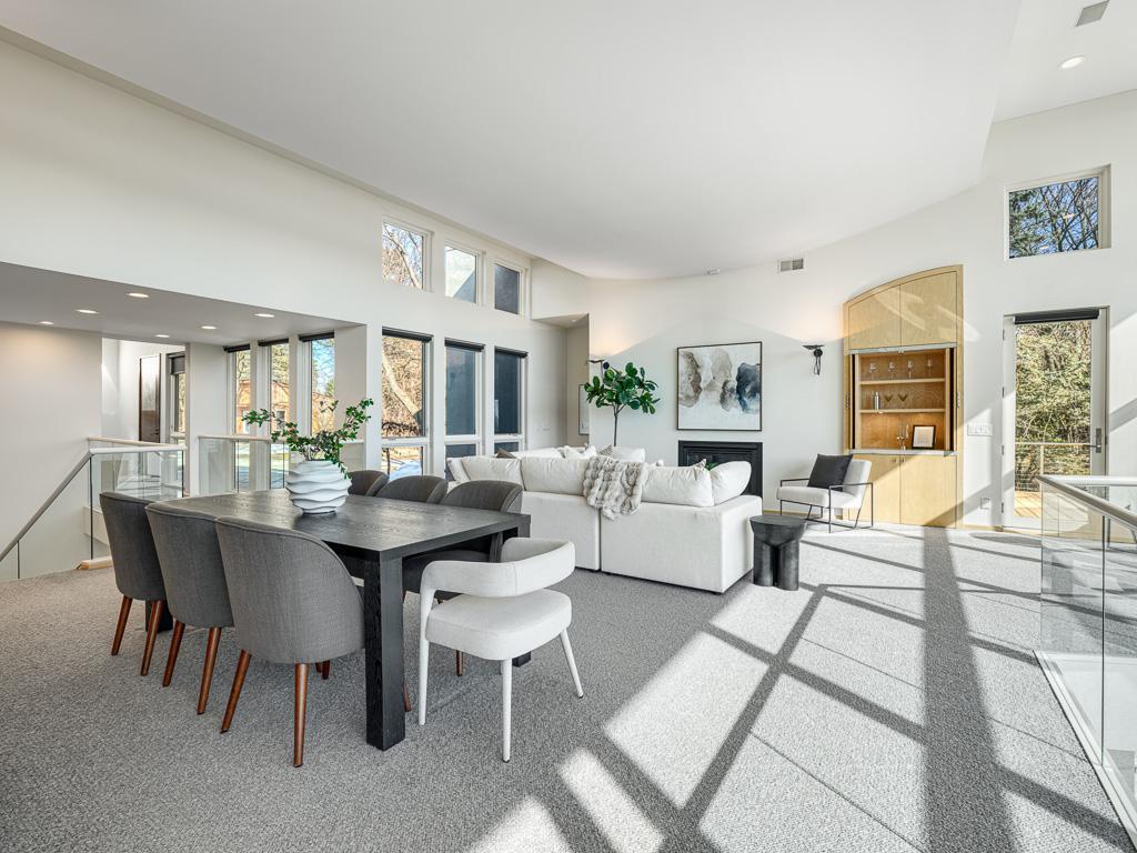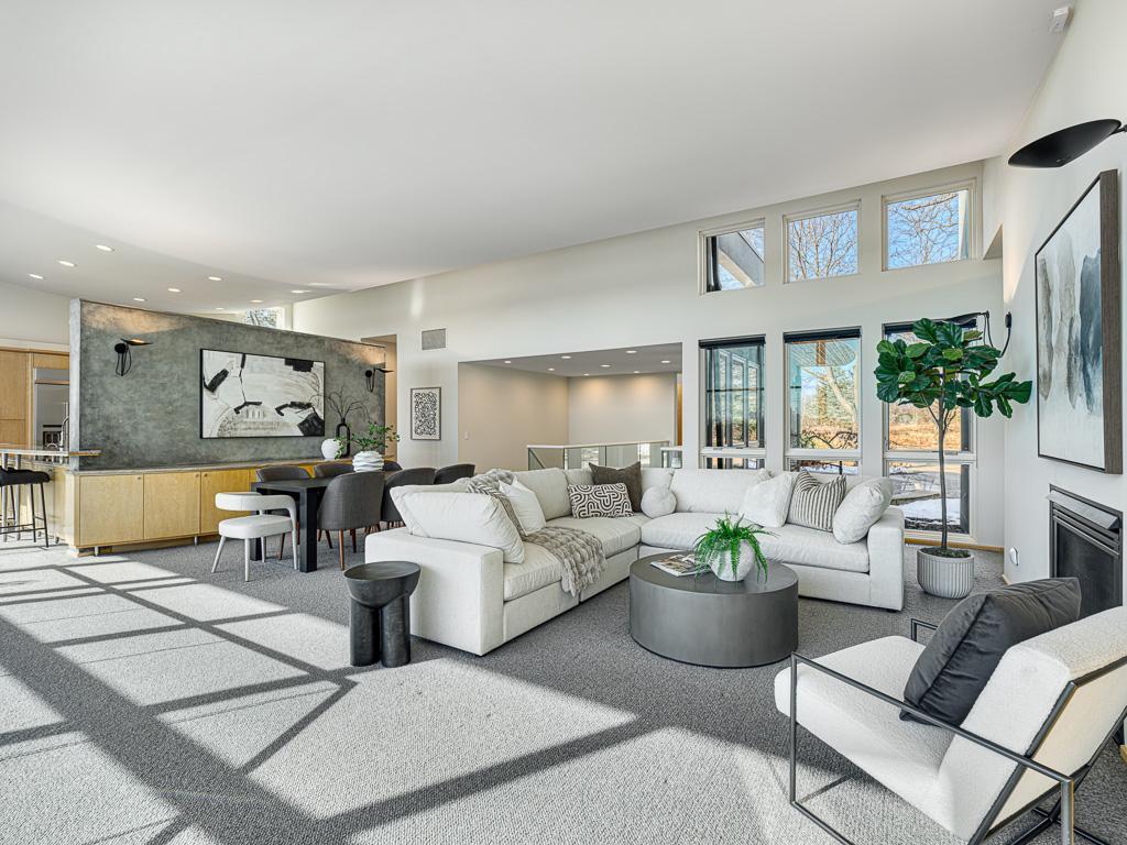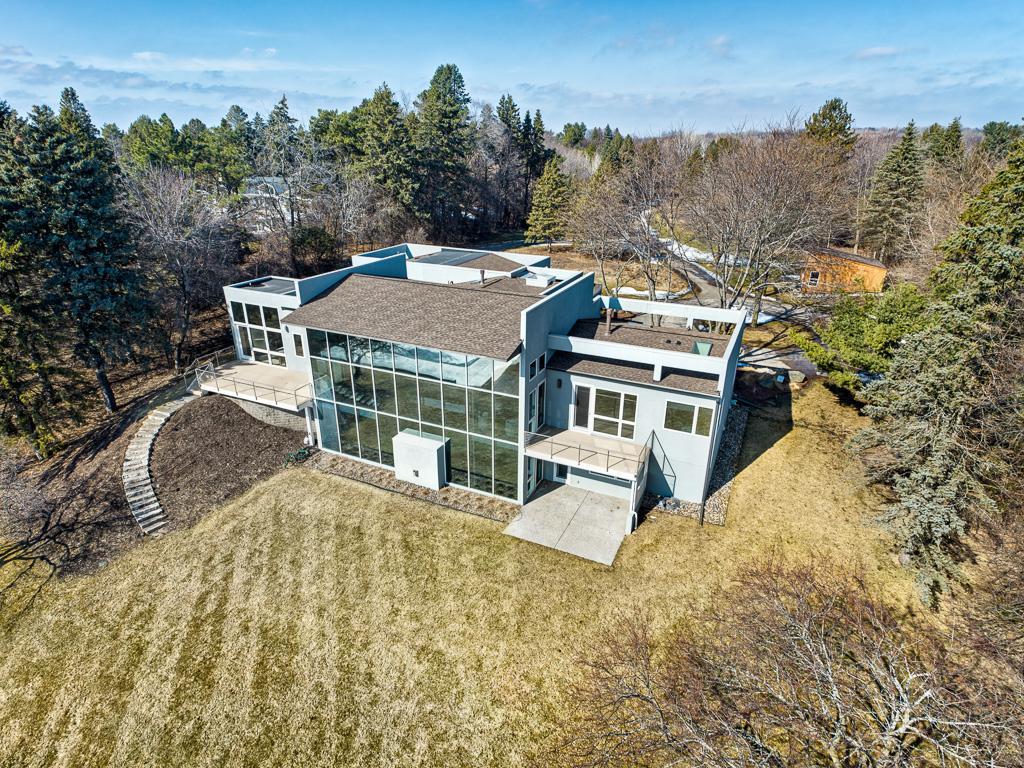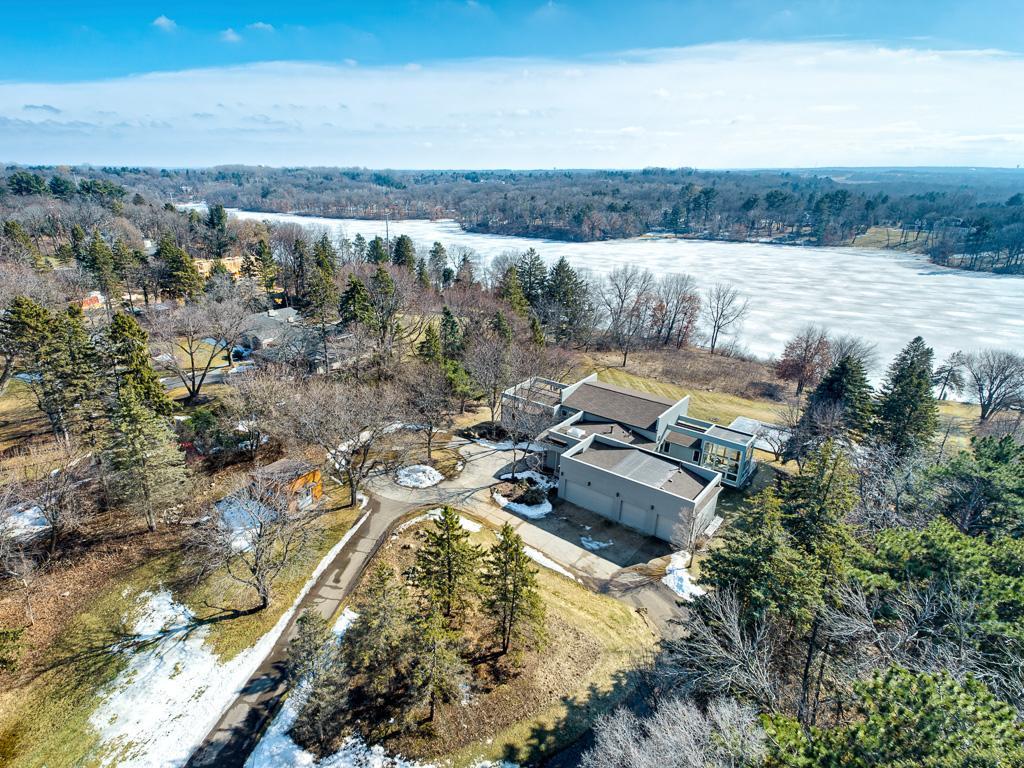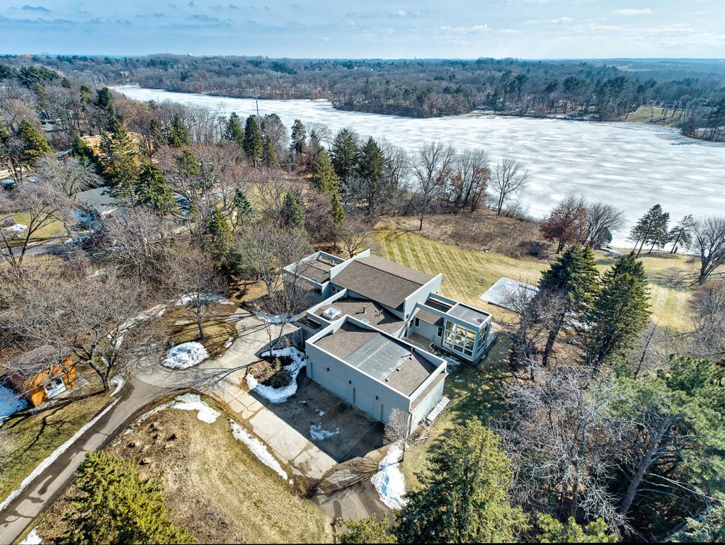 Situated on over five acres along the shores of Sunfish Lake, this extraordinary residence designed by Charles Stinson and built by Streeter is a true architectural retreat. Expansive walls of glass frame breathtaking lake and nature views from every room filling the home with natural light. The thoughtfully designed main level offers effortless one-level living with soaring volume ceilings and inviting gathering spaces creating a home that is both striking and comfortable. The main floor den and sunroom provide quiet spaces to work or unwind. Enjoy the spacious main-level owner’s suite featuring a private maintenance-free deck overlooking the lake, a spa-inspired bath, and a generous walk-in closet. The walkout lower level is equally impressive, featuring floor-to-ceiling windows, a large family room with a wet bar, two additional bedrooms, and two baths—perfect for entertaining or hosting guests. Additional highlights include a heated four-car garage, a spacious shed, a stunning in-ground pool, and extensive exterior updates for peace of mind, including new roofs, gutters, stucco, maintenance-free decks and many new windows. 2158 Charlton Rd offers a rare opportunity to experience private lakeside living with year-round fun and is sure to impress!