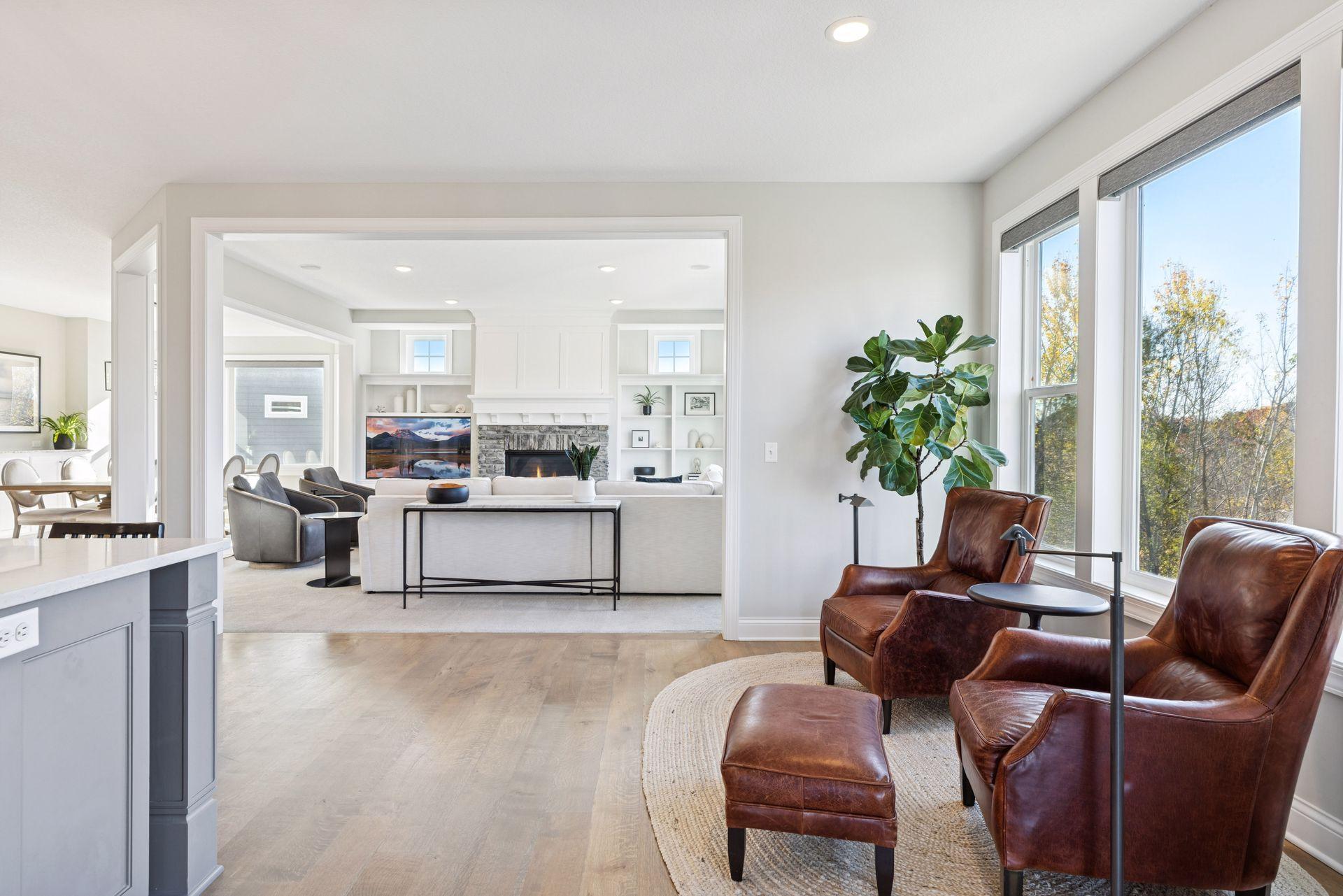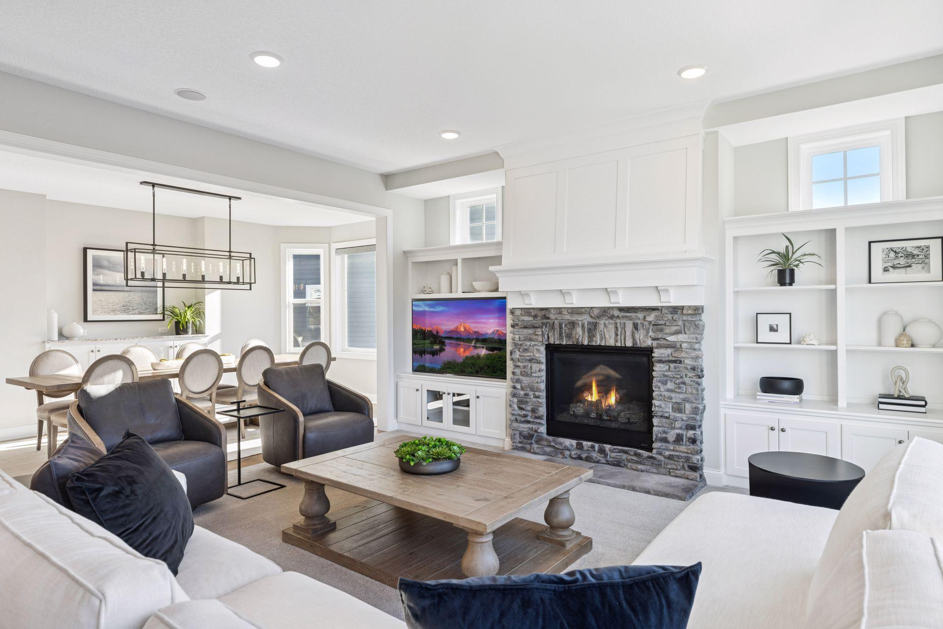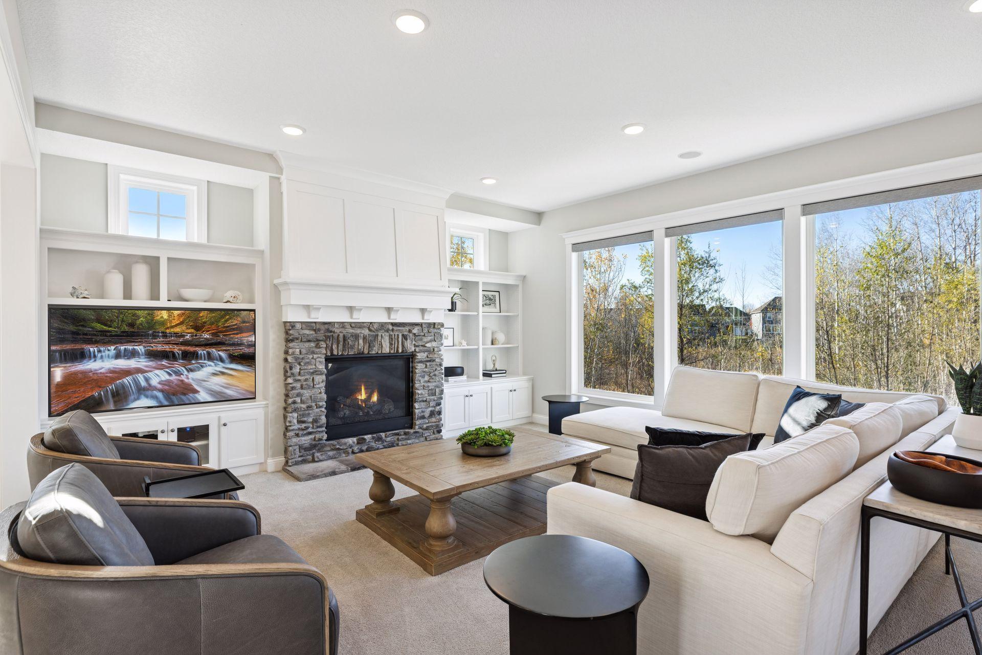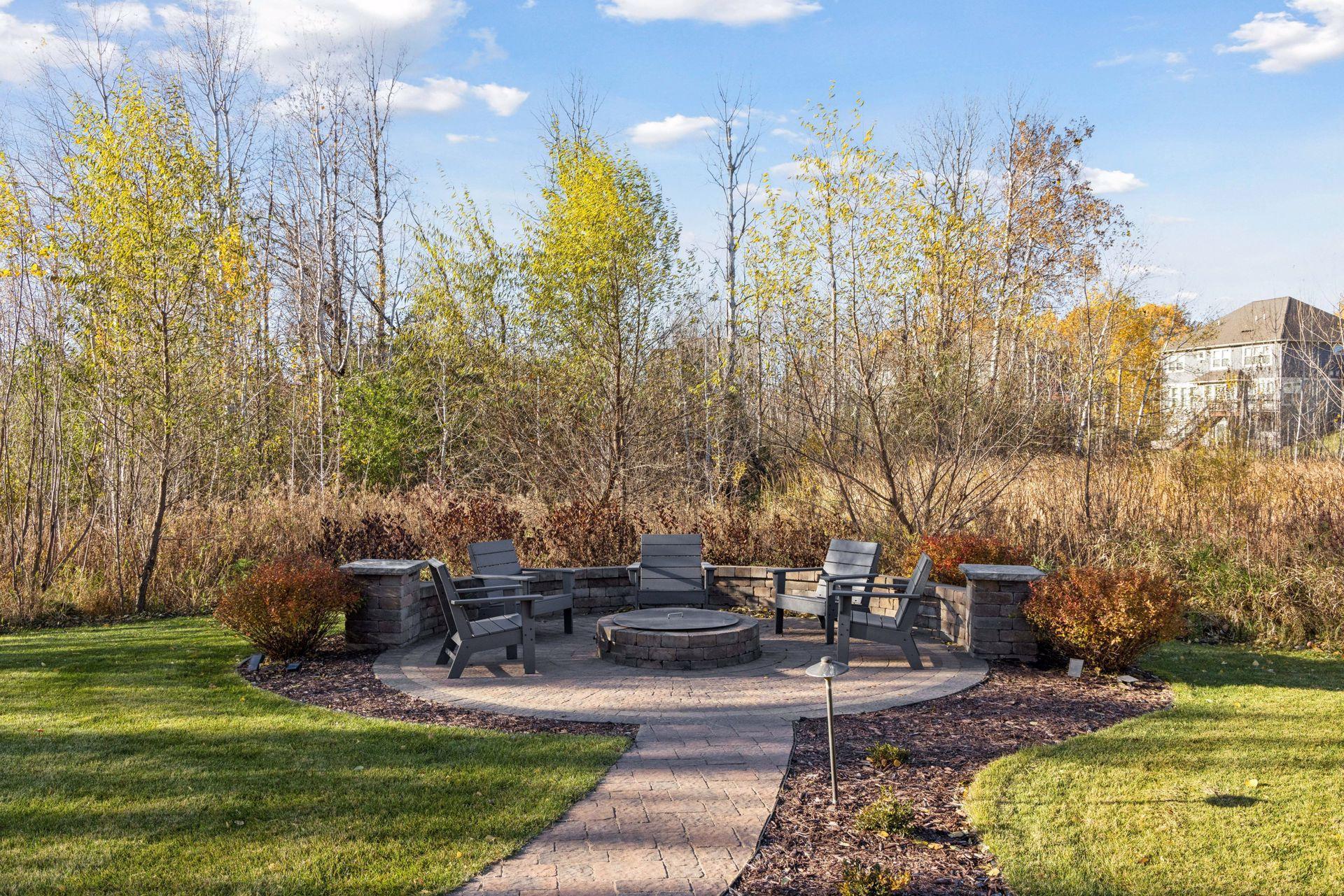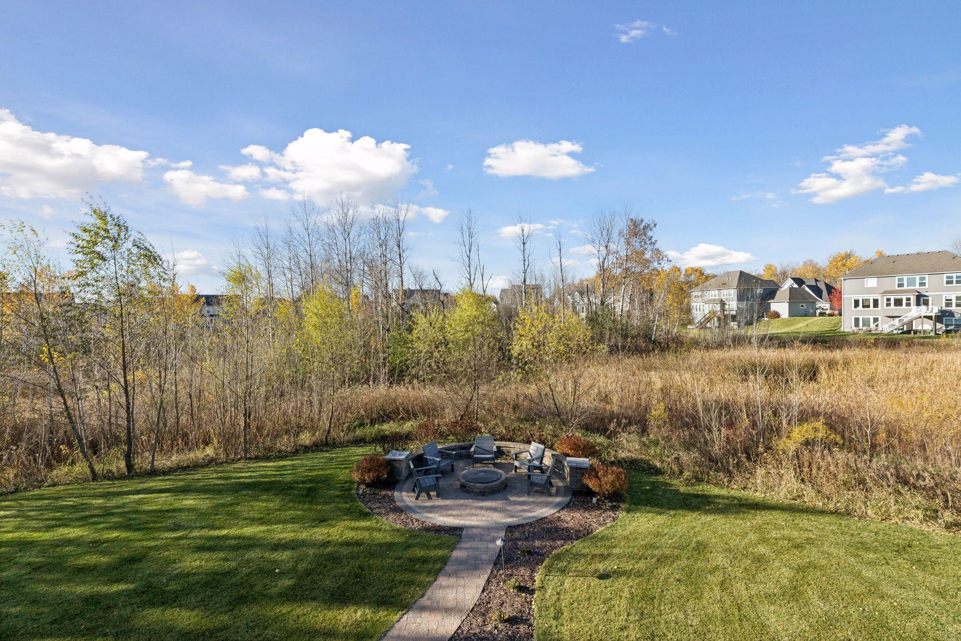 Nestled on a quiet cul-de-sac, this impeccably maintained home sits on a nearly half-acre lot with serene pond and wetland views, mature trees, and a large flat backyard ideal for entertaining and play. The home feels like new, featuring an open-concept floor plan, refined architectural details, fresh interior paint, luxury lighting, and abundant natural light throughout. The main level offers a private office, formal dining room with built-in buffet, and a sun-filled four-season porch overlooking the scenic landscape. The gourmet kitchen is an entertainer’s dream with a large center island, quartz countertops, apron-front sink, double wall ovens, cooktop with vented hood, breakfast bar, and an impressive prep pantry with second dishwasher, sink, refrigeration, and abundant storage. The great room features a gas fireplace, custom built-ins, accented ceilings, and floor-to-ceiling windows with seamless access to the deck and backyard. Upstairs are four spacious bedrooms, each with a private en-suite bath, plus a generous laundry room with built-in cabinetry and workspace. The luxurious owner’s suite includes a private sitting room with gas fireplace, spa-like bath, and expansive walk-in closet. The finished walkout lower level offers a family room with fireplace, pub-style wet bar, game room with patio and firepit access, fifth bedroom, 3/4 bath, and exercise room. Residents enjoy neighborhood amenities including a pool, clubhouse, and sports courts, along with access to tennis courts, athletic fields, and a scenic lake. This move-in-ready home blends timeless design, thoughtful updates, and peaceful surroundings—perfect for everyday living and entertaining.