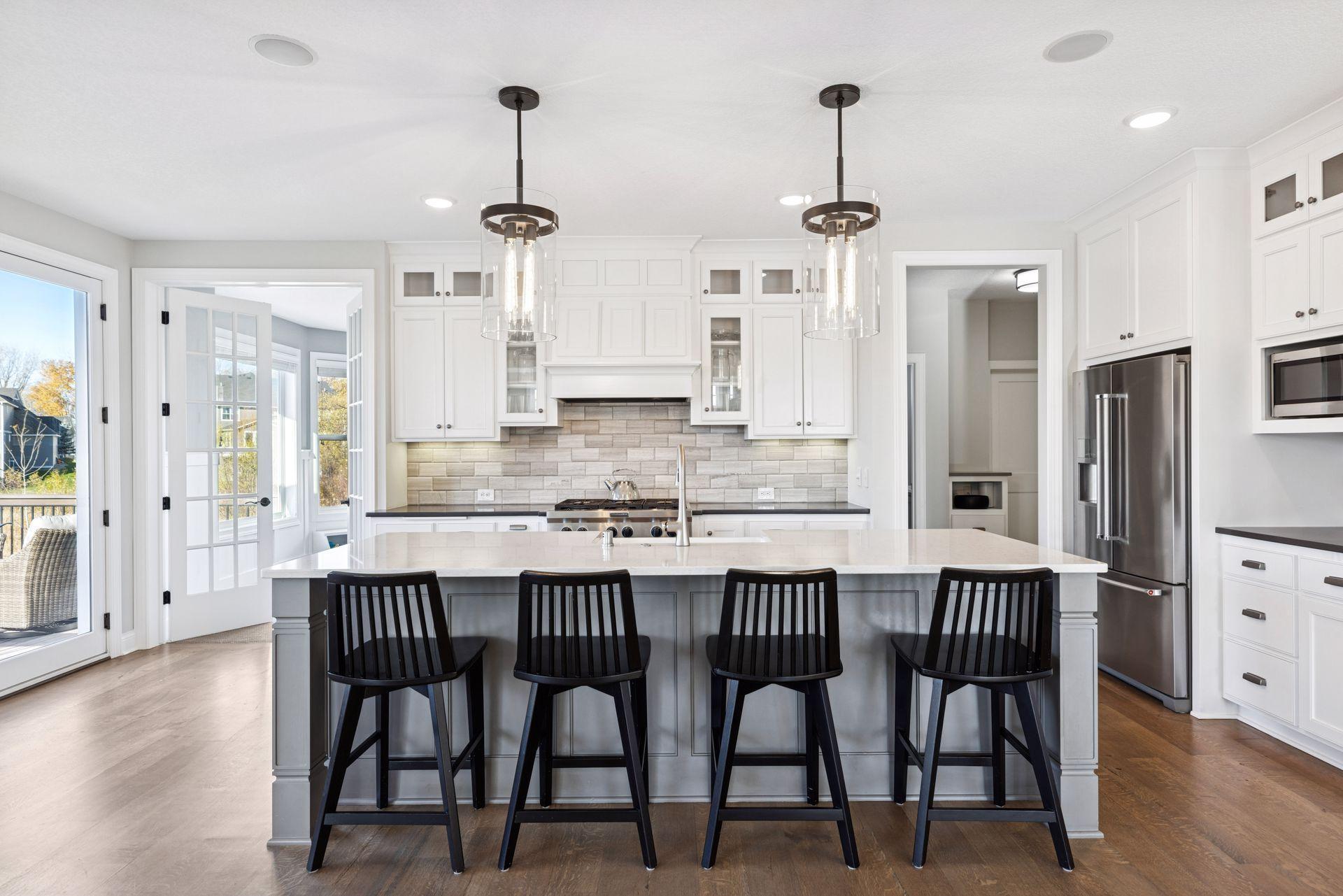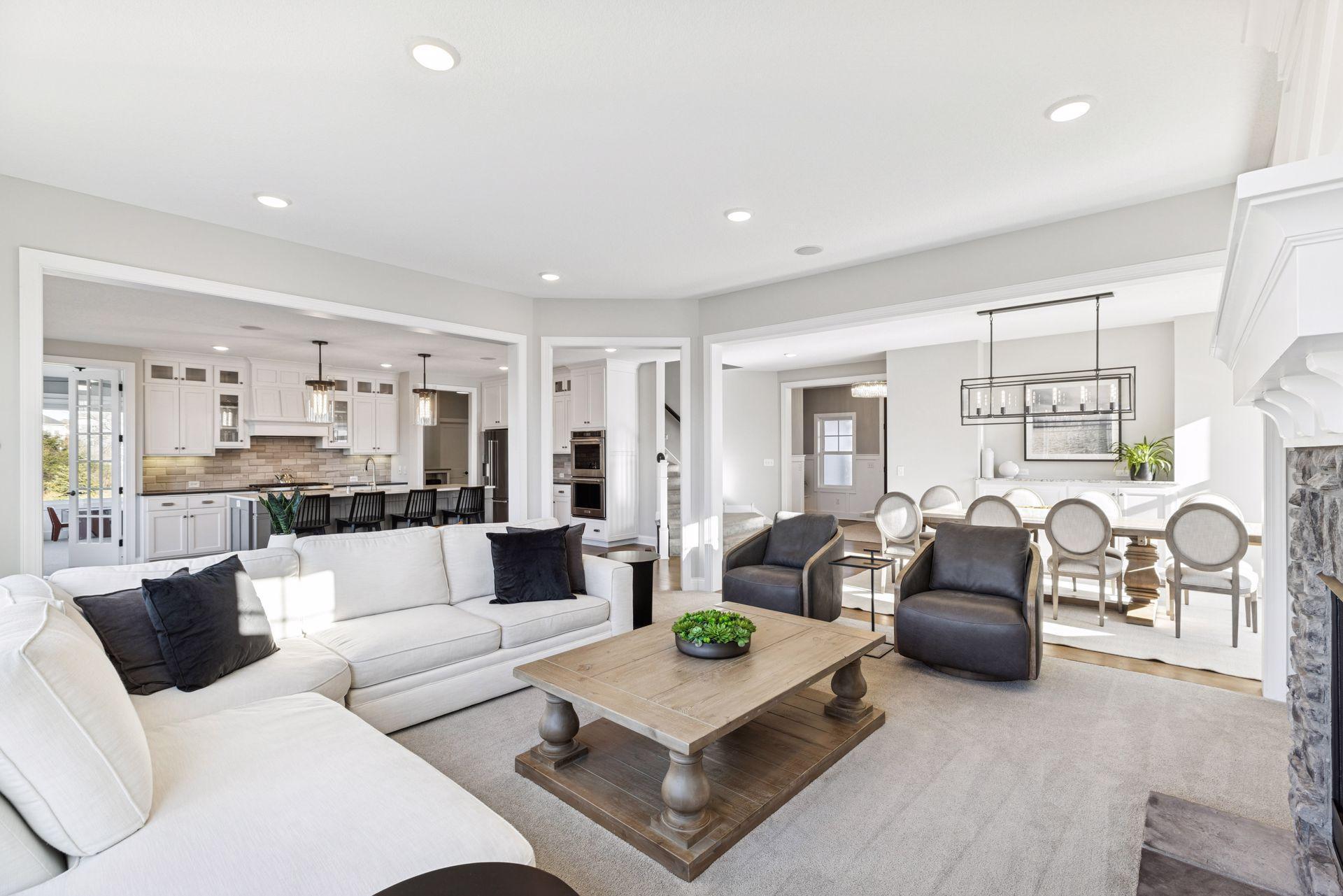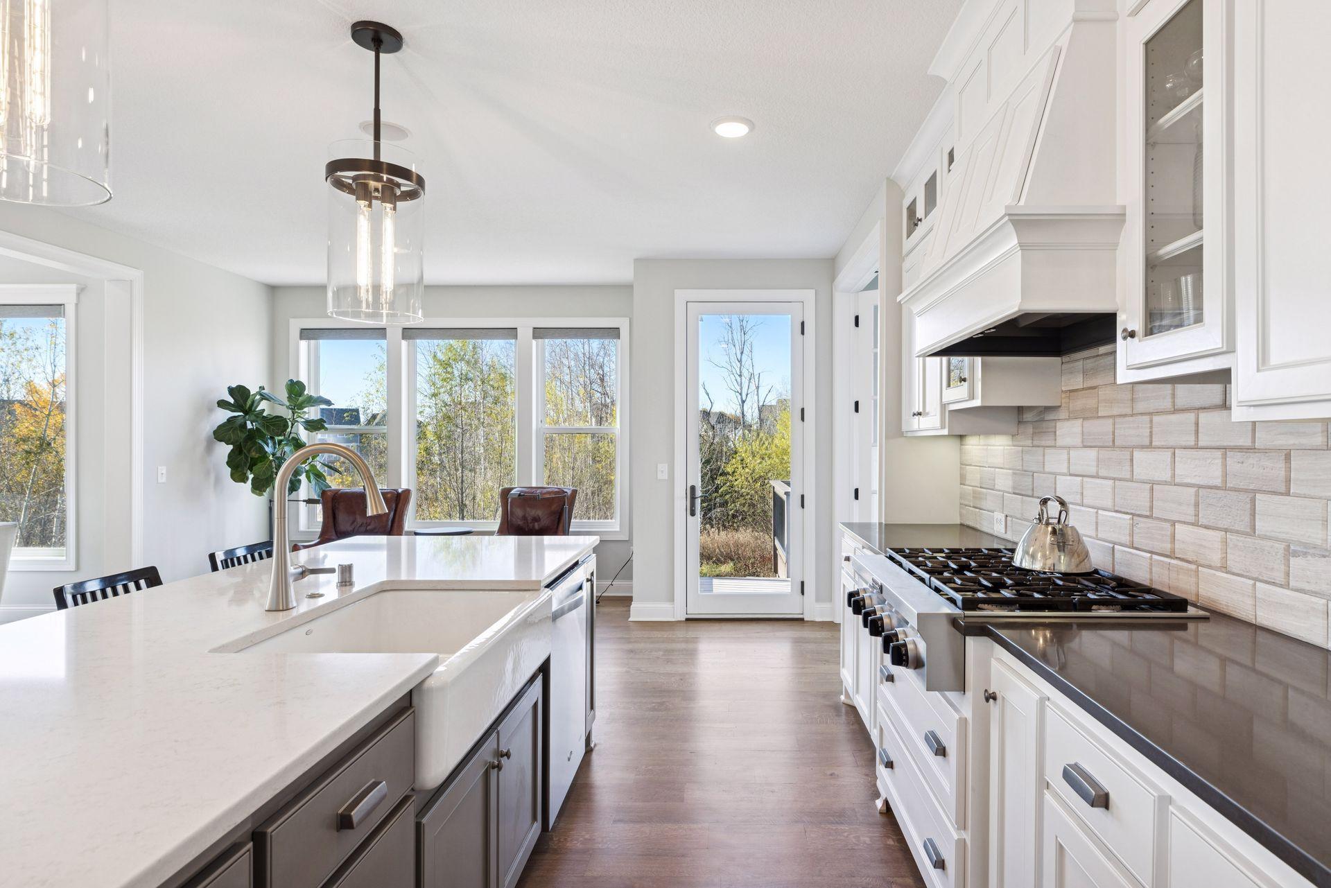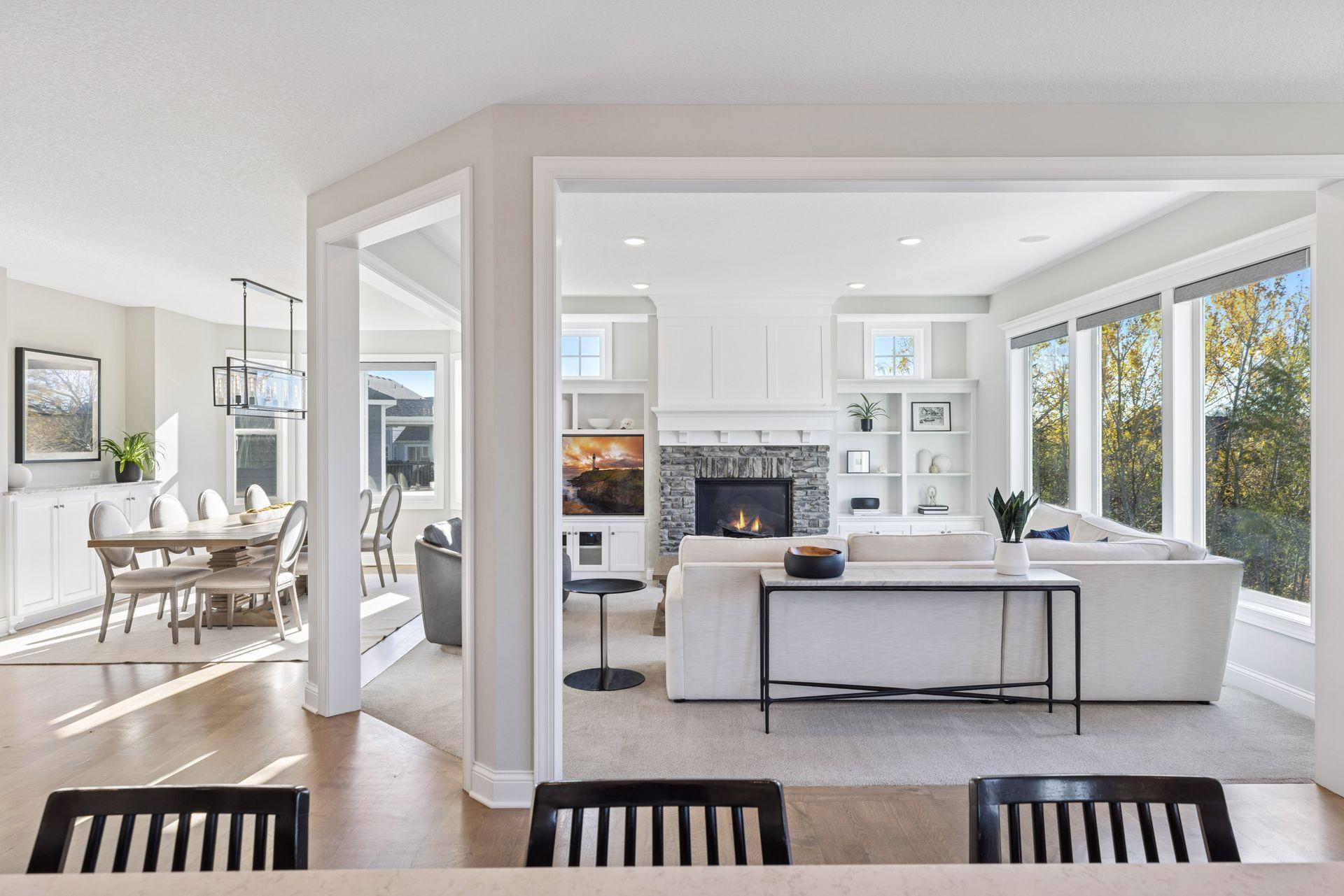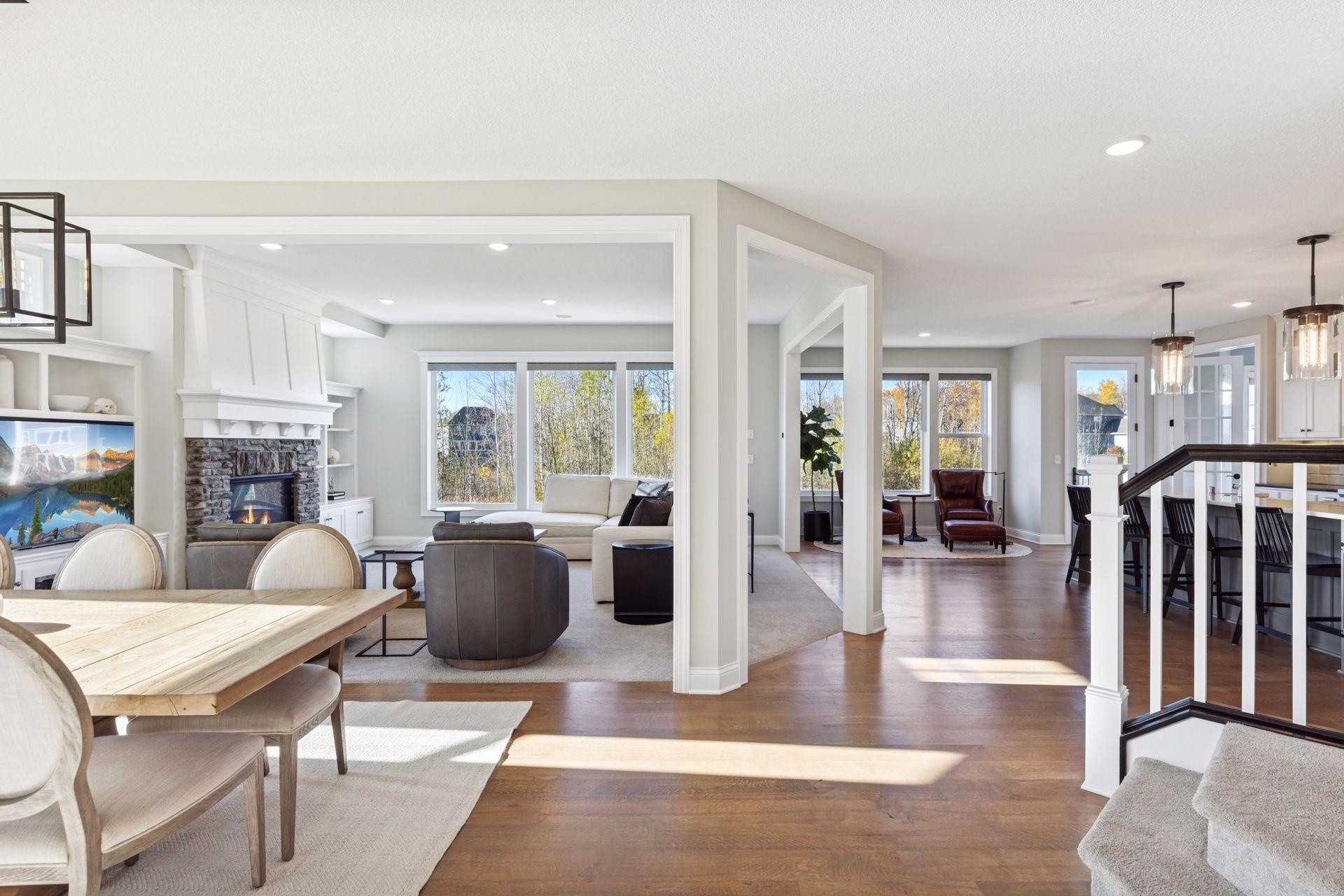 Nestled on a quiet cul-de-sac, this impeccably maintained home sits on a nearly half-acre lot with serene pond and wetland views, mature trees, and a large flat backyard ideal for entertaining and play. The home feels like new, featuring an open-concept floor plan, refined architectural details, fresh interior paint, luxury lighting, and abundant natural light throughout. The main level offers a private office, formal dining room with built-in buffet, and a sun-filled four-season porch overlooking the scenic landscape. The gourmet kitchen is an entertainer’s dream with a large center island, quartz countertops, apron-front sink, double wall ovens, cooktop with vented hood, breakfast bar, and an impressive prep pantry with second dishwasher, sink, refrigeration, and abundant storage. The great room features a gas fireplace, custom built-ins, accented ceilings, and floor-to-ceiling windows with seamless access to the deck and backyard. Upstairs are four spacious bedrooms, each with a private en-suite bath, plus a generous laundry room with built-in cabinetry and workspace. The luxurious owner’s suite includes a private sitting room with gas fireplace, spa-like bath, and expansive walk-in closet. The finished walkout lower level offers a family room with fireplace, pub-style wet bar, game room with patio and firepit access, fifth bedroom, 3/4 bath, and exercise room. Residents enjoy neighborhood amenities including a pool, clubhouse, and sports courts, along with access to tennis courts, athletic fields, and a scenic lake. This move-in-ready home blends timeless design, thoughtful updates, and peaceful surroundings—perfect for everyday living and entertaining.