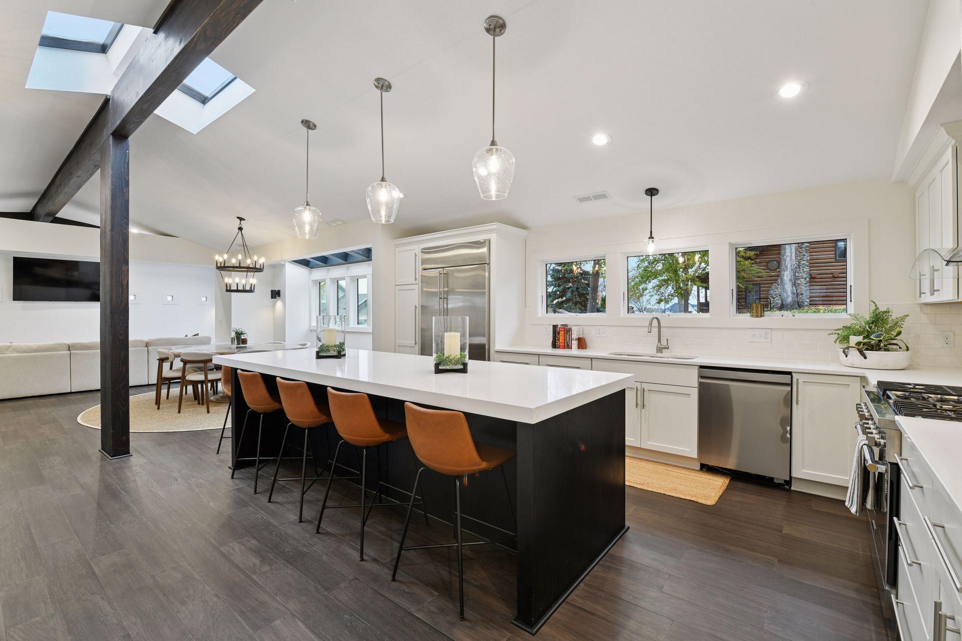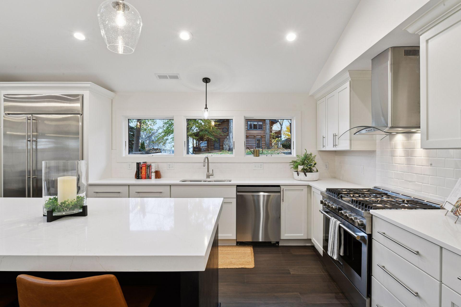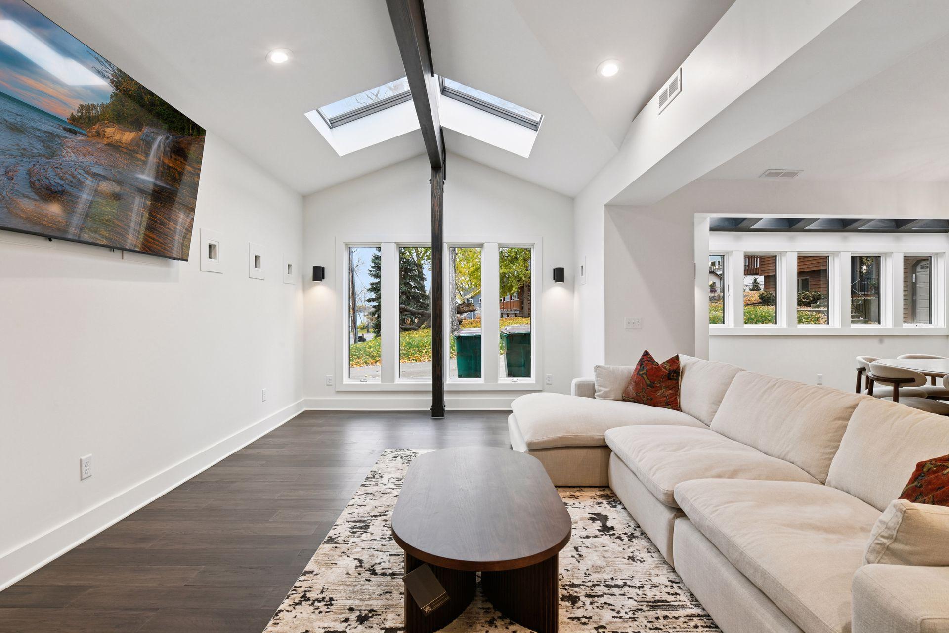 Truly stunning, One-of-a-kind Frank Lloyd Wright inspired Mid-Century Modern 2-story home with seasonal lake views to Jennings Bay over Lake Minnetonka directly across the street. Lake Life Abound in every direction! Gorgeously renovated/finished home offers 4BDs/4BAs/3GRG+/3138 TFSF nestled on a corner lot amidst the treed backyard. 2 owner's suites (1 on the main level & 1 upstairs overlooking the lake)...one on each level. Unique American Redwood exterior with stone facade and fireplace accents over pours with character and appeal. Professional landscaping. Designer features and fixtures throughout the interior make this contemporary-style home the PERFECT PLACE to call your NEXT HOME. Luxury Wood Plank Flooring throughout much of both levels gleams with perfection and class,. An ultra-convenient oversized walk-in food pantry with additional 2nd refrigerator, 2nd sink and endless upper+lower cabinetry (storage GALORE:) makes entertaining and daily life here a true delight. Dazzling wine bar area with both upper+lower cabinets and a subway tile backsplash. Soaring Vaulted Ceilings span much of the entire main and upper levels accented by Mountain-Style Beams. Skylights and an overabundance of windows provides superb natural lighting nearly everywhere in the home. Tuck in beside the gas fireplace on the main level or the 6ft long horizontal fireplace upstairs in the upper level living room on these upcoming cold winter days. Straight out of a Martha Stewart catalog, the gourmet-style kitchen BEAMS with style and class offering a massive 10ft center island, undermount split stainless steel sink, high-end stainless steel appliances, endless cabinet/storage space and stylish light fixtures abound. 2 furnaces. 2 laundry rooms (one on each level). Brand new roof. Recently stained wood exterior. Large "Flex Room" off the garage entrance can double as as study, home office or kids play/toy room. Once upstairs the primary Owner's Suite overlooking Lake Minnetonka is remarkably BREATHTAKING spilling over with all the dazzle you can handle showcasing skylights, floor to ceiling windows, beams, wood plank floors, huge walk-in closet and 5-star caliber bathroom suite complete w/dual vanity sinks and separate tub + shower areas. Heading down the hallways there's 2 additional bedrooms upstairs plus another full bathroom and huge family room with fireplace, wet-bar area plus connections to a 20+foot upper roofline overhang for future outdoor patio area up top. Massive 3-stall garage is designed so that the separated 1 stall can store your fishing boat/cayaks/canoes/boat gear OR get modifided to a "SUPER MUD-RECREATION ROOM" to hold your kids sports gear/supplies, bikes, strollers, lawn equipment....the options are ENDLESS! Checkout the MOUND DOCK/BOAT PROGRAM by calling into the city and your future boat slip/dock may one day be within walking distance from your front door! Just too many highlights to list out here so SEE IT FOR YOURSELF TODAY!!