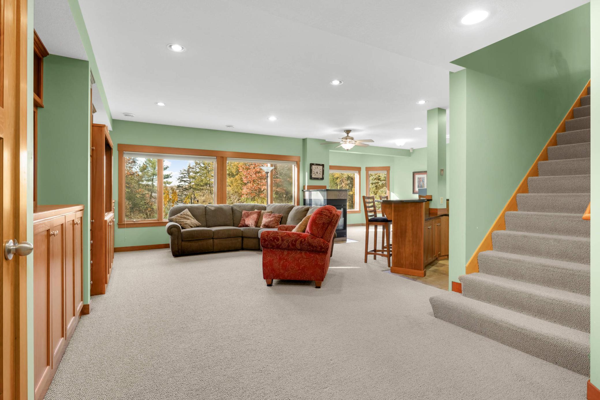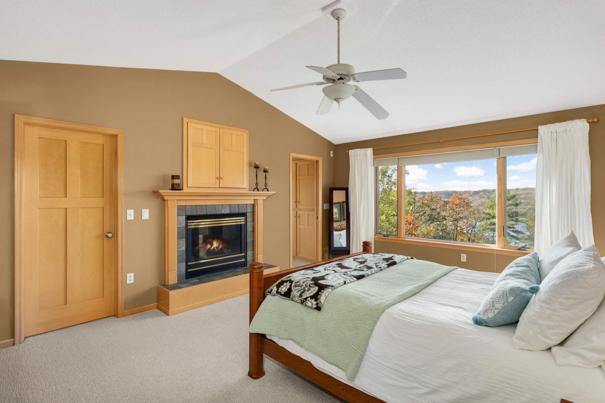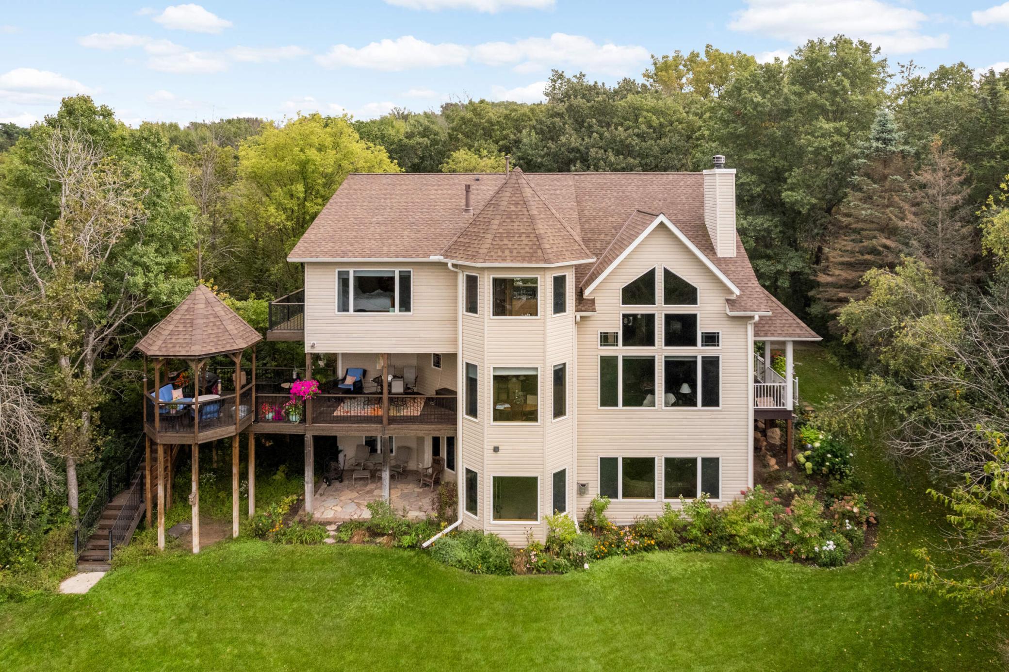 Stunning St. Croix Riverfront estate on 3.72 acres accessed by a private road. This home has been architecturally designed in a modified craftsman style to take advantage of a very private lot and picturesque west facing sunset views. This classically designed and well maintained 5-bedroom, 4-bath home boasts 4424 sq. ft. of family friendly living space, including a finished lower level and 3-car, enlarged attached garage. The walk-out lower level has 10-foot ceilings, a gas fireplace and expansive windows. It was designed with direct access to outdoor activities and privacy as needed for family members or visitors with a wet bar and entertaining space that could easily be turned into a mother-in-law suite or multi-family living area. This home blends the outdoors with indoors with four deck and patio areas overlooking an easily maintained lawn and hardwood forest. A private lift leads from the home down to 249 feet of private frontage on the St Croix River and your private 35’ dock. The dock is easily accessible through all seasonal water levels and has historically docked a 6-ton boat and multiple other watercraft. Enjoy breathtaking river views from multiple rooms, three cozy fireplaces, and an open, light-filled floor plan. Open concept kitchen with center island, ample counter space and newer appliances opens to a 2-story great room with a stone wood burning fireplace. Second floor master has a gas fireplace, soaring views of the river and its own private deck. The versatile loft area is perfect for an office, game room, or media room. This house is move-in ready with central AC, propane heat, and a compliant septic system. Experience privacy, luxury, and riverfront living just minutes from quaint downtown Prescott, River Falls and Hudson Wisconsin. Nearby Attractions 5 minutes from 2 golf courses. 10 Minutes to Troy Burne, a Premier Championship Golf Course. 15 minutes to Afton Alps, a Vail Ski and recreation area. 25 minute easy commute to St Paul. 38 minutes to MSP international airport. Directly across the river from the excellent boat landing at St. Croix Bluffs Regional Park. Two miles downriver from Kinnickinnic State Park, a premier trout stream, world-class trout fishery, and kayaking river. 15 minutes from University of Wisconsin - River Falls.