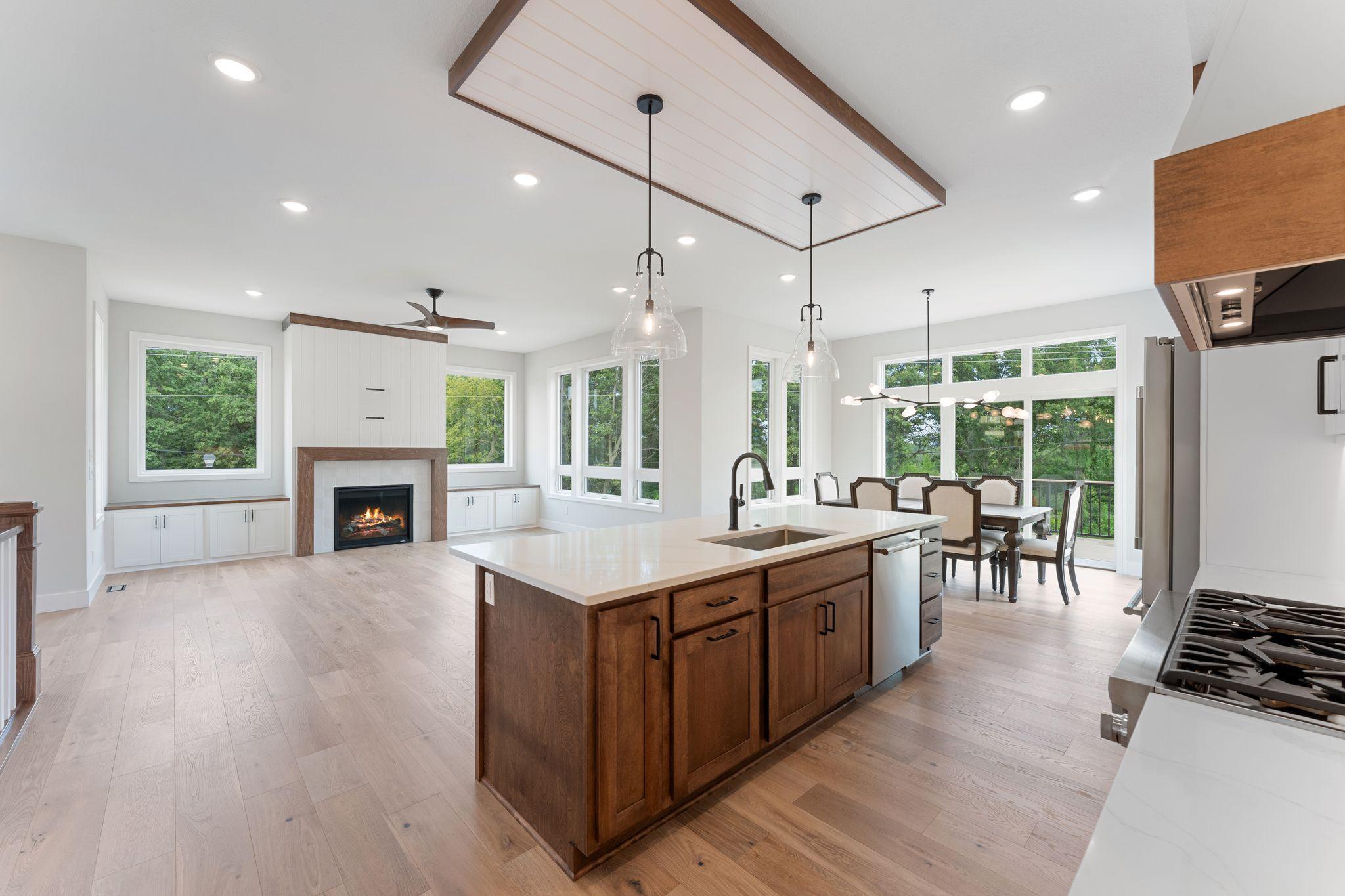 Stunning Vancouver Model home across the street from a trail head to Lebanon Park. 10' ceilings on main in common areas. 9' in bedrooms. Thermador appliances. Large designer island plus a fantastic walk in pantry with transom window that includes a prep sink, extra storage cabinetry, counter top work space & a microwave. Tons of large windows with views toward park reserve. Fabulous main level Primary suite with a soaking tub, separate tiled walk in shower & toilet room with a huge walk in closet connecting to the laundry room. A second bedroom/office with a 3/4 bath just steps away is an ideal guest room or study with views over front area. Walkout lower level offers a wet bar, family room including a cozy fireplace, exercise room, gaming/playroom/kids computer room. Two additional bedrooms with a Jack & Jill bathroom plus walk in closets. Insulated oversized garage with insulated doors, floor drain & heater rough in. Double Trex deck all situated on a large landscaped corner lot.