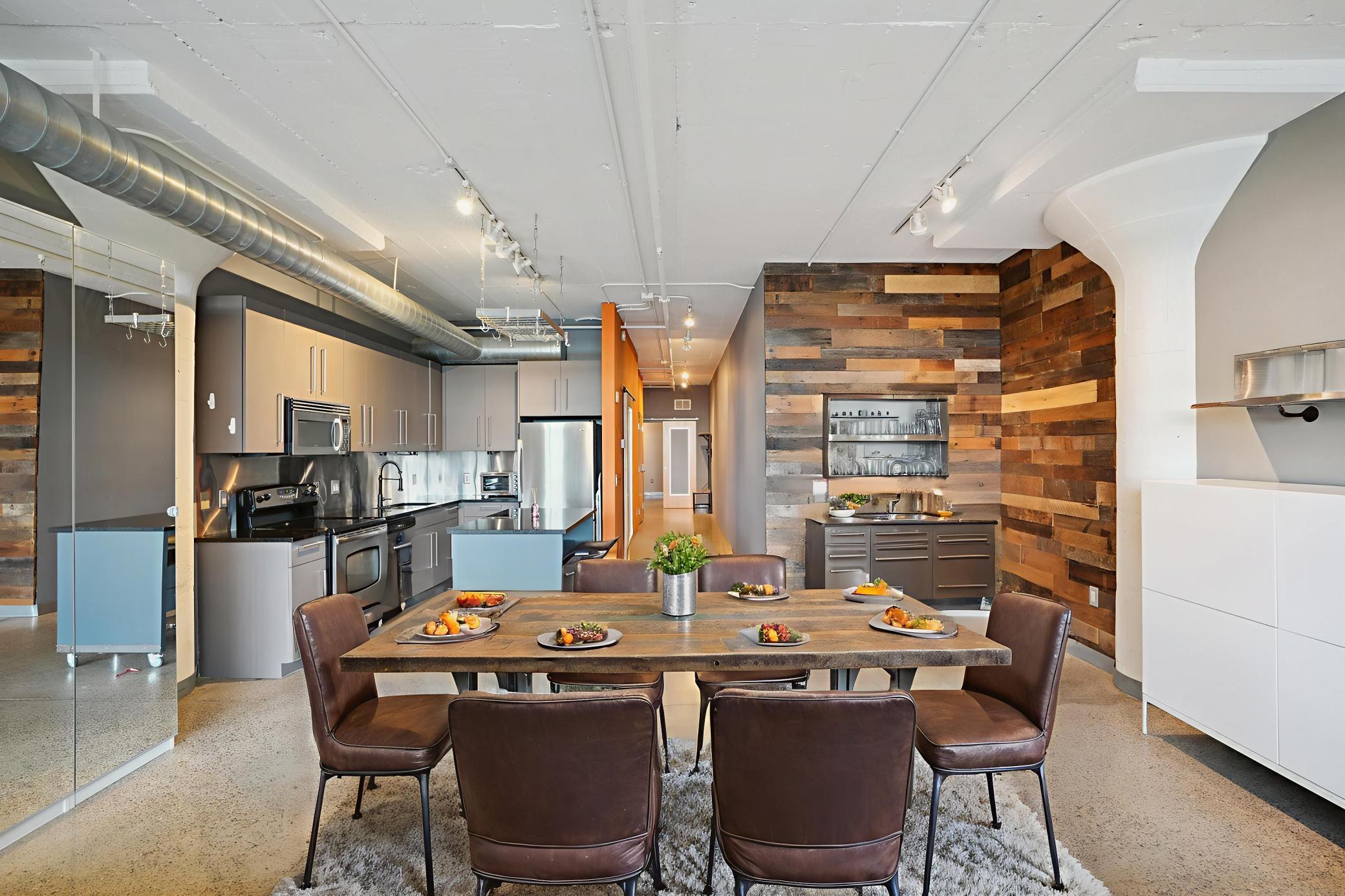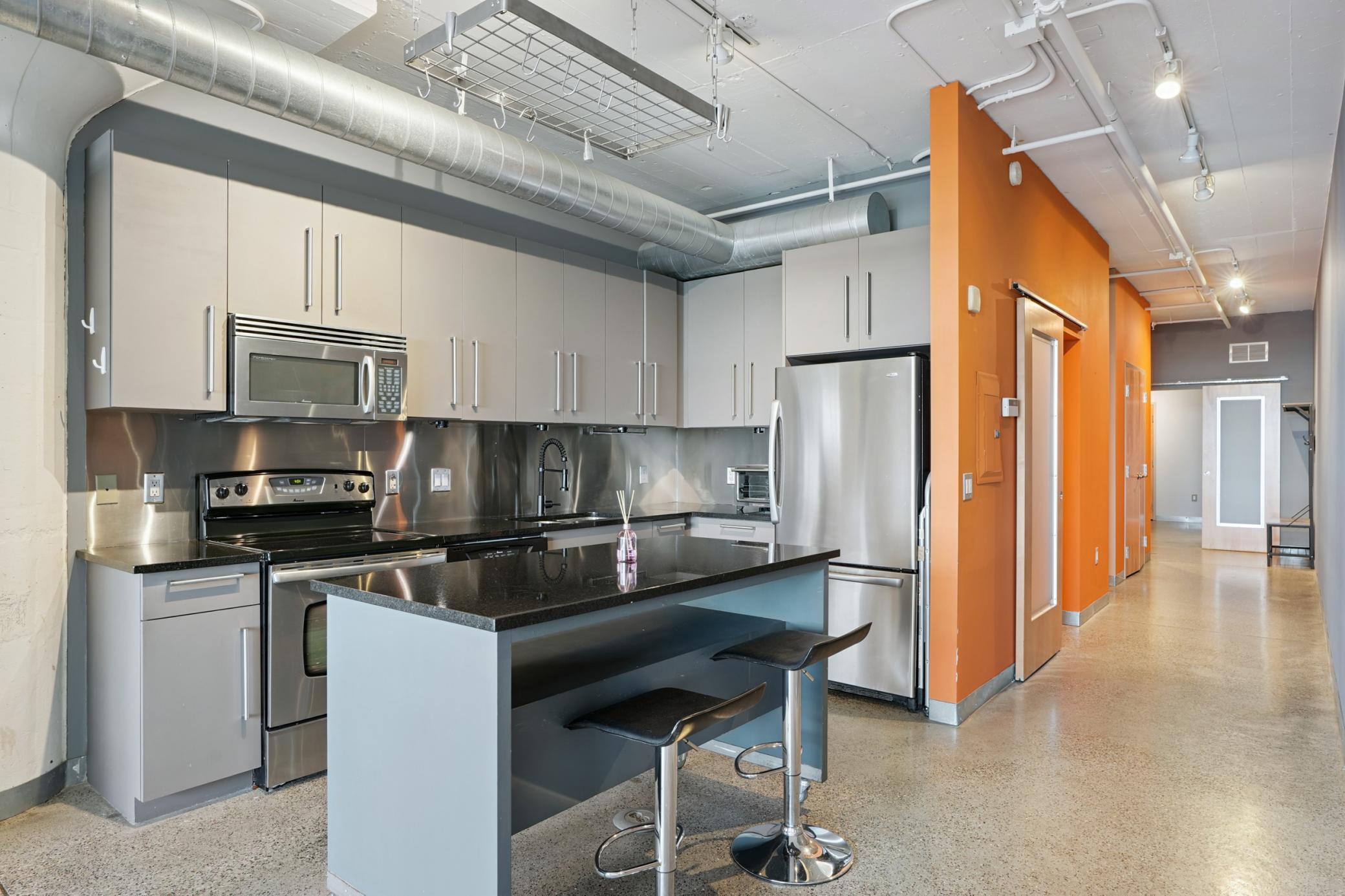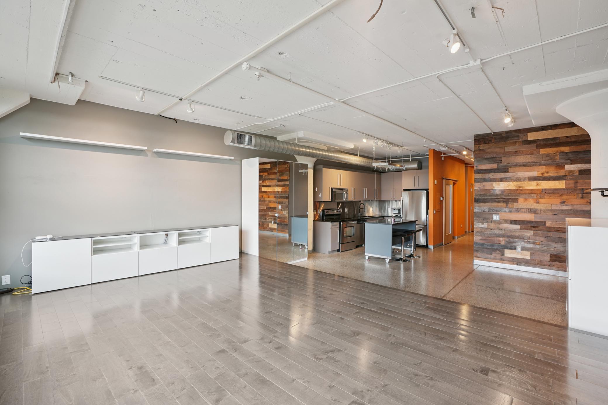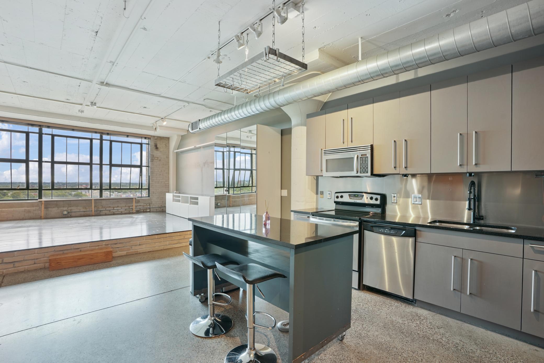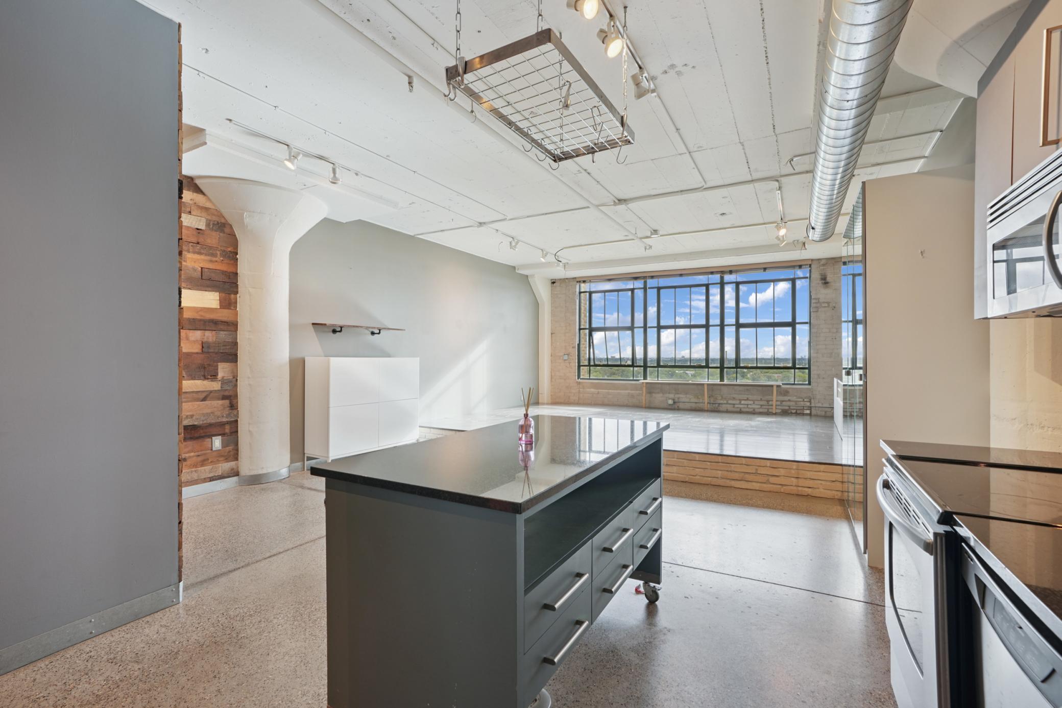 Experience the best of Minneapolis living in this spacious 2-bedroom, 1-bath condo at Chicago Lofts. Spanning 1,290 sq. ft., this flat combines thoughtful design in an expansive space. Highlights include reclaimed wood accent walls, a spacious kitchen, and a unique platform living room with floor-to-ceiling warehouse windows offering eastward city views. The open layout invites entertaining and relaxation, while the oversized windows flood the home with natural light throughout the day. Enjoy unmatched amenities: direct access to the Midtown Global Market’s dining and shopping, a fitness center, private community theatre, beautiful rooftop community spaces, and easy entry to the Midtown Greenway. Pet-friendly and move-in ready, this condo is perfect for anyone seeking a vibrant lifestyle with unbeatable convenience in the historic old Sears building, now Midtown Global Market.