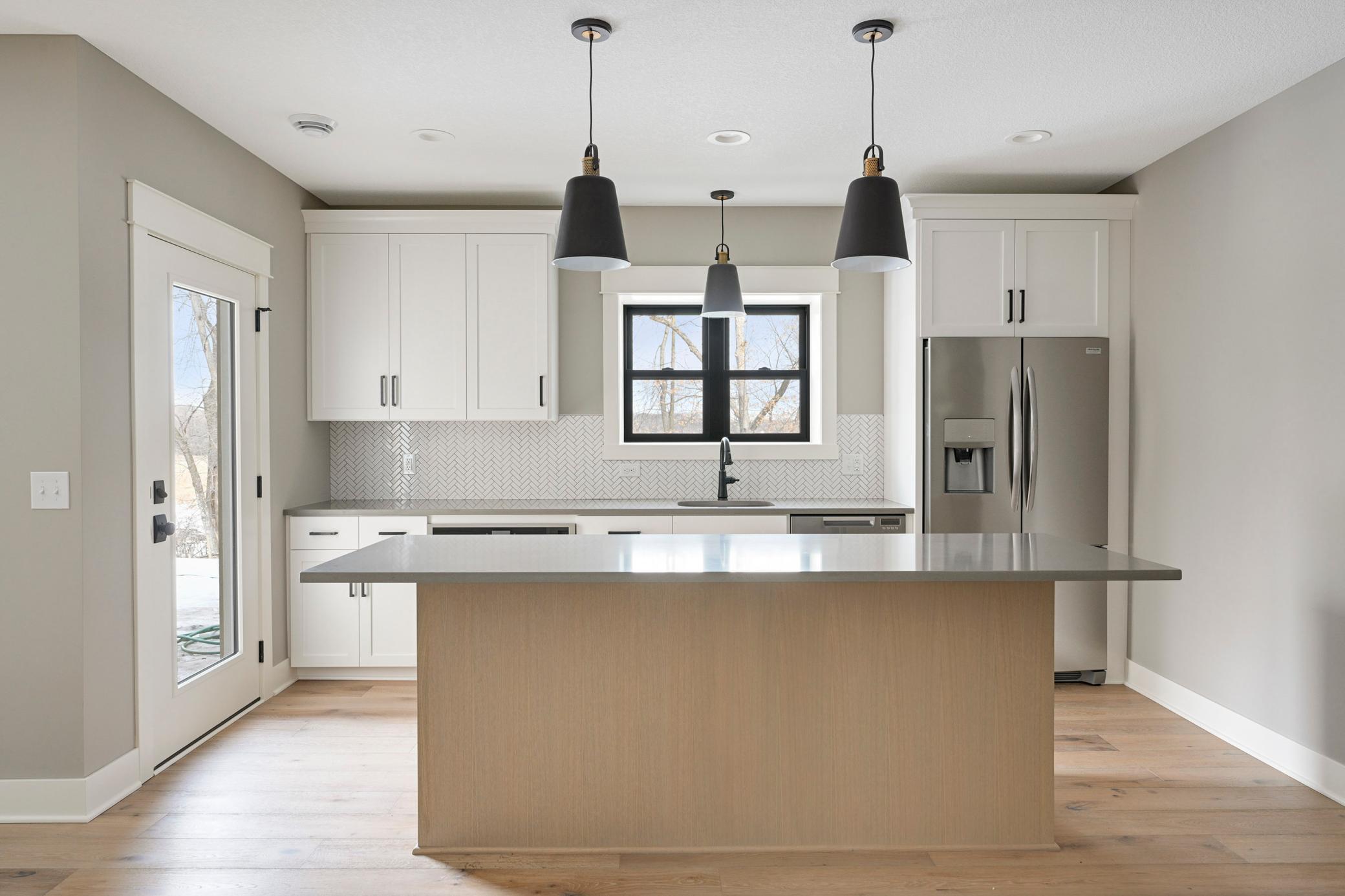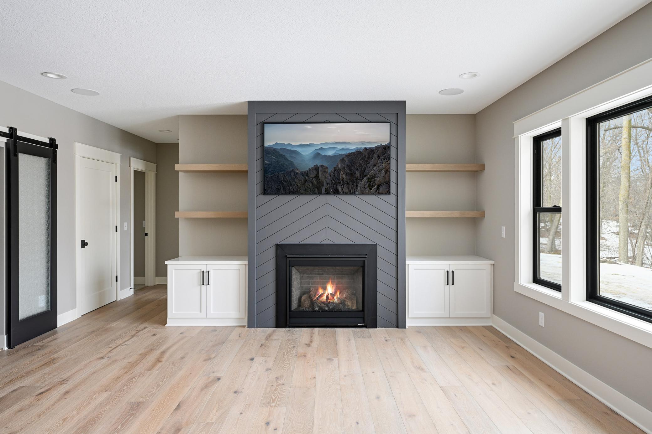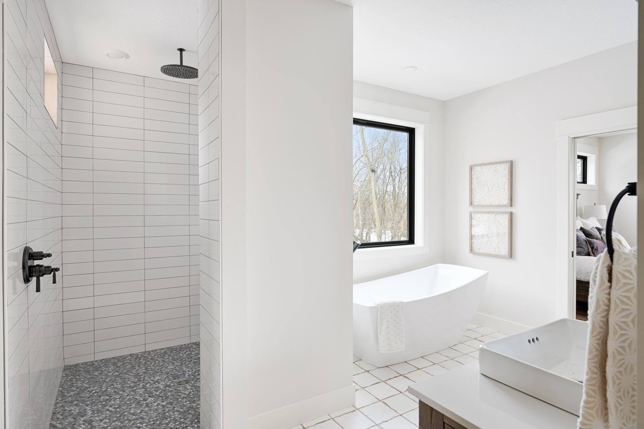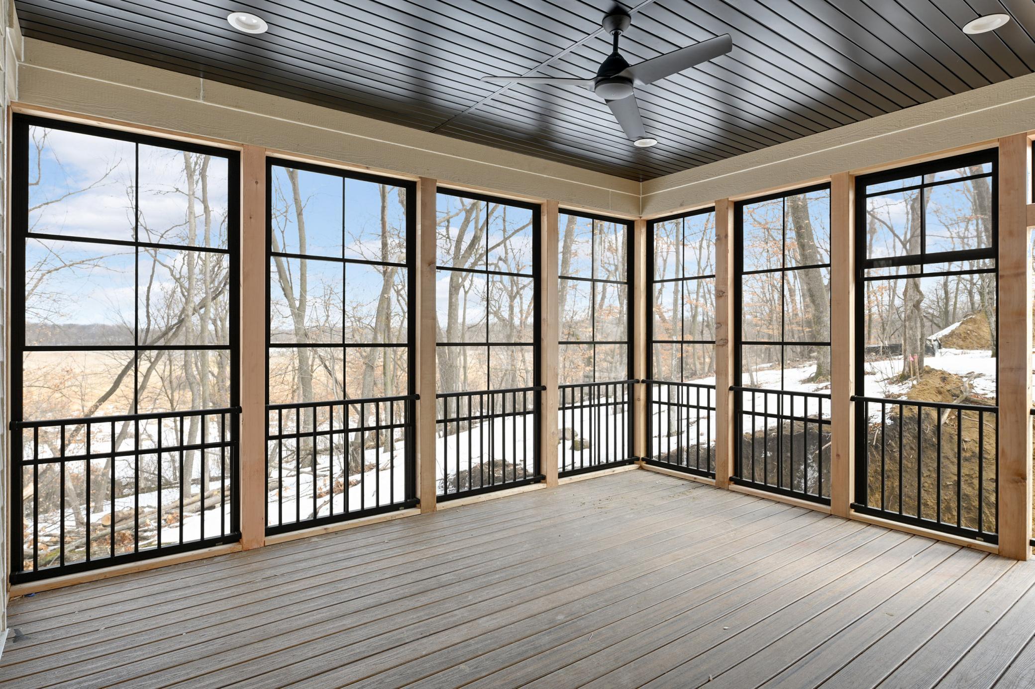 craftsmanship with modern luxury. Spanning over 4,300 finished square feet, the open layout showcases a gourmet kitchen with custom cabinetry, a 10-foot center island, professional-series appliances, and an impressive walk-through pantry with abundant storage. The great room features a cathedral-vaulted ceiling with custom beams and a floor-to-ceiling brick fireplace. Also features a screened-in porch perfect for year-round enjoyment. The private primary suite offers a spa-like retreat with a walk-in shower, free-standing soaking tub, oversized closet, and convenient access to the main-level laundry room. The lower level is designed for entertaining—complete with a spacious family room and shiplap-surround
