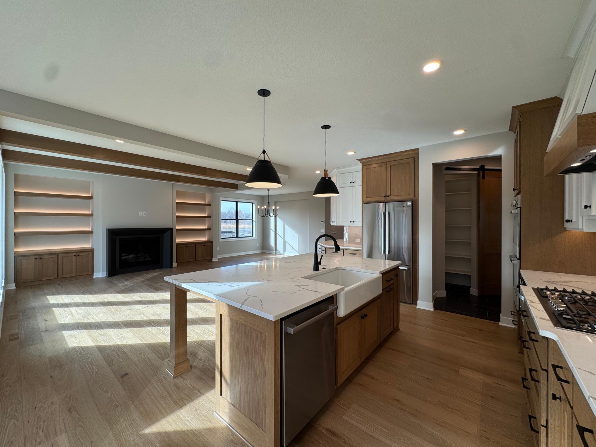 This stunning SUPERIOR SPORT by HANSON BUILDERS is complete and ready for a quick close! Designed with modern living in mind, the open concept main level features a custom gourmet kitchen with abundant cabinetry, a large center island, and a walk-in pantry—perfect for both daily life and entertaining. Enjoy dual dining areas and a cozy sunroom, all surrounded by expansive windows that fill the space with natural light. The Great Room showcases beautiful wood ceiling beams, built-in cabinetry, and warm wood shelving for an inviting yet refined feel. Upstairs, you’ll find four spacious bedrooms, a bonus room, and a convenient laundry area. The private owner’s suite offers a true retreat with a spa-inspired bath and elegant finishes. The fully finished lower level is designed for fun and functionality—featuring a fifth bedroom, wet bar, game area, and an indoor Sport Center for year-round activity. This home is wrapped in James Hardie cement board siding with Marvin windows for lasting quality and curb appeal. Located in the highly sought-after Wayzata School District, the Weston Woods community offers exceptional amenities including a pool, clubhouse, pickleball court, and playground. Limited opportunities remain—only a few homes and lots left in Weston Woods!