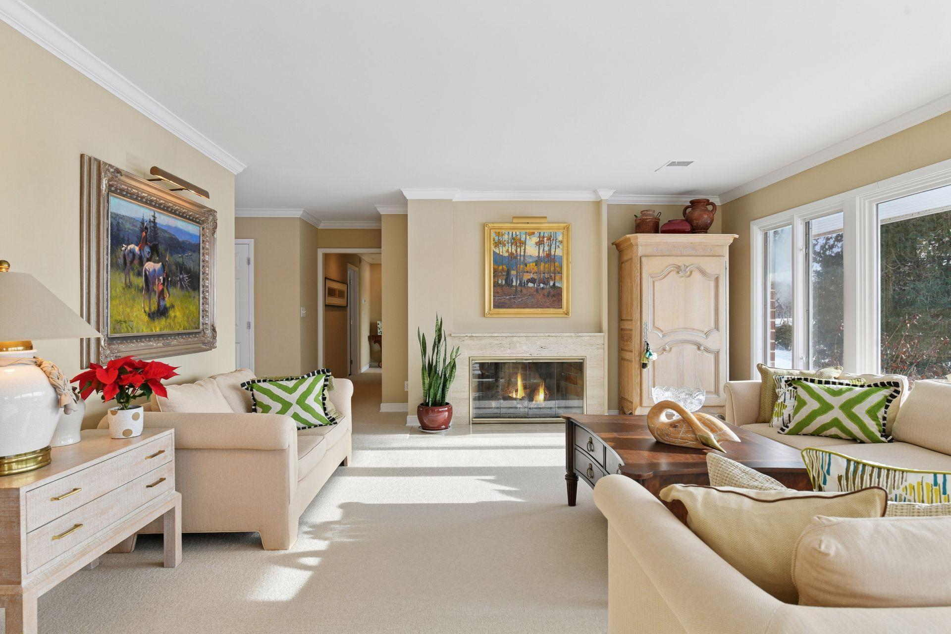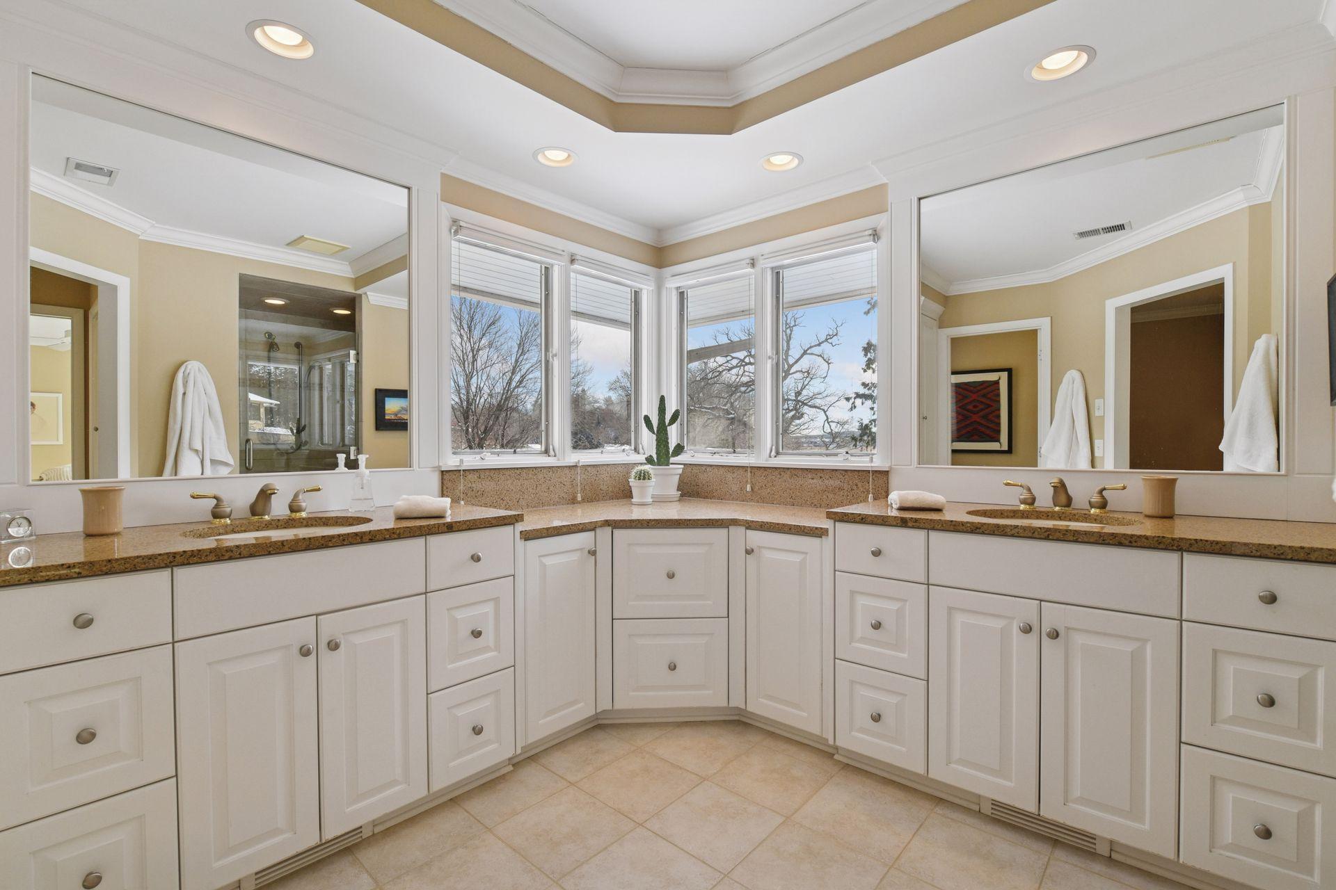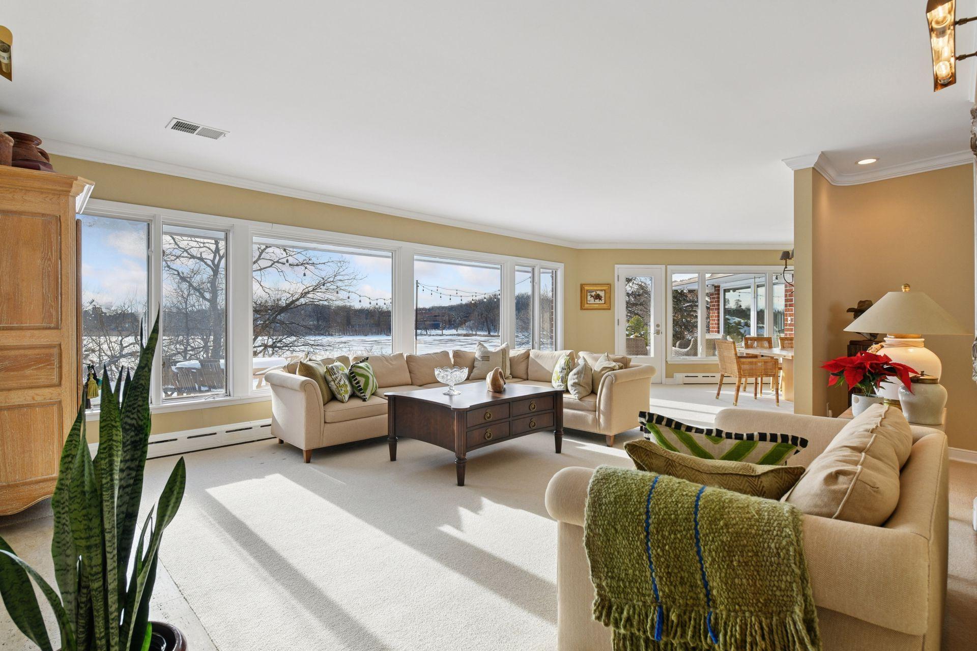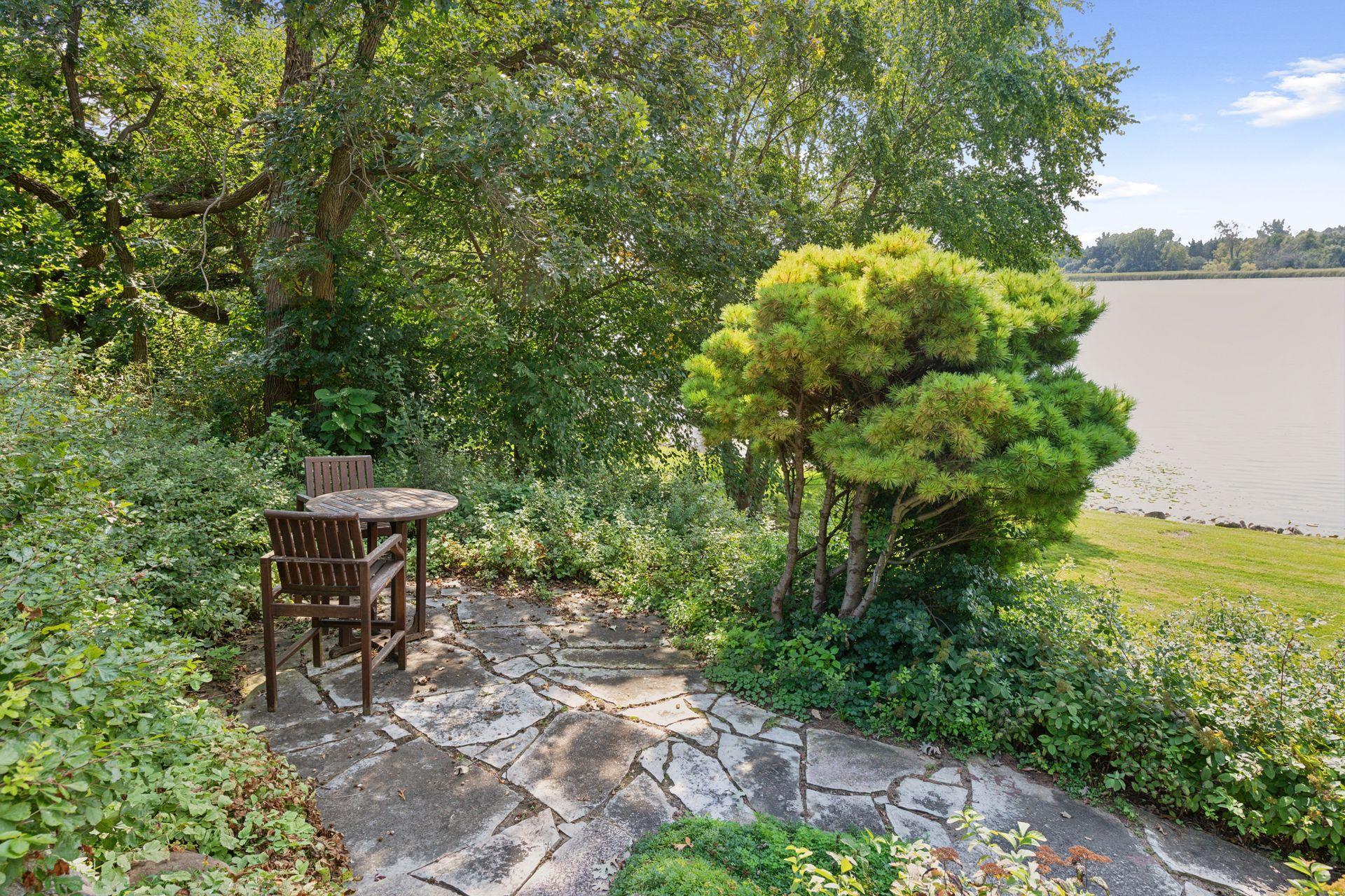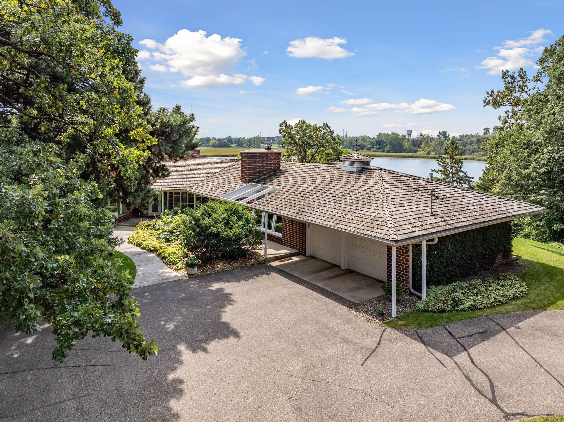 Live your dream of true lakeside living where boating, fishing, and waterskiing align seamlessly with the convenience of city living! This legacy mid-century home sits on a private 1.4-acre lot at the end of a quiet street, offering 156 feet of premier lakeshore, a permanent dock, and deeded access. The main floor plan is perfect for effortless entertainment. Walls of windows flood the home with light and stunning lake views. A gas fireplace anchors the formal living room, which flows into the dining room featuring a built-in buffet. The open kitchen and family room invite a gathering place with a built-in hutch, hardwood floors, granite countertops, double ovens, and a wine refrigerator. A unique office/reading room, with a curved glass window and its own fireplace, offers a warm, inspiring place to work and read. The lake-facing primary suite features a remodeled bath with his and hers comfort height vanities, a walk-in tiled shower, and an extra-large walk-in closet. The main level also includes generous junior bedroom suite with a full bath The lower walkout level provides a spacious family room with a wood-burning fireplace, a third bedroom, and a 3/4 bathroom. Outside, enjoy the lake from the deck or the flagstone patio, surrounded by landscaping maximized for lake views. Now is the time to live your dream!