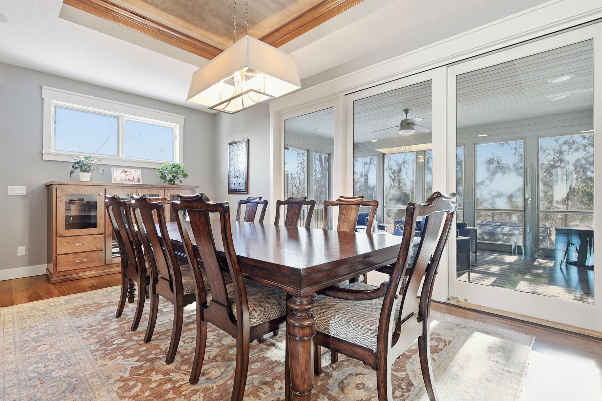 Newer custom-built 1.5-story home located in a highly sought after location, just one mile from downtown Wayzata and Lake Minnetonka. Designed with timeless elegance, this home offers an inviting open floor plan highlighted by rich hardwood floors and fine finishes throughout. The gourmet kitchen features granite countertops, stylish cabinetry, Thermador appliances, and a convenient butler’s pantry with sink. Adjacent family and dining rooms showcase coffered ceilings, a stone gas fireplace, and expansive windows overlooking the tranquil backyard. The dining room areas opens to a large, maintenance-free three-season porch with a gas fireplace—perfect for year-round enjoyment. The spacious main-floor primary suite provides a spa-like retreat with heated floors, dual vanities, a soaking tub, and a large walk-in shower with remote controls. The impressive lower level offers heated floors throughout, a theater/media room, recreation room with full wet bar, exercise room, two additional bedrooms, and a three-quarter bath. An upper-level ensuite adds flexibility as a home office or 4th bedroom guest suite and includes a kitchenette and three-quarter bathroom. Additional highlights include a functional mudroom with sport and gear storage and an oversized, insulated garage with in-floor radiant heat and a floor drain and quick freeway access. Exceptional design, quality, and location—this home truly has it all.