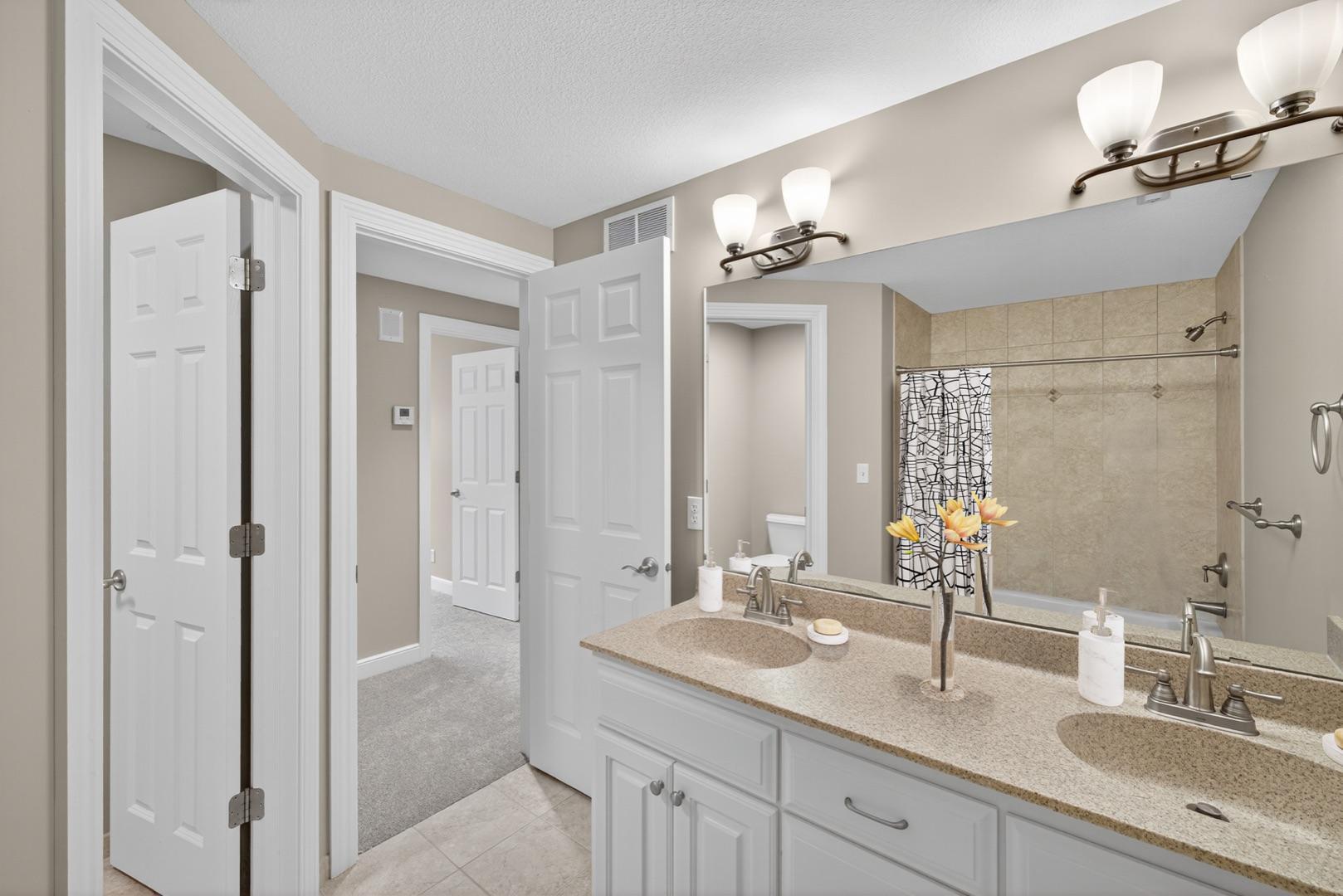 Nestled in a desirable neighborhood in a quiet cul-de-sac, this exceptional custom-built 2 story home offers almost 4,500 finished square feet of refined living space. This 6 bed, 5 bath, 3 car garage home with almost 4,500 finished sq. ft. offers manicured evergreens and mature landscaping with a private backyard creating a beautiful first impression and a peaceful setting year-round. Among many recent upgrades including brand new insulated garage doors and openers with cameras, new exterior lighting, fresh paint throughout, new carpet, and newly refinished hardwood floors. The main level features expansive windows, a grand living room with fireplace, a dedicated formal dining room, and a spacious kitchen with beautiful countertops, spacious island, abundant storage, stainless steel appliances, double ovens, and views of the wooded backyard. The upper level includes four spacious bedrooms, highlighted by a serene primary suite with huge walk-in closet and serene ensuite bath. A junior suite with its own private full bath provides comfort and flexibility. The walk-out lower level is exceptionally warm and inviting, featuring expansive living and recreation areas enhanced by custom built-ins, wide-open entertaining space, and two additional bedrooms alongside a full bathroom. An unfinished storage area adds functional versatility, while the prestressed bonus room elevates the home’s utility, ideal for recreation gear, workshop projects, or hobby space, and thoughtfully designed with both interior and exterior access. Enjoy morning coffee or quiet evenings on the maintenance-free deck overlooking a private backyard with no future development directly behind it. This well-established neighborhood offers paved paths, everyday conveniences, and easy access to Rochester amenities. With its quiet location, thoughtful design, and impressive spaces, this home offers an extraordinary blend of luxury and everyday comfort.