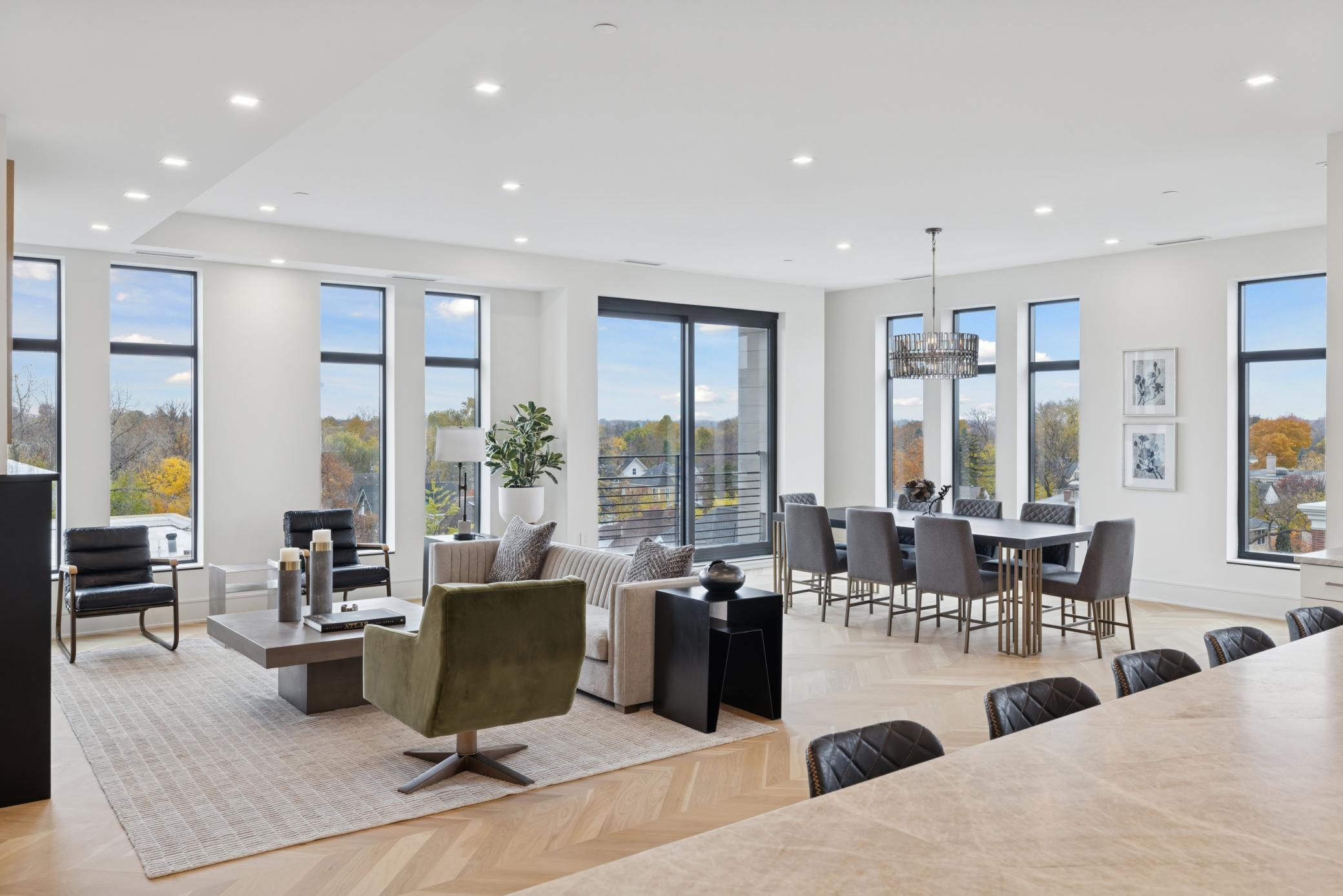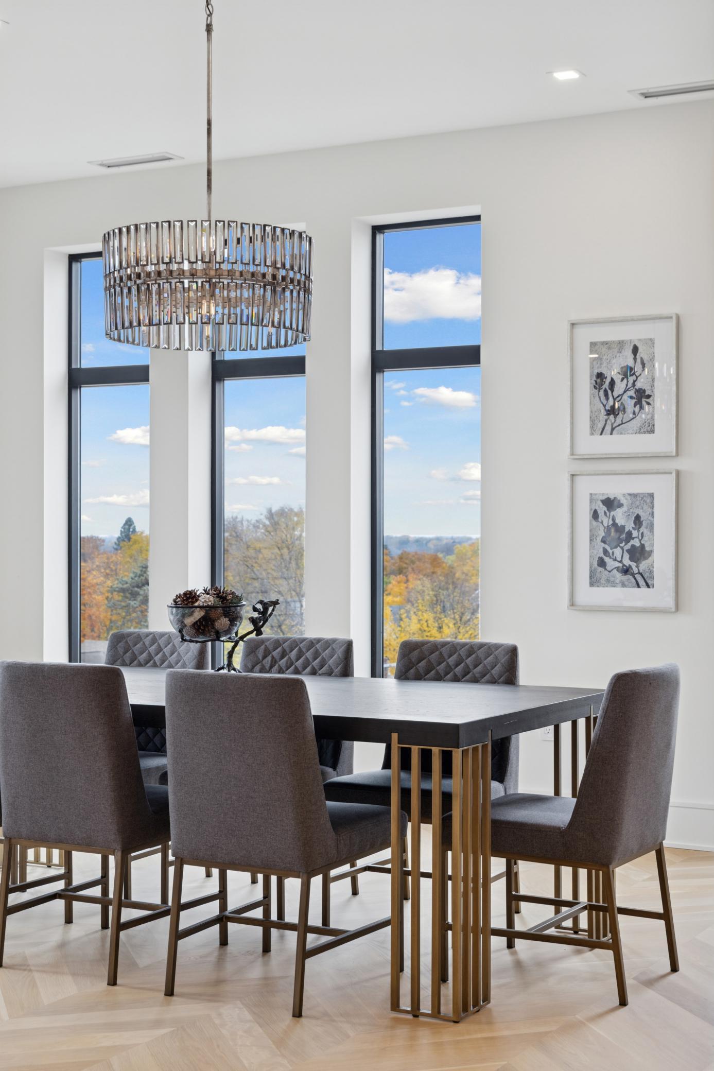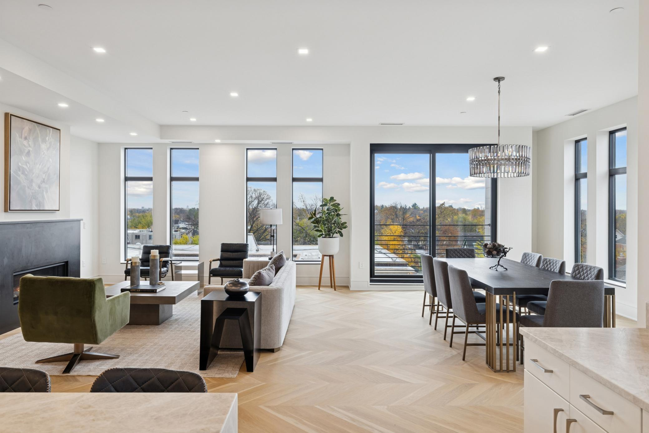 De La Pointe’s final, fully finished model home is now available. This ultra-luxury boutique building—only nine exclusive homes offering full-floor and half-floor living—sits just three blocks from Bde Maka Ska and is defined by its hand-laid limestone façade, granite entry, and iconic curated art. Inside, 10-ft ceilings elevate a refined open plan with a 14-ft Taj Mahal quartz island, Viking appliances, minimalist custom cabinetry, and chevron white oak floors. Library / Den: A private, versatile room featuring a custom dry bar—perfect for work, reading, or intimate entertaining. Primary Suite: A serene retreat with a tailored walk-in closet and a sophisticated 5-fixture spa bath. Large Corner En Suite: Fully separate from the primary suite, offering exceptional privacy and comfort for guests. A covered loggia with gas line extends the home’s living space year-round. Amenities include onsite management by Graves Hospitality, a fitness center, first-floor tasting room, and two parking stalls in the secured, heated garage.
