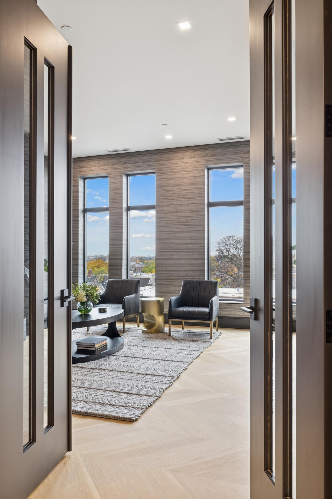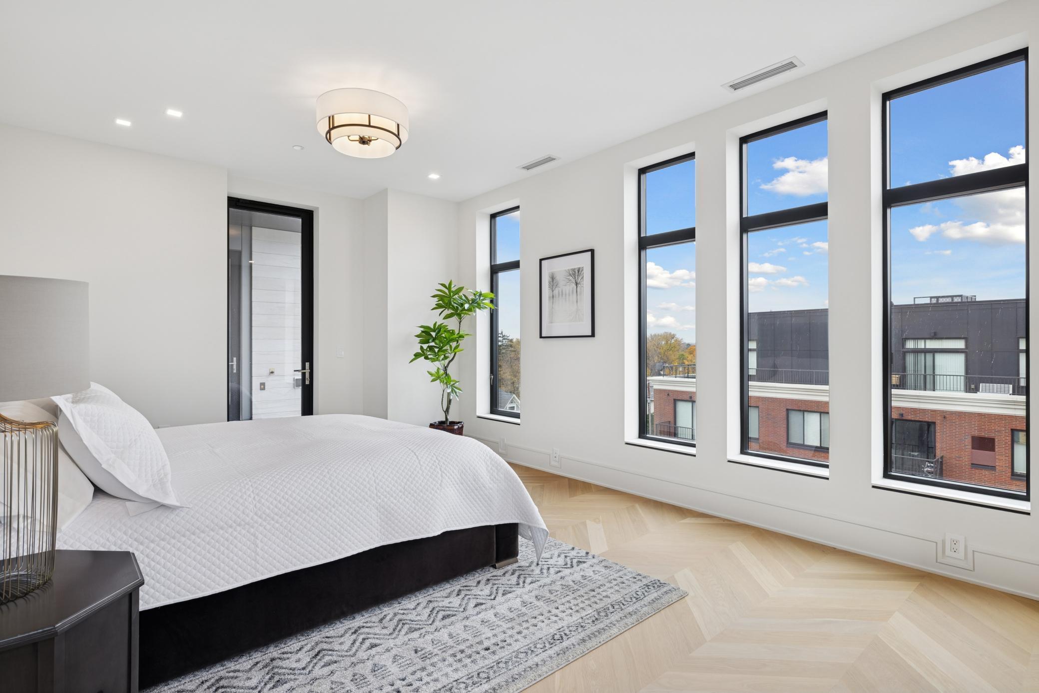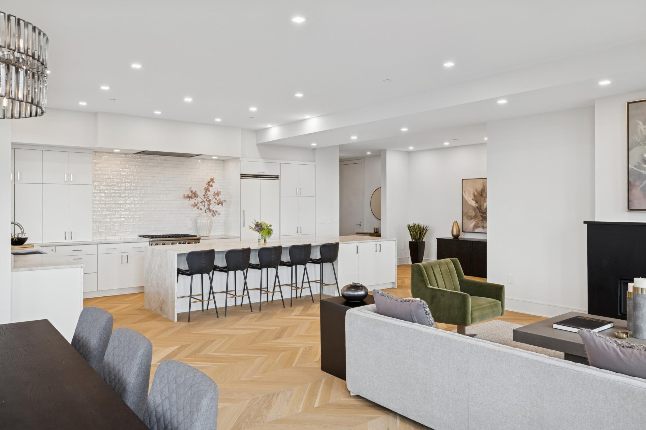 De La Pointe’s final, fully finished model home is now available. This ultra-luxury boutique building—only nine exclusive homes offering full-floor and half-floor living—sits just three blocks from Bde Maka Ska and is defined by its hand-laid limestone façade, granite entry, and iconic curated art. Inside, 10-ft ceilings elevate a refined open plan with a 14-ft Taj Mahal quartz island, Viking appliances, minimalist custom cabinetry, and chevron white oak floors. Library / Den: A private, versatile room featuring a custom dry bar—perfect for work, reading, or intimate entertaining. Primary Suite: A serene retreat with a tailored walk-in closet and a sophisticated 5-fixture spa bath. Large Corner En Suite: Fully separate from the primary suite, offering exceptional privacy and comfort for guests. A covered loggia with gas line extends the home’s living space year-round. Amenities include onsite management by Graves Hospitality, a fitness center, first-floor tasting room, and two parking stalls in the secured, heated garage.