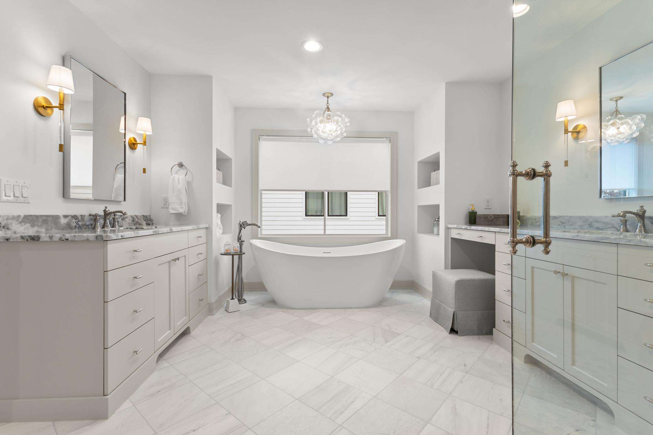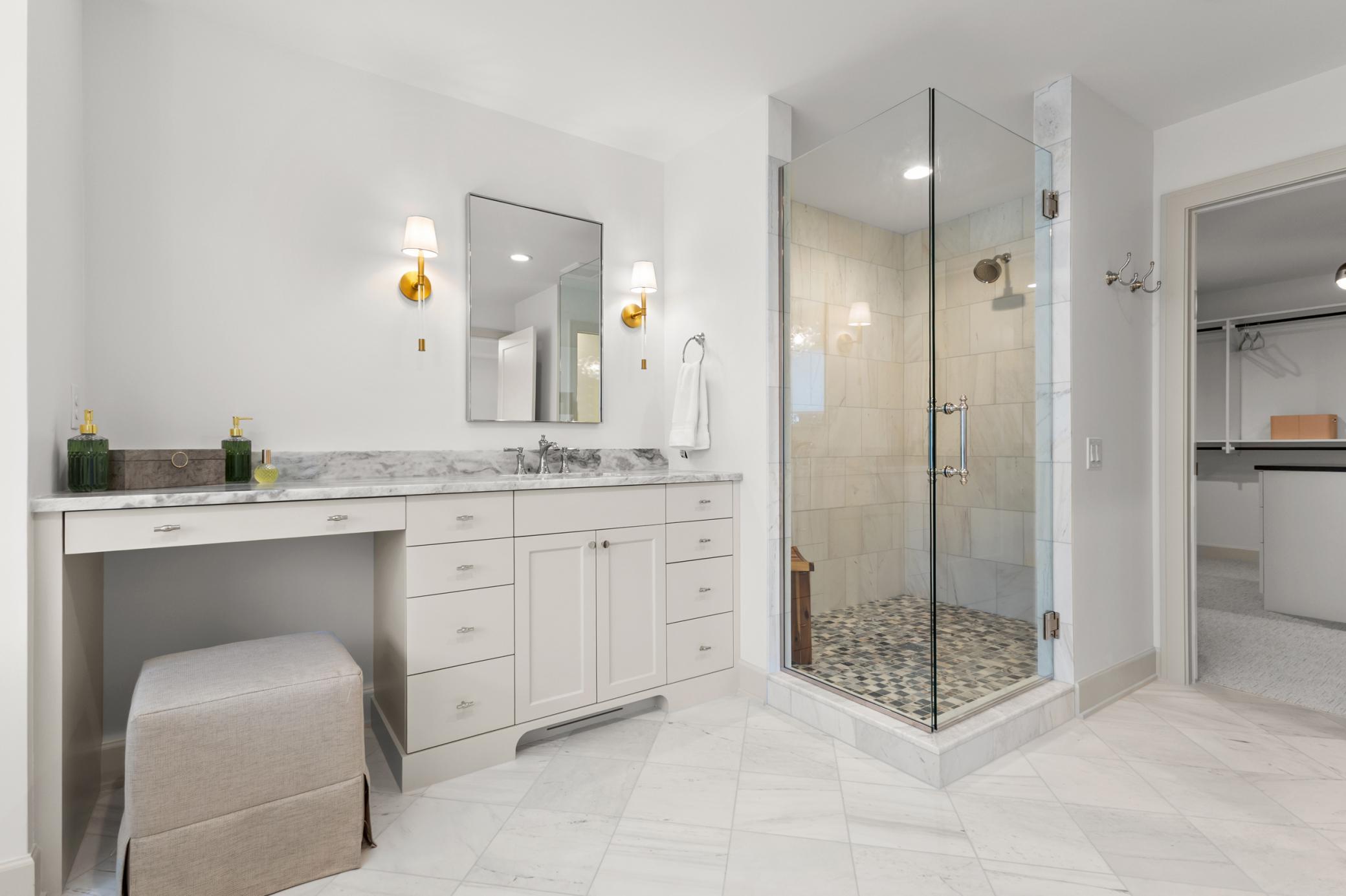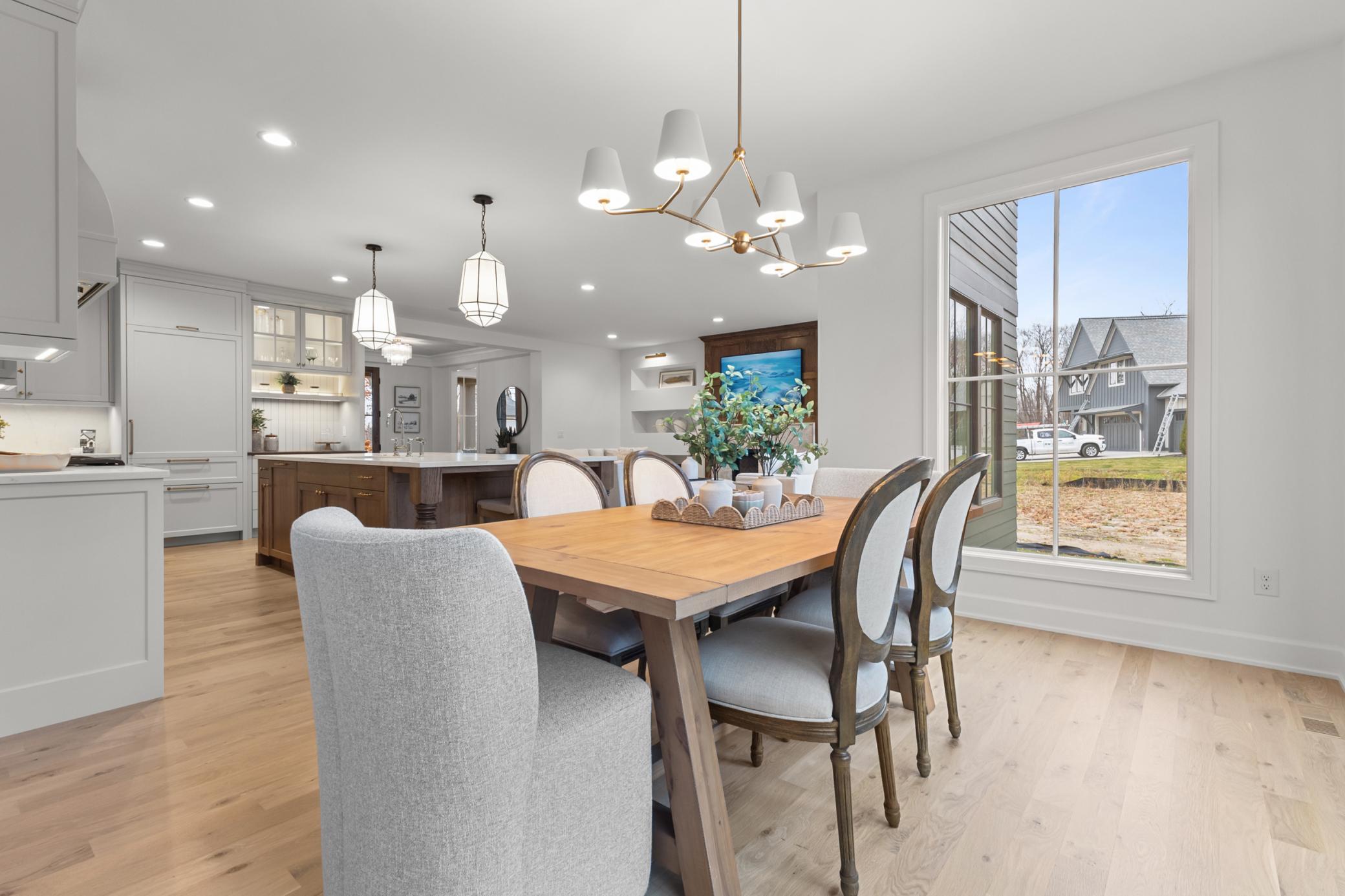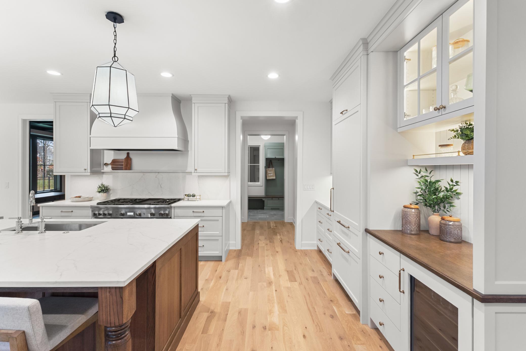 Thoughtful design meets modern luxury. A collaborative creation by M&M Contractors Inc. and Ro & Co Interior Design, this 5-bedroom, 5-bath residence delivers a refined living experience defined by exceptional craftsmanship and a fresh, inviting atmosphere. The foyer makes a striking first impression with bold architectural details, opening into sun-filled spaces adorned with wide-plank white oak floors and designer lighting. At the heart of the home, the kitchen balances clean, modern lines with functional elegance—featuring custom cabinetry, high-end Thermador appliances, and a beautifully appointed butler’s pantry. The upper level is thoughtfully designed for everyday living. Four bedrooms are conveniently grouped together, complemented by a dedicated laundry room and a charming study nook perfect for homework, creativity, or quiet focus. Two bedrooms share a spacious Jack-and-Jill bath, while another enjoys its own ensuite ¾ bath. The primary suite is a true retreat, offering generous proportions, a spa-inspired marble bath with heated floors, and an expansive walk-in closet with a center island. Designed for both entertaining and day-to-day comfort, the home includes multiple living areas, a private office/den, and a lower level crafted for versatility and fun—featuring a wet bar and a flexible athletic room ideal for fitness, yoga, basketball, pickleball, or a future golf simulator. Set on a nearly half-acre flat lot, the exterior presents endless possibilities, from a future pool to a dream backyard oasis. Every detail, inside and out, reflects quality and intentional design. A rare blend of sophistication, comfort, and purposeful style.