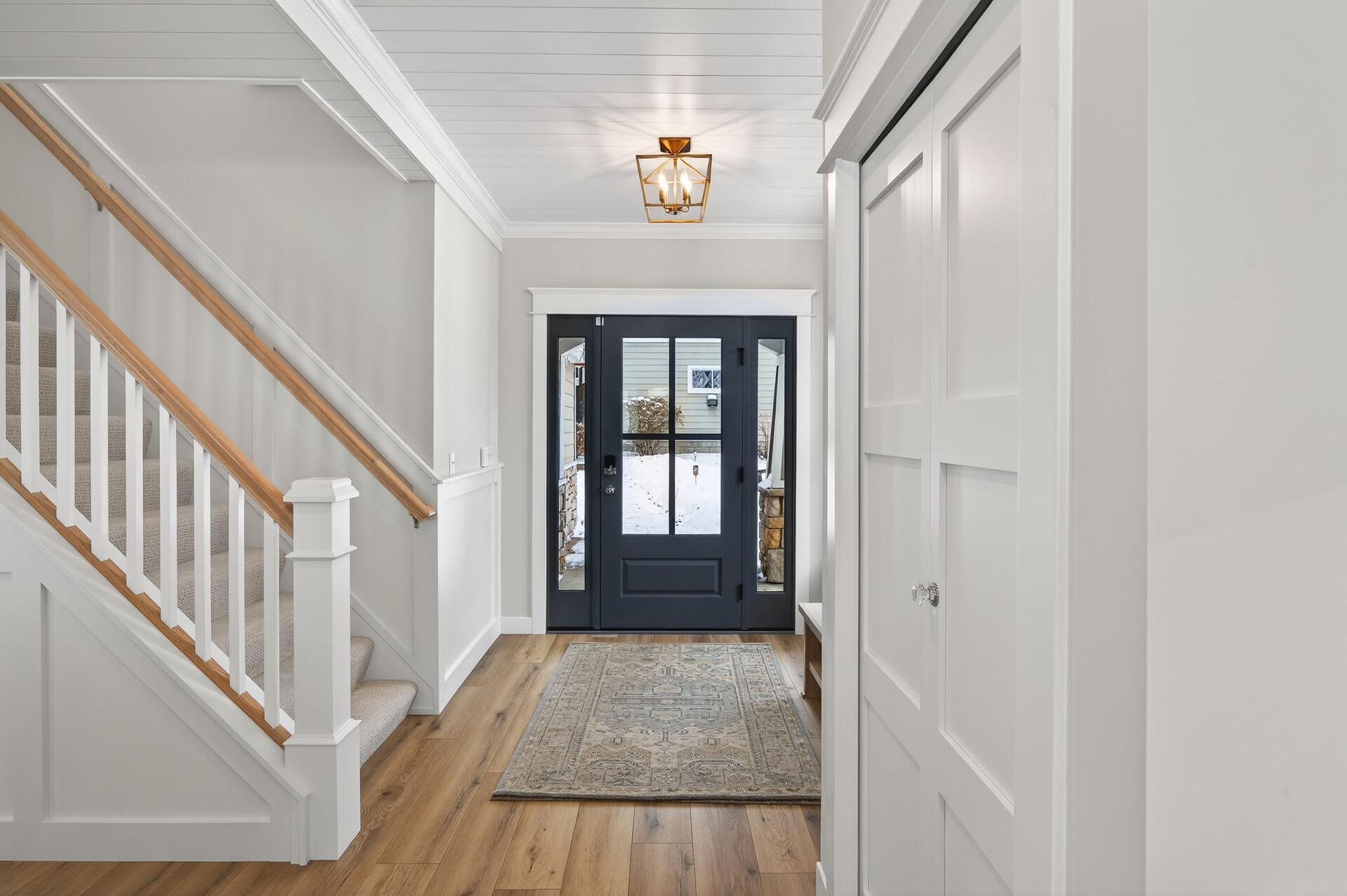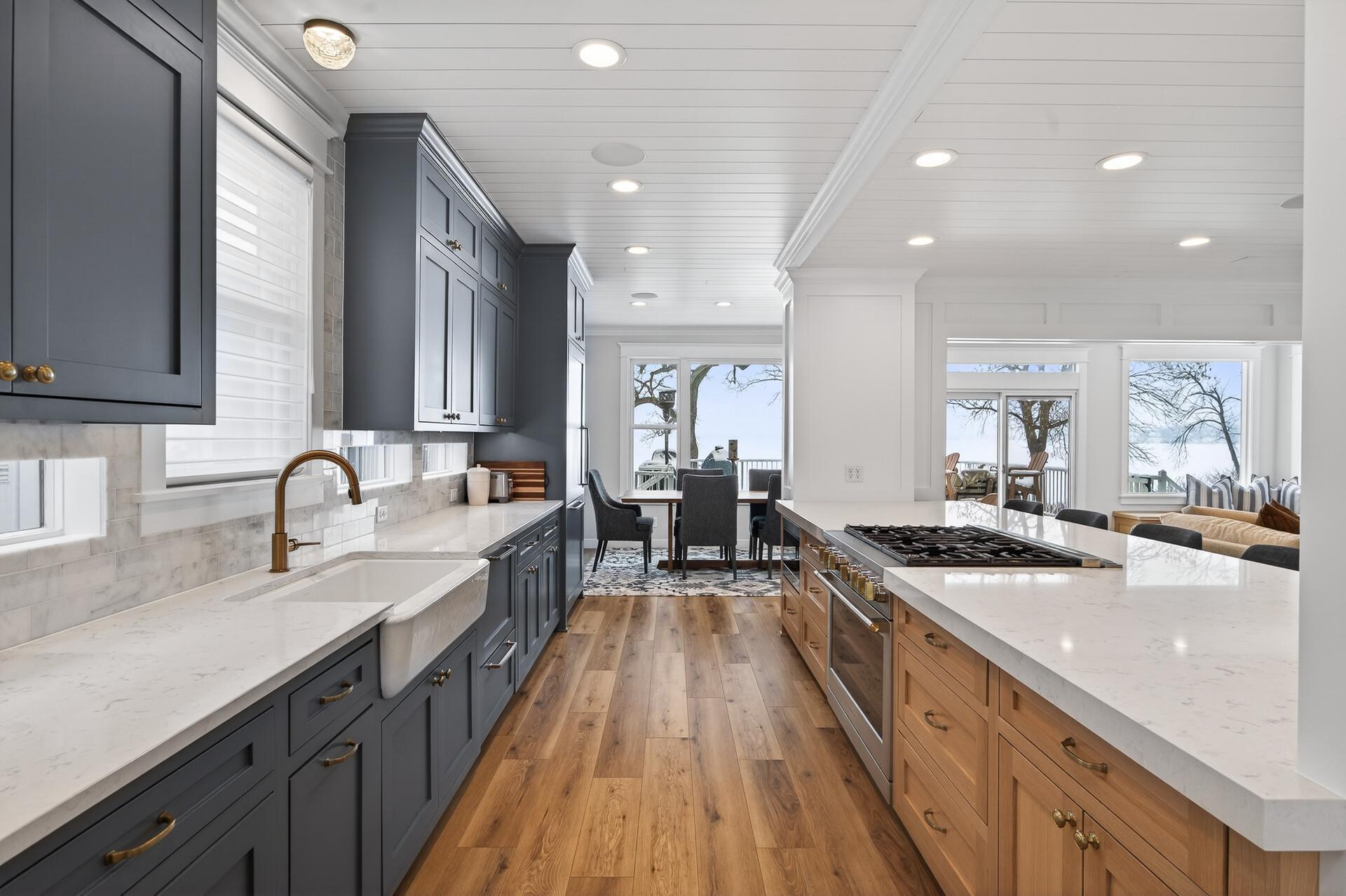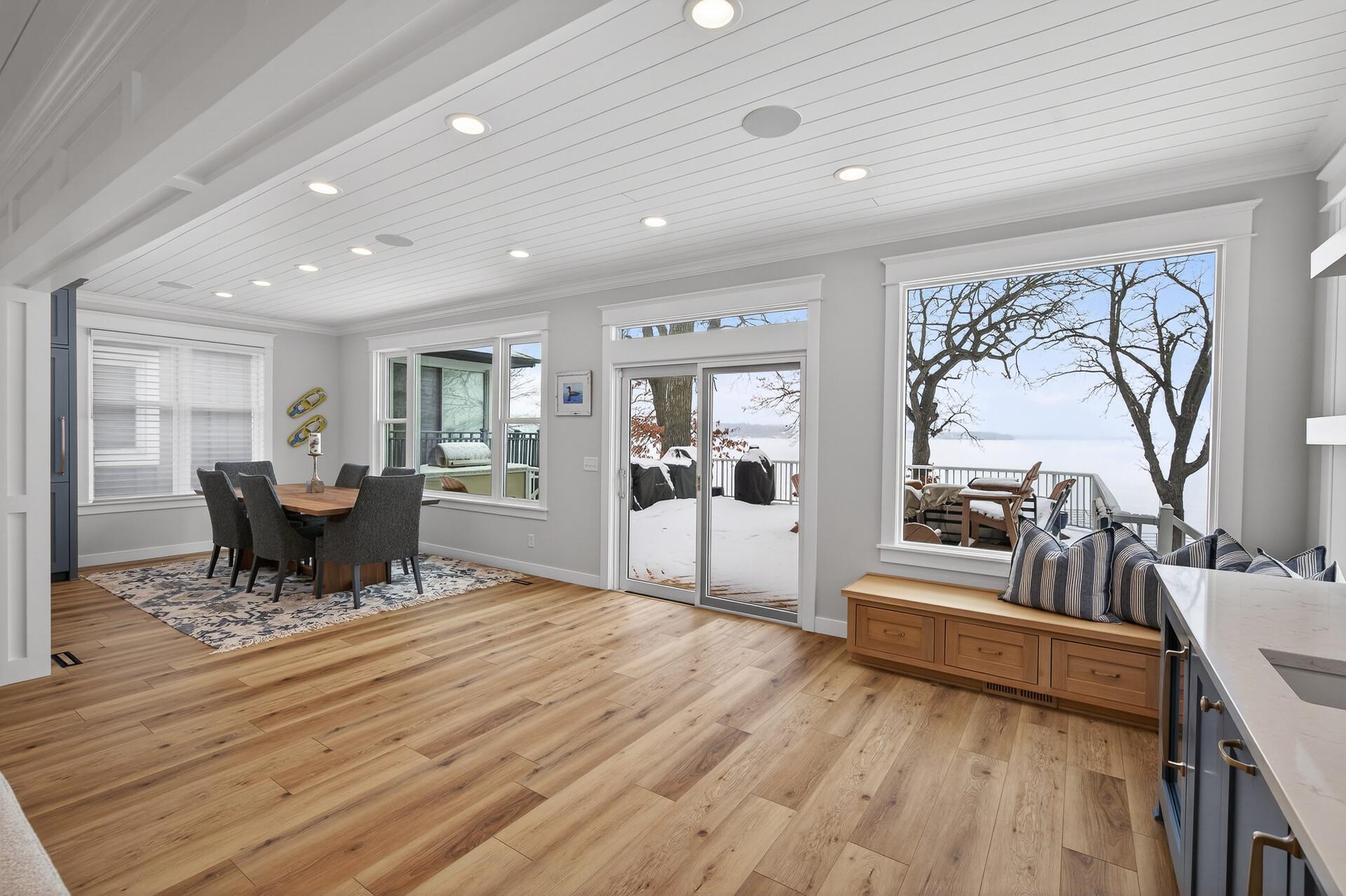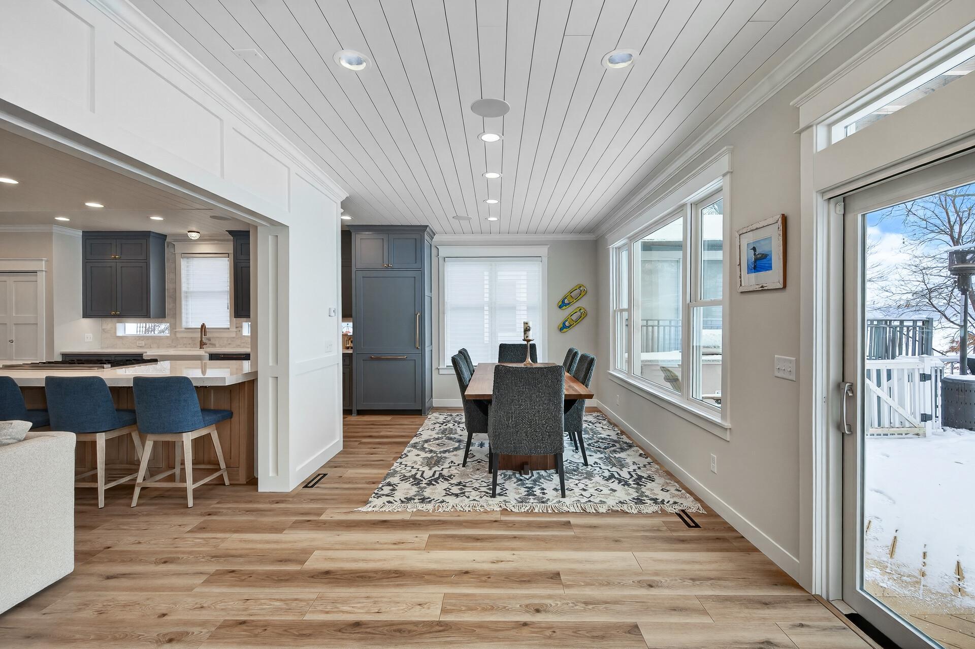 Experience lakeshore living on Park Avenue – one of the most desirable stretches of shoreline on White Bear Lake, featuring ideal water depth and a sandy shoreline for swimming and lake fun. Enjoy the west-facing exposure with stunning sunsets year-round. This fully remodeled home blends modern design with effortless lake living. The main level offers a bright, open-concept layout anchored by a large center island, flowing into a family room with gas fireplace, dining area, and stylish wet bar – perfect for entertaining. A main-floor bedroom and bath, convenient laundry, and a spacious entryway with a built-in bench and hooks for everyday living. Step outside to an expansive composite deck and an additional screen-in lakeside porch, creating the perfect spot to relax. Below the porch, a boathouse provides storage for all your lake toys, making it easy to enjoy the lake lifestyle. The updates continue in the upper level and feature three bedrooms, including a private owner’s suite with a custom walk-in closet, and direct deck access overlooking the backyard and lake. A heated and air-conditioned three-car garage completes the property, offering ample space for vehicles and gear. Every detail of this home has been thoughtfully updated, offering a true turnkey lakeshore experience.