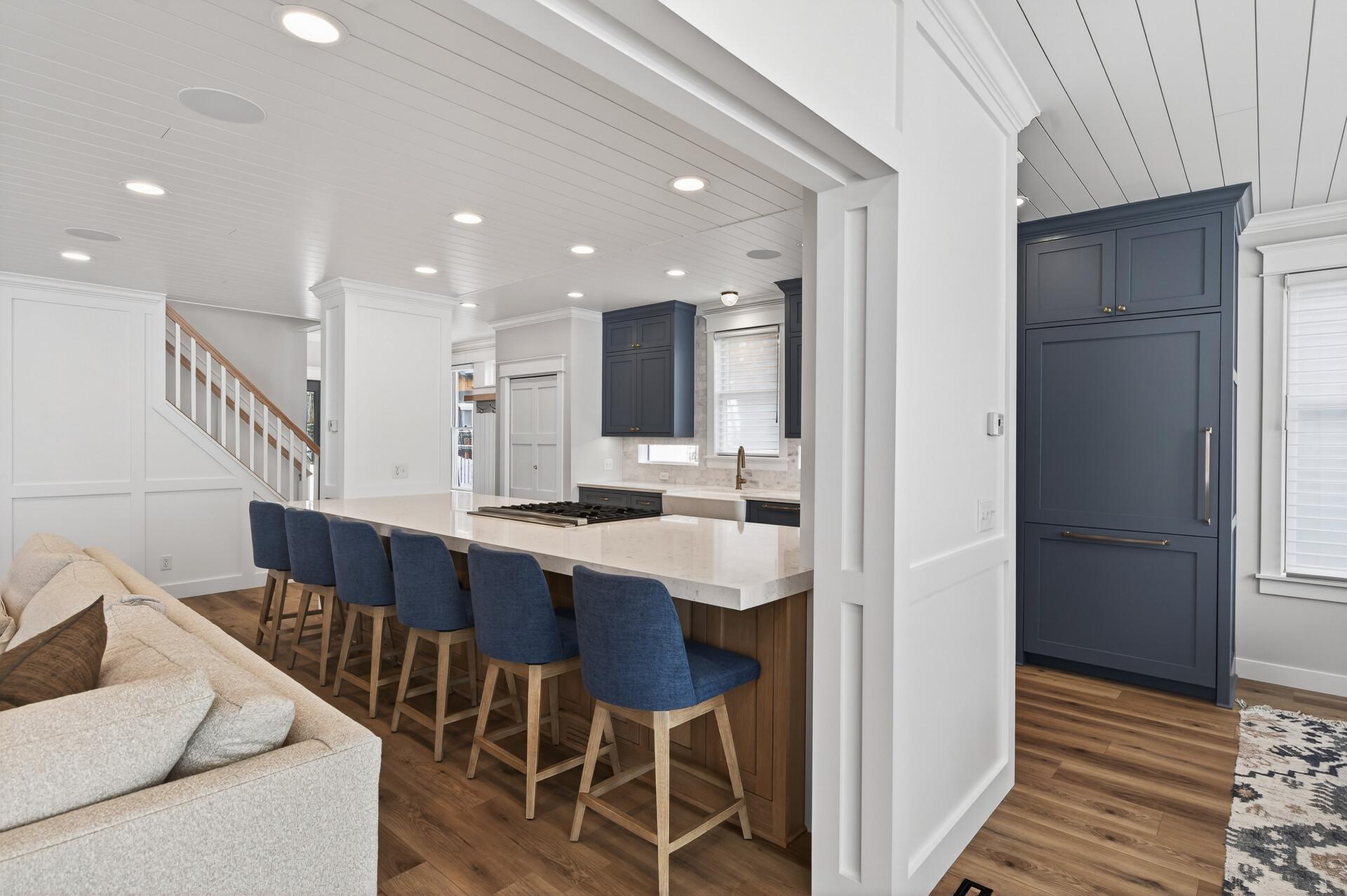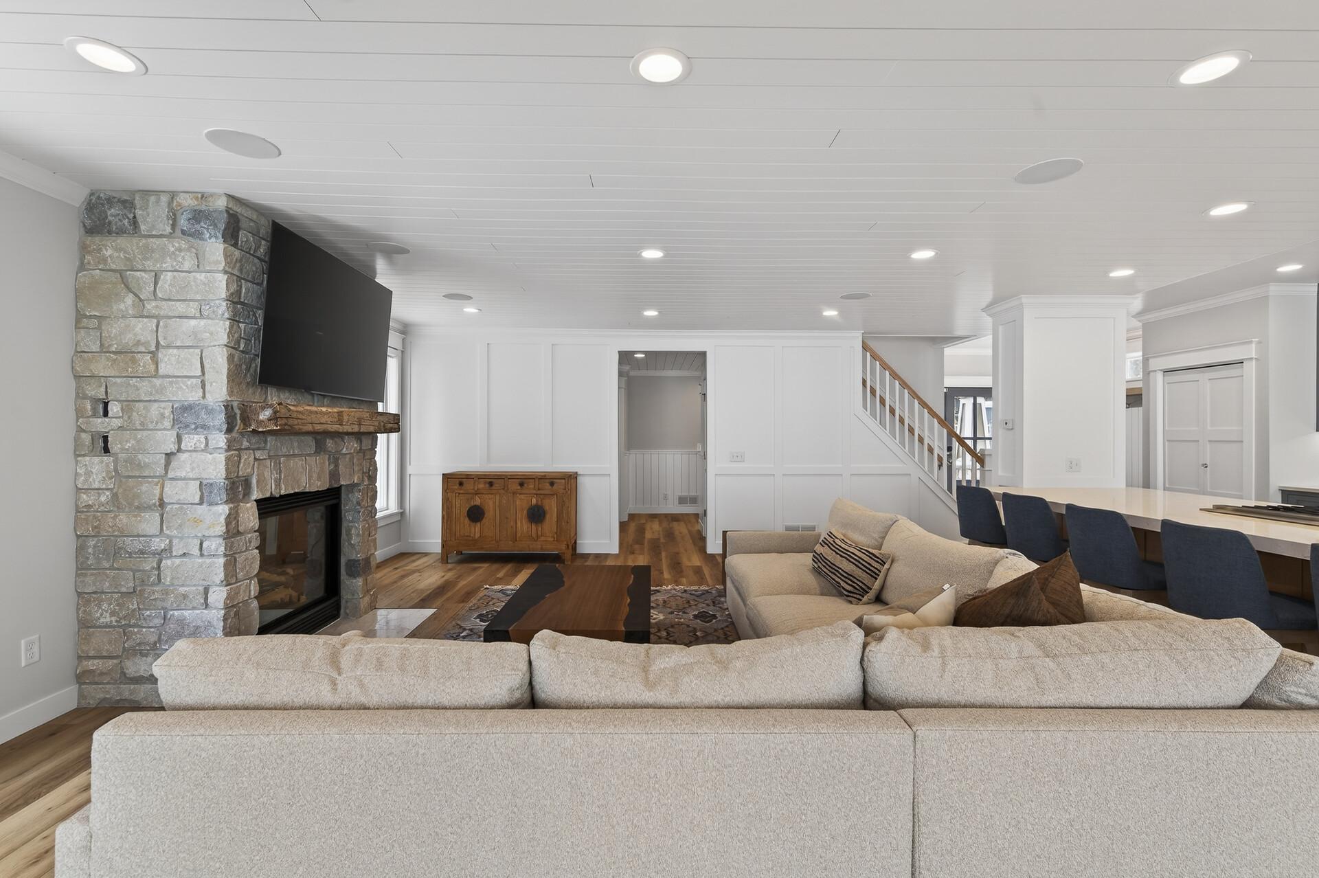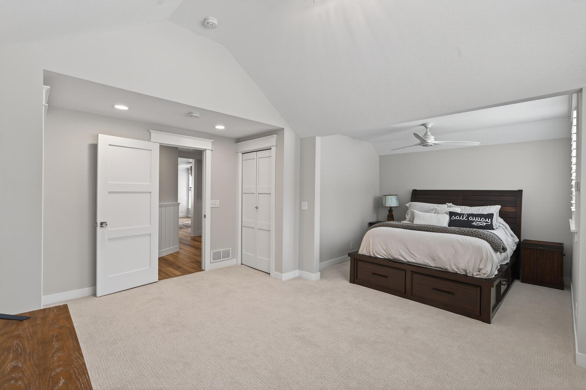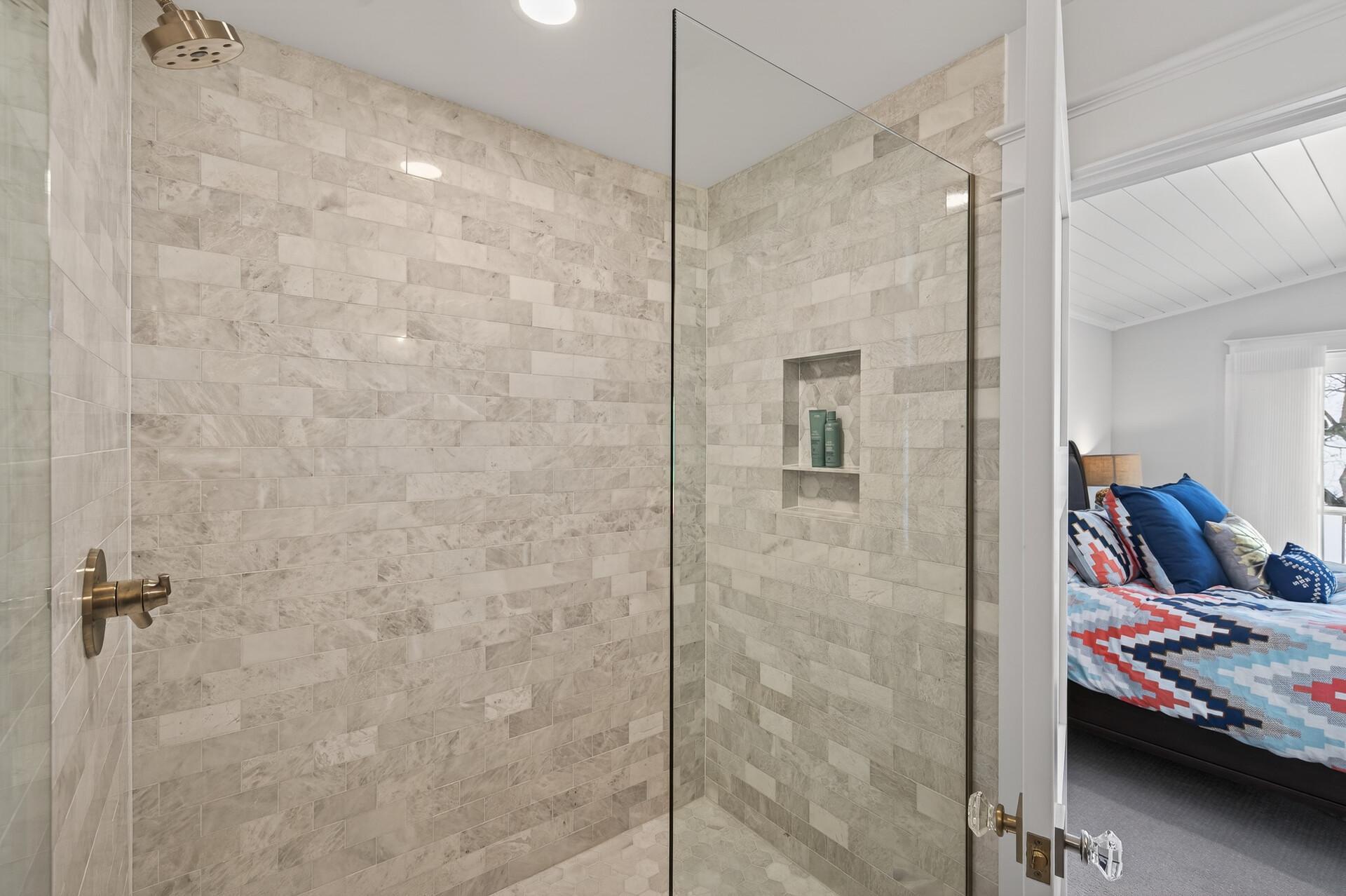 Experience lakeshore living on Park Avenue – one of the most desirable stretches of shoreline on White Bear Lake, featuring ideal water depth and a sandy shoreline for swimming and lake fun. Enjoy the west-facing exposure with stunning sunsets year-round. This fully remodeled home blends modern design with effortless lake living. The main level offers a bright, open-concept layout anchored by a large center island, flowing into a family room with gas fireplace, dining area, and stylish wet bar – perfect for entertaining. A main-floor bedroom and bath, convenient laundry, and a spacious entryway with a built-in bench and hooks for everyday living. Step outside to an expansive composite deck and an additional screen-in lakeside porch, creating the perfect spot to relax. Below the porch, a boathouse provides storage for all your lake toys, making it easy to enjoy the lake lifestyle. The updates continue in the upper level and feature three bedrooms, including a private owner’s suite with a custom walk-in closet, and direct deck access overlooking the backyard and lake. A heated and air-conditioned three-car garage completes the property, offering ample space for vehicles and gear. Every detail of this home has been thoughtfully updated, offering a true turnkey lakeshore experience.