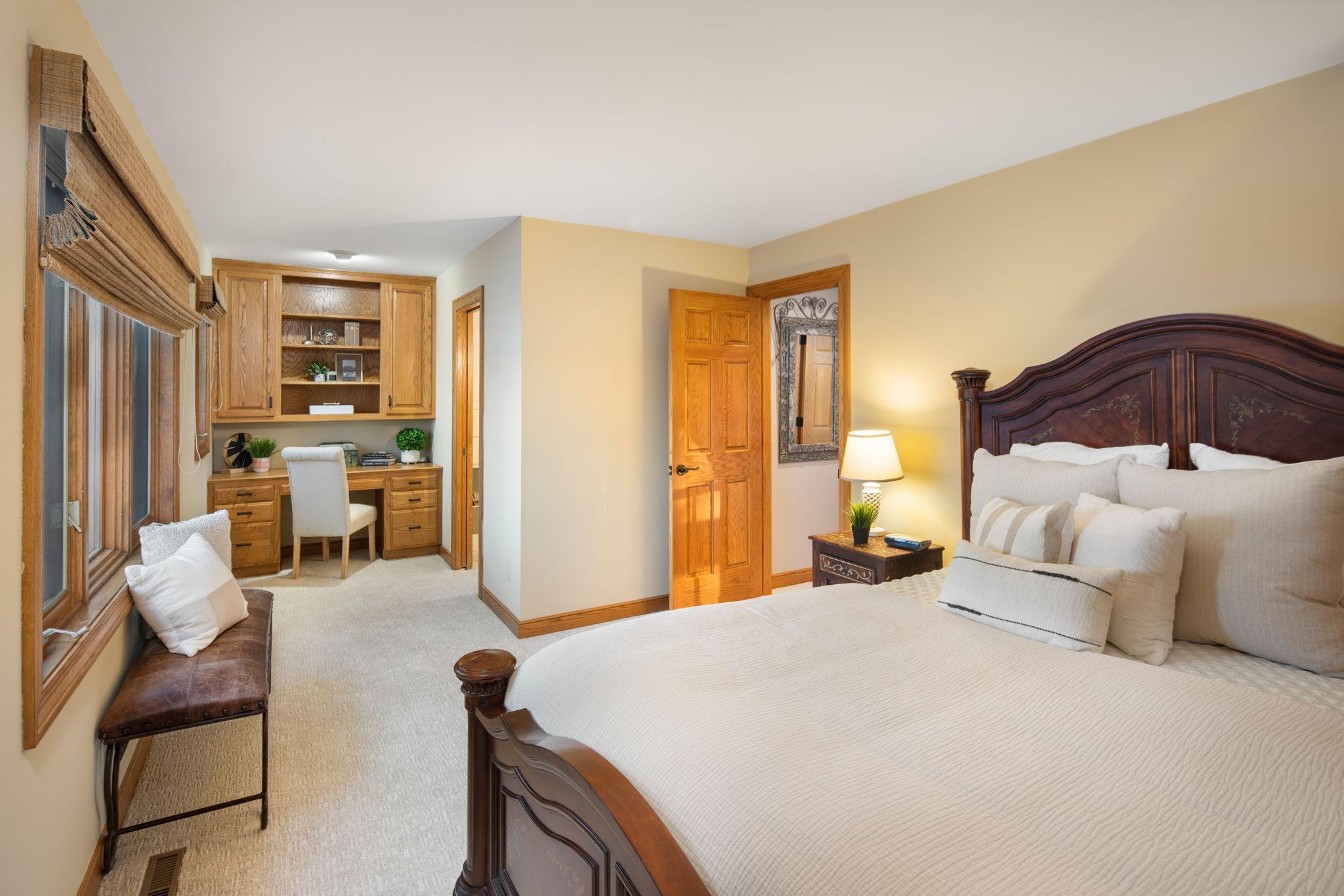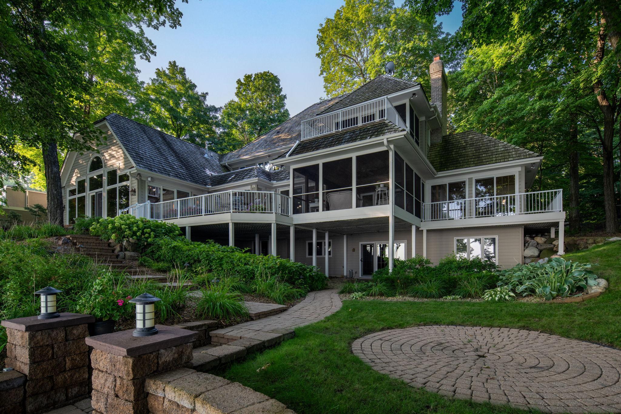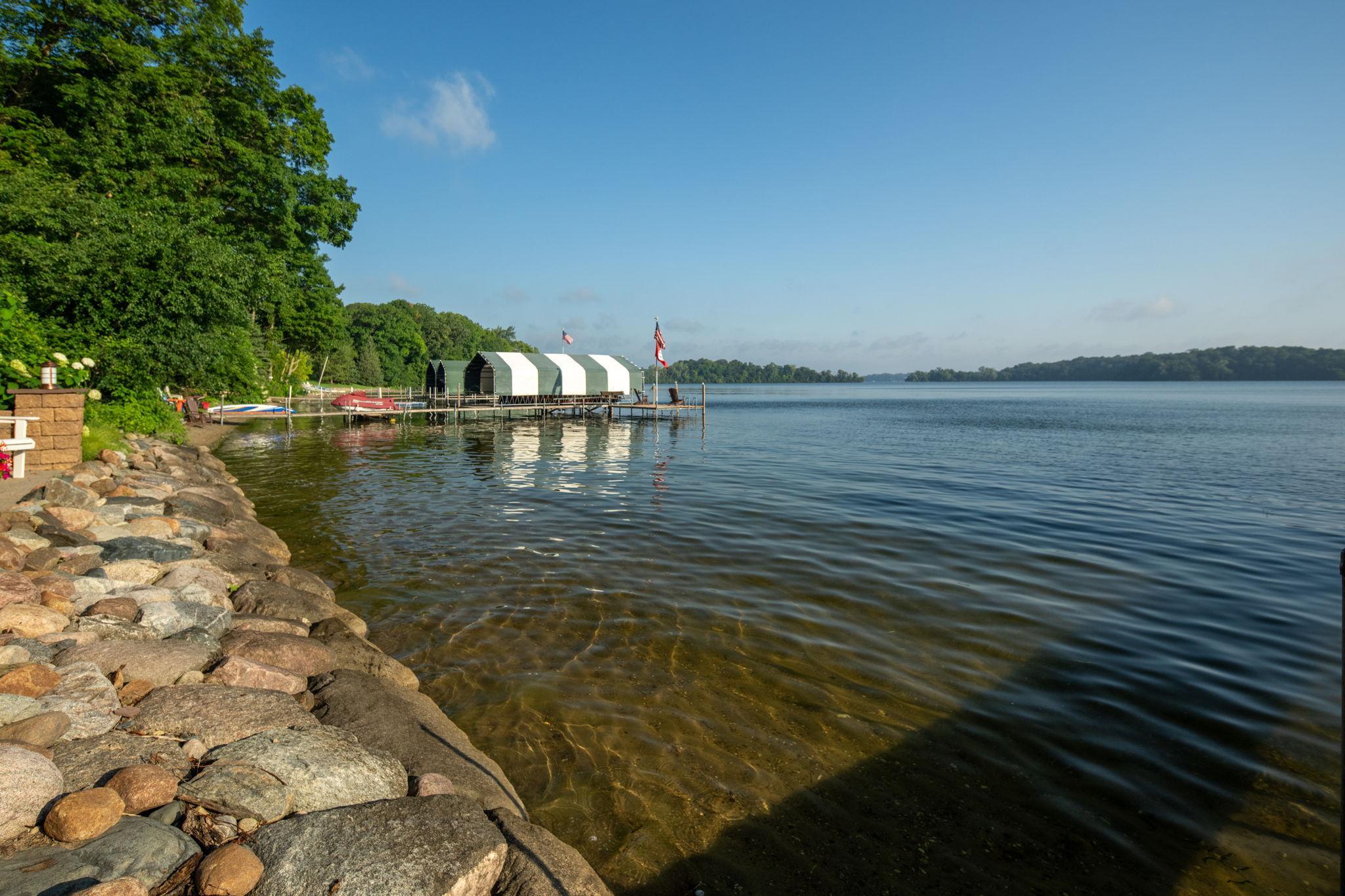 The ideal Lake Minnetonka residence, offering 121 feet of pristine, hard-packed sandy shoreline on the deep, clear waters of Smithtown Bay, with A-rated water quality and unobstructed panoramic views. Perfectly positioned on a quiet cul-de-sac in the coveted Baycliffe neighborhood and award-winning Minnetonka School District, this property delivers privacy, natural beauty, and timeless lake living. Designed and built by Steiner & Koppleman, the custom brick-and-redwood home blends a refined aesthetic with an exceptional floor plan for everyday living and entertaining. Highlights include an updated gourmet eat-in kitchen with adjacent hearth room, sun-filled great room, formal living and dining rooms flanking a grand marble-floored foyer, lakeside executive office, mudroom with additional kitchen appliances, large screened porch, and expansive lakeside deck. The home features four fireplaces, thoughtfully located in the hearth room, executive office, family room, and primary bedroom, creating warmth and ambiance throughout. An oversized, heated, three-plus-car garage and a whole-home generator complete the main-level amenities. The upper level offers three bedrooms, including a luxurious primary suite with its own private screened porch and deck, along with two additional bedrooms connected by a Jack-and-Jill bath. The walkout lower level features a family room with a wet bar, sauna, workout area, additional bedroom with a built-in desk and bed, and a flex room that upon buyer request, will be converted to a fifth bedroom at the seller’s expense. The heavily wooded lot has been thoughtfully maintained to promote long-term tree growth while preserving stunning lake views. Professionally designed landscaping and hardscaping frame the home and shoreline, with permanent concrete steps leading to a lakeside patio with fireplace, rip-rap shoreline, and sandy beach depending on lake levels. A 40-foot boathouse and dock complete the ultimate Lake Minnetonka lifestyle. An exceptional opportunity to own a private, timeless lakefront retreat designed to accommodate all stages of life in one of Lake Minnetonka’s most sought-after locations.