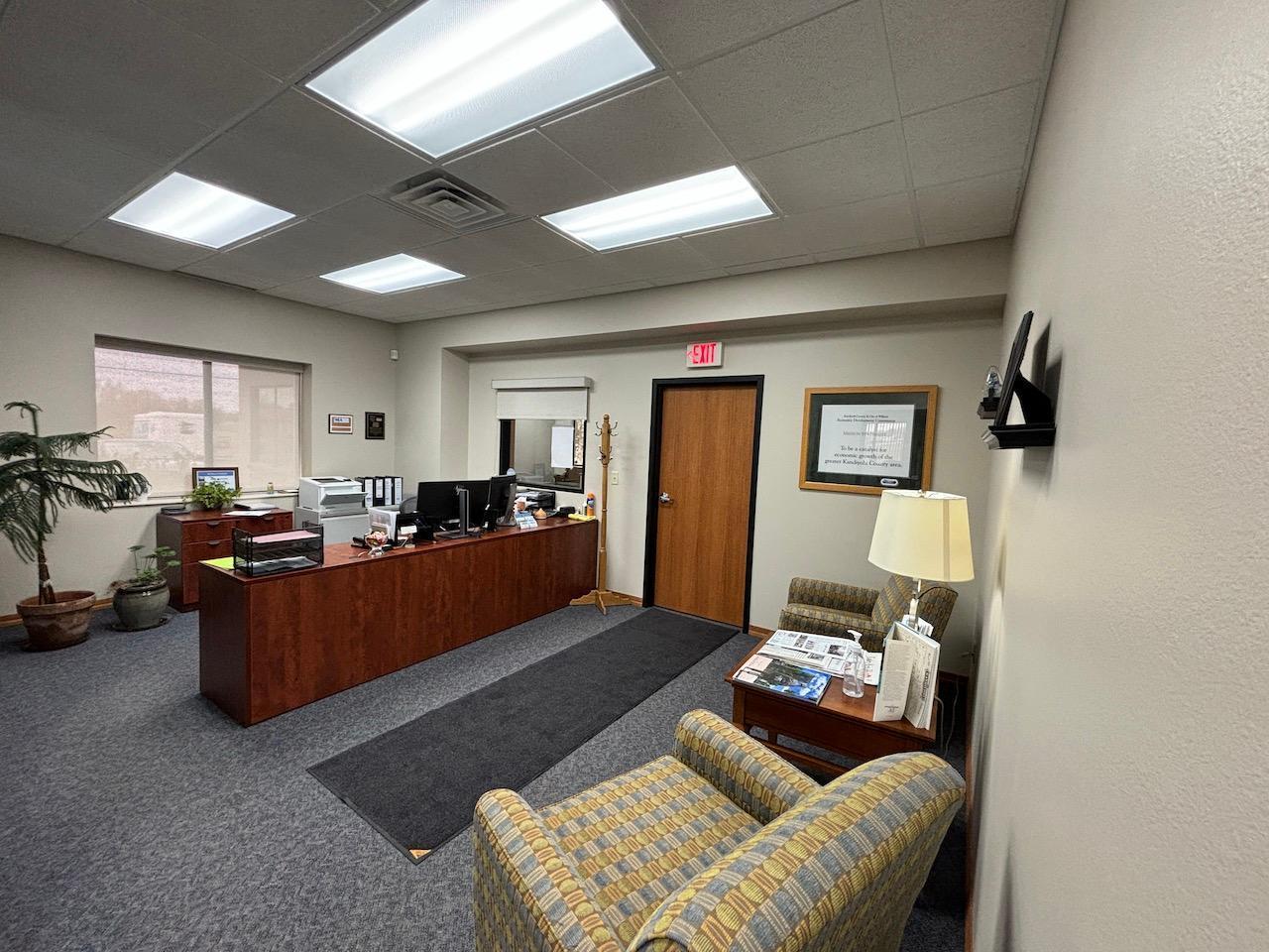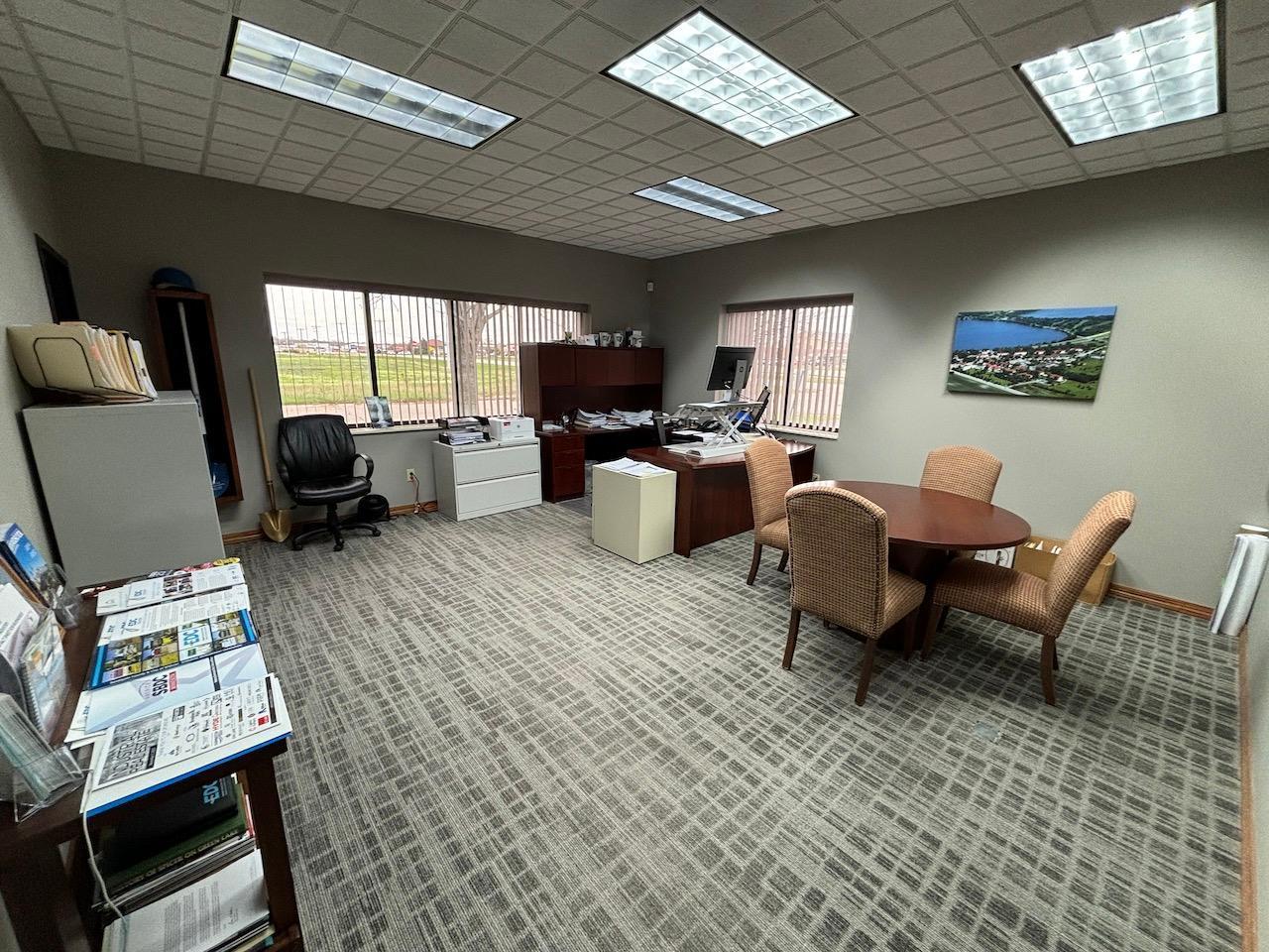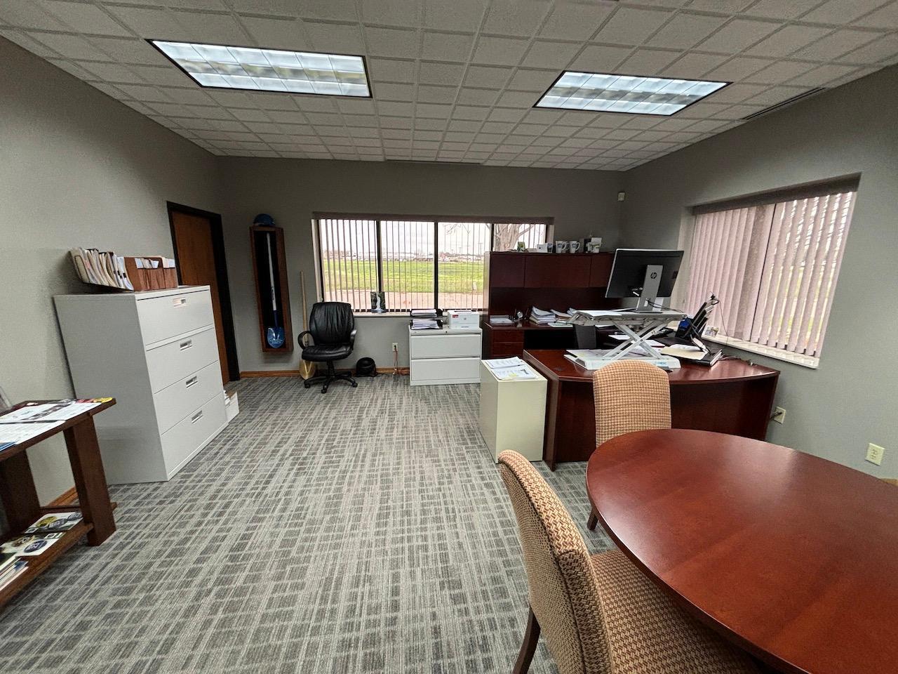 Great high exposure office suite. There are 2 Large offices, or 1 Large office and 1 large conference room. 2 other offices. A large Storage/printers/electronics room. Very nice sized welcome reception area. Common area maintenance, snow removal, lawn care, Garbage all included. Utilities, taxes, insurance, build out, all negotiable. Many possibilities, was used as office space, could be used as a retail area with dressing rooms. Common entrance and bathrooms shared. Small break room area if needed. Signage also on highway 12.