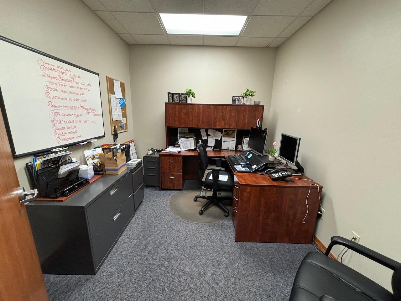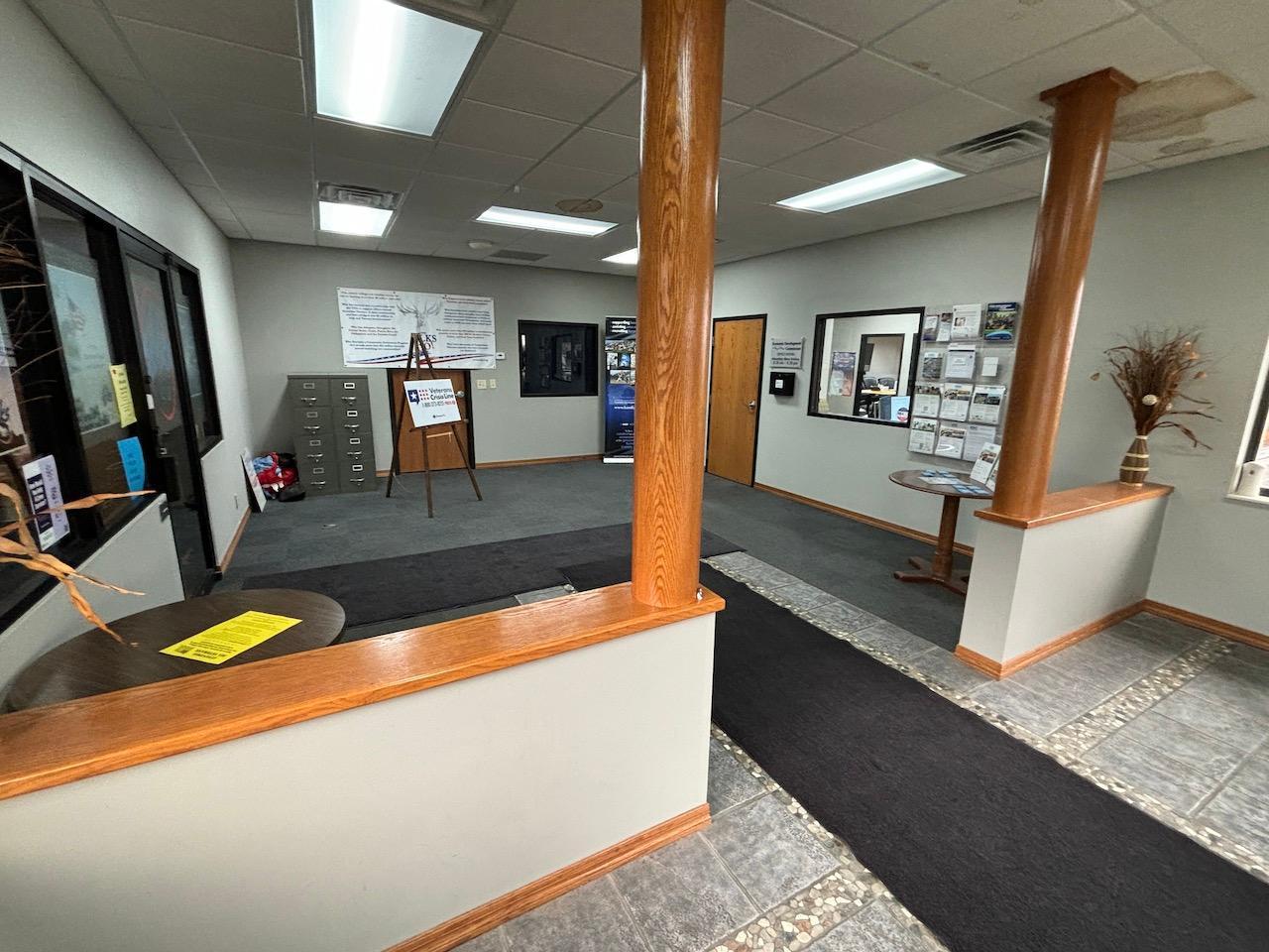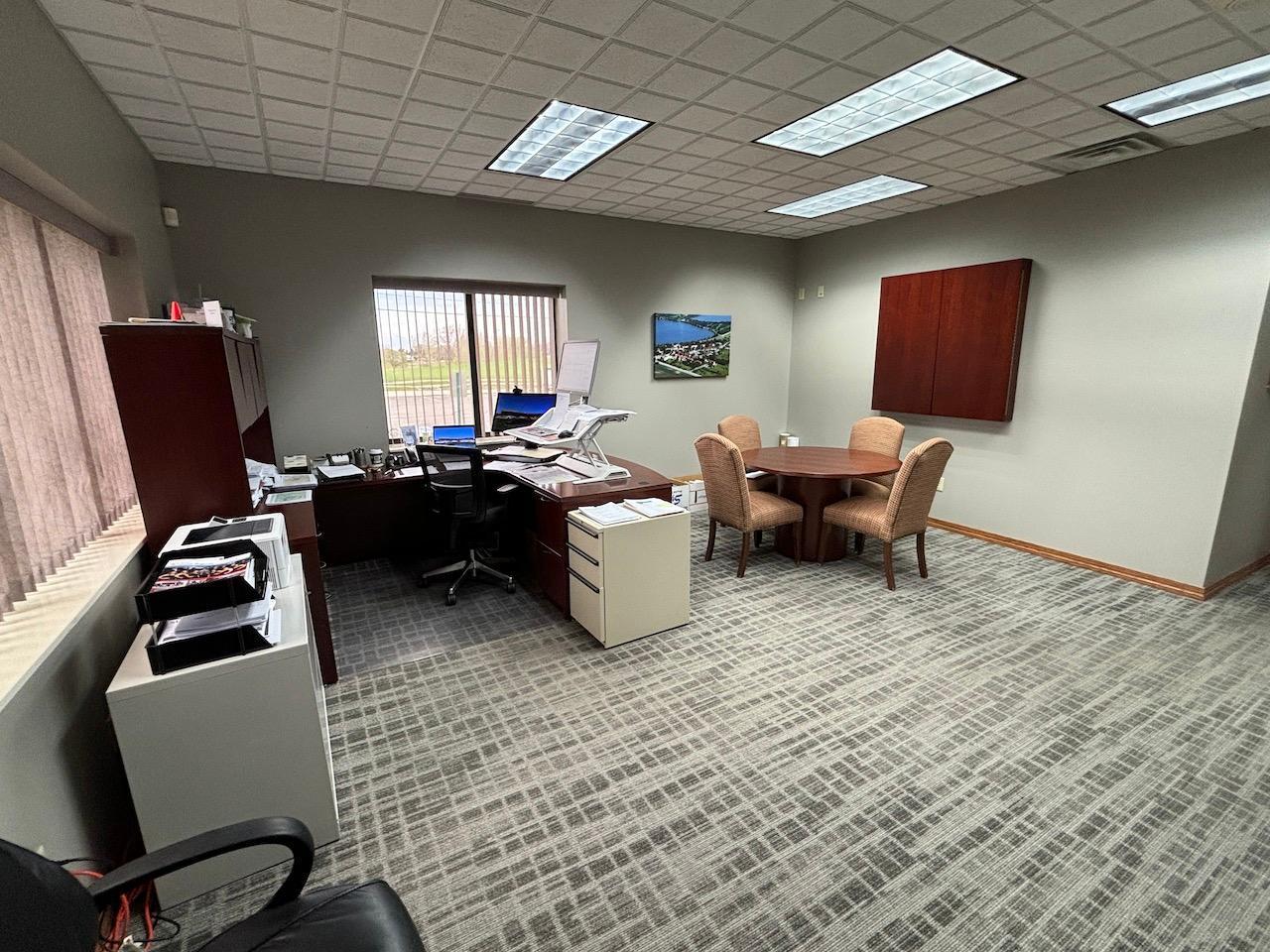 Great high exposure office suite. There are 2 Large offices, or 1 Large office and 1 large conference room. 2 other offices. A large Storage/printers/electronics room. Very nice sized welcome reception area. Common area maintenance, snow removal, lawn care, Garbage all included. Utilities, taxes, insurance, build out, all negotiable. Many possibilities, was used as office space, could be used as a retail area with dressing rooms. Common entrance and bathrooms shared. Small break room area if needed. Signage also on highway 12.