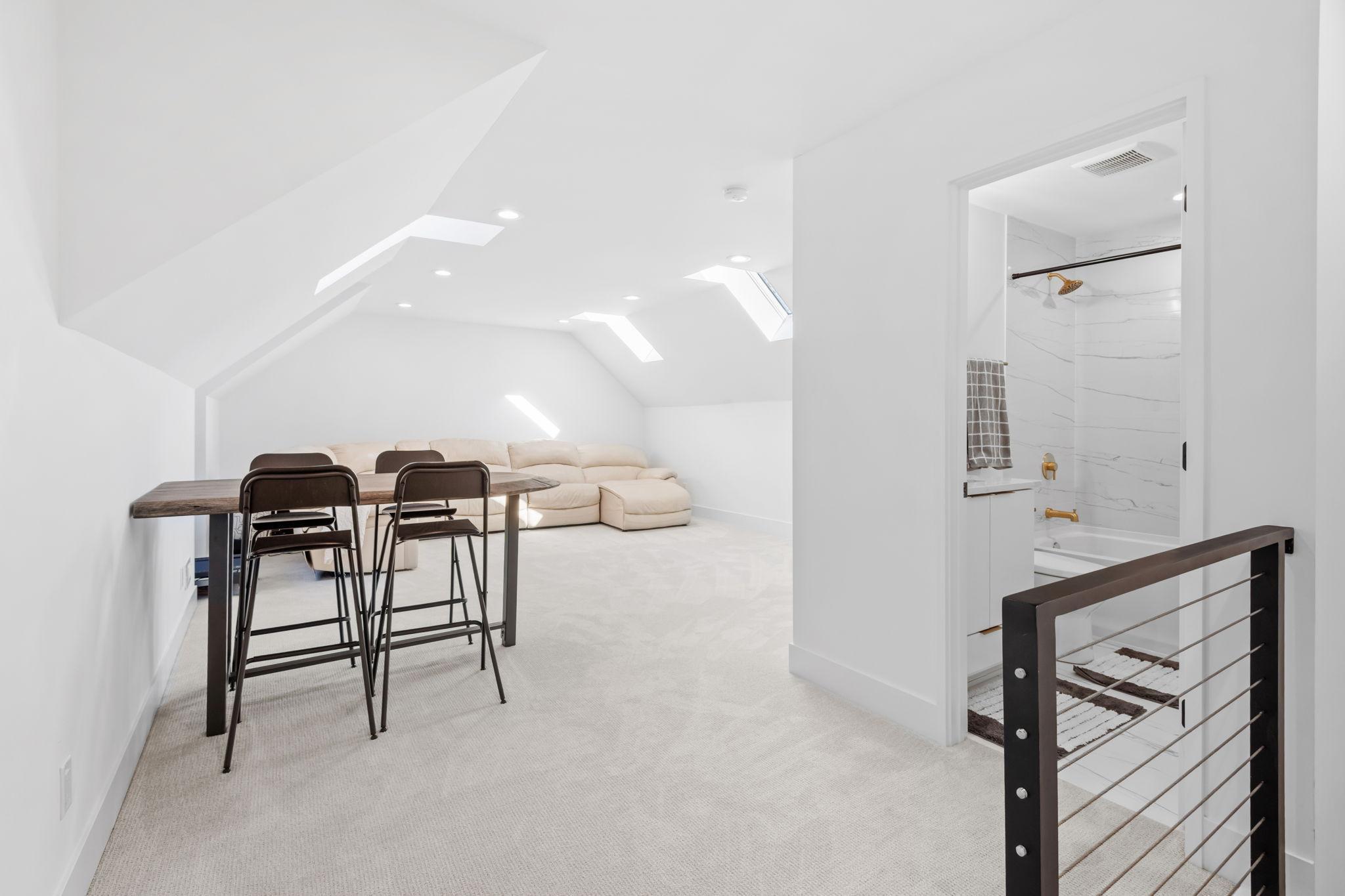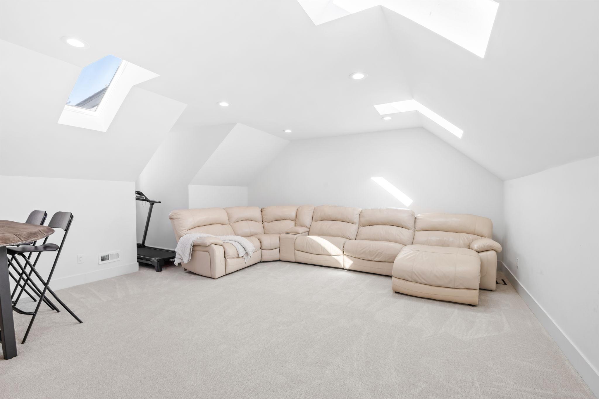 Upstairs, a spacious bonus room provides flexible space for a home office or media room.