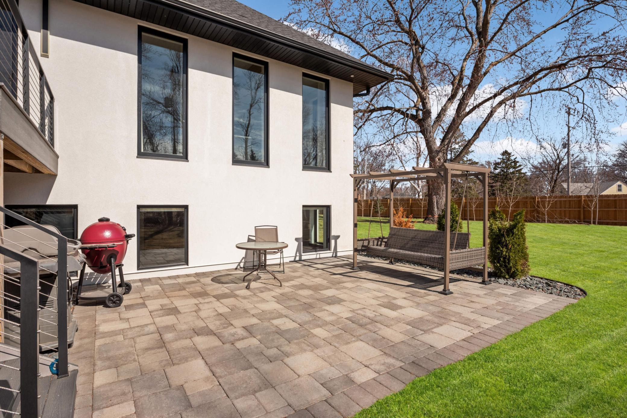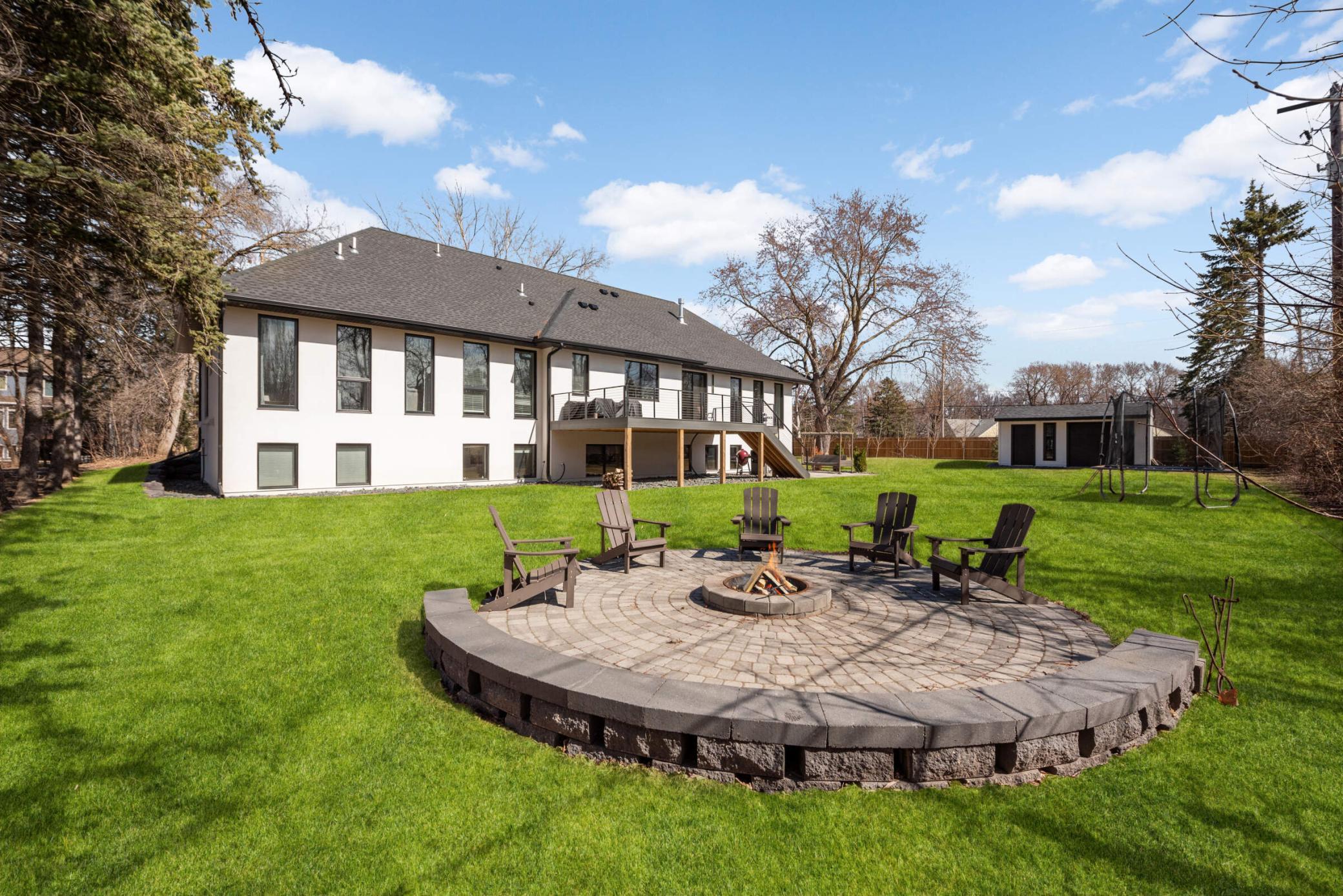 Spacious backyard with plenty of space for entertainment. Generous size maintenance free deck, fire pit, patio and tons of green space.