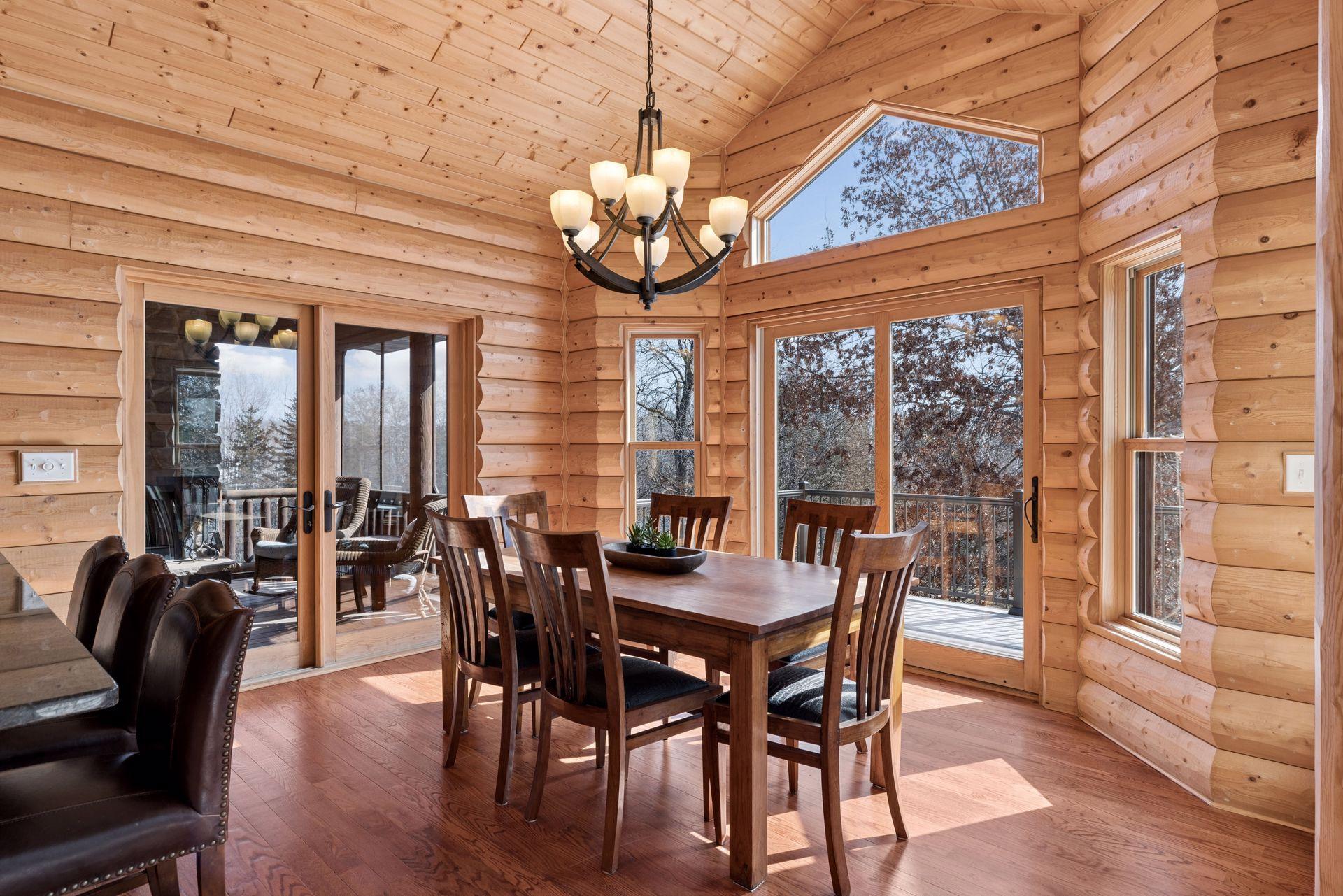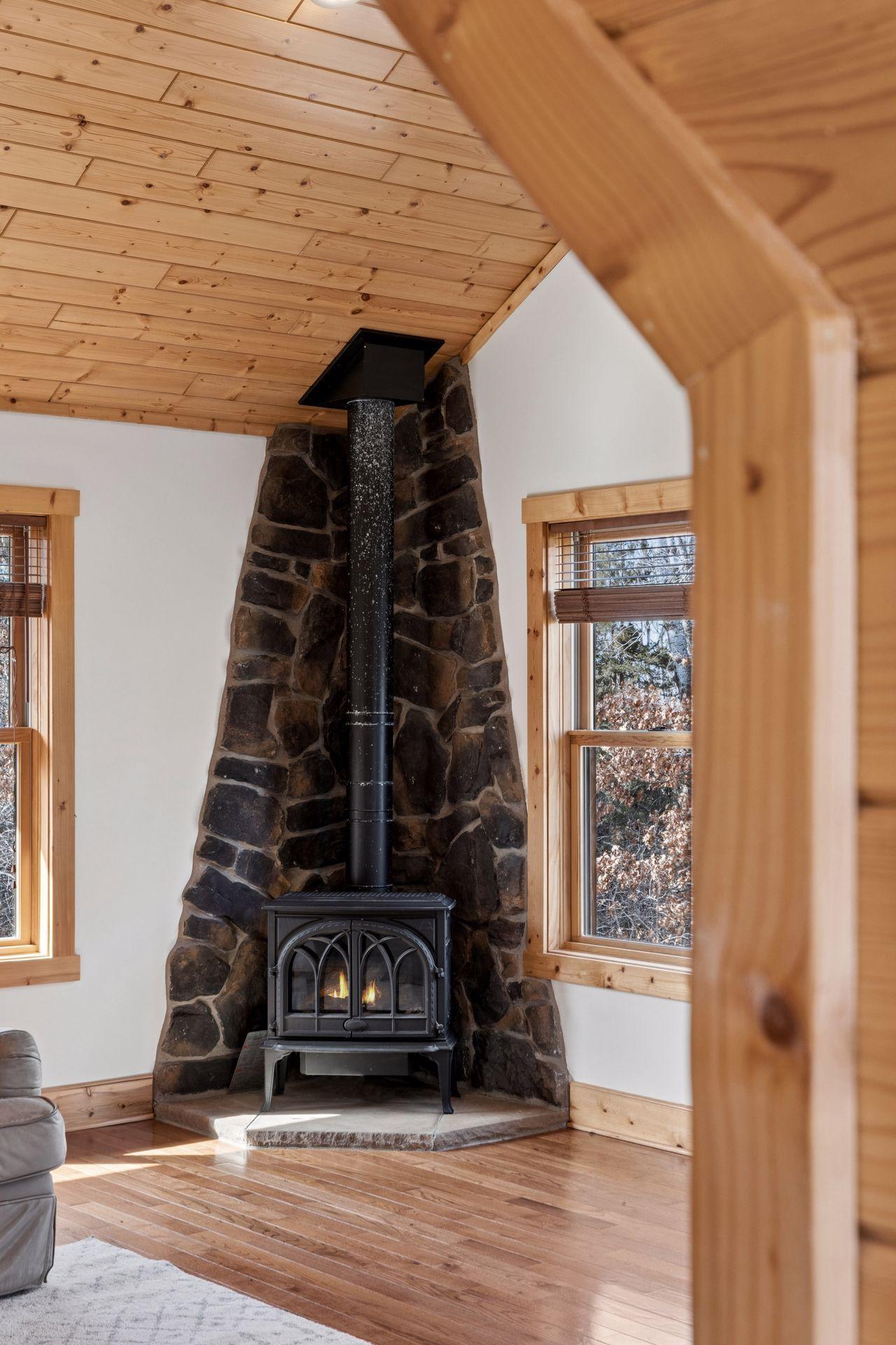 Nestled on 24 private wooded acres just minutes from Stillwater and Hudson, this remarkable 5-bedroom, 4-bathroom home offers a rare opportunity to experience true privacy, natural beauty, and refined comfort without sacrificing convenience. Surrounded by mature trees and abundant wildlife, the setting feels like a world away while still offering an easy drive to nearby river towns, dining, and highway access, all while coming home to your own peaceful retreat. Inside, the home is filled with natural light, highlighted by expansive windows, soaring ceilings, and warm wood finishes throughout. The open-concept main living area is anchored by a stunning stone fireplace, creating an inviting space to gather and unwind. The kitchen features ample cabinetry, a center island, and seamless flow into dining and living spaces—ideal for entertaining or quiet evenings at home. The lower level expands your living space with a comfortable family room and an unexpected bonus - a dedicated media/theater room just off the main gathering area. Perfect for movie nights, game days, or even music and creative pursuits, this flexible space adds a unique and highly desirable element to the home. Step outside and enjoy everything this property has to offer. A large fenced yard provides space to roam, while the private swimming pond creates a peaceful, scenic focal point. The expansive deck is perfect for hosting or relaxing in the surrounding beauty, and the screened porch with its own fireplace extends your living space year-round. With the added efficiency of geothermal heating and cooling, multiple living areas, and incredible views in every direction, this home blends comfort, craftsmanship, and nature in a truly special way. Properties like this are rarely available—offering a unique combination of acreage, privacy, and thoughtful design.