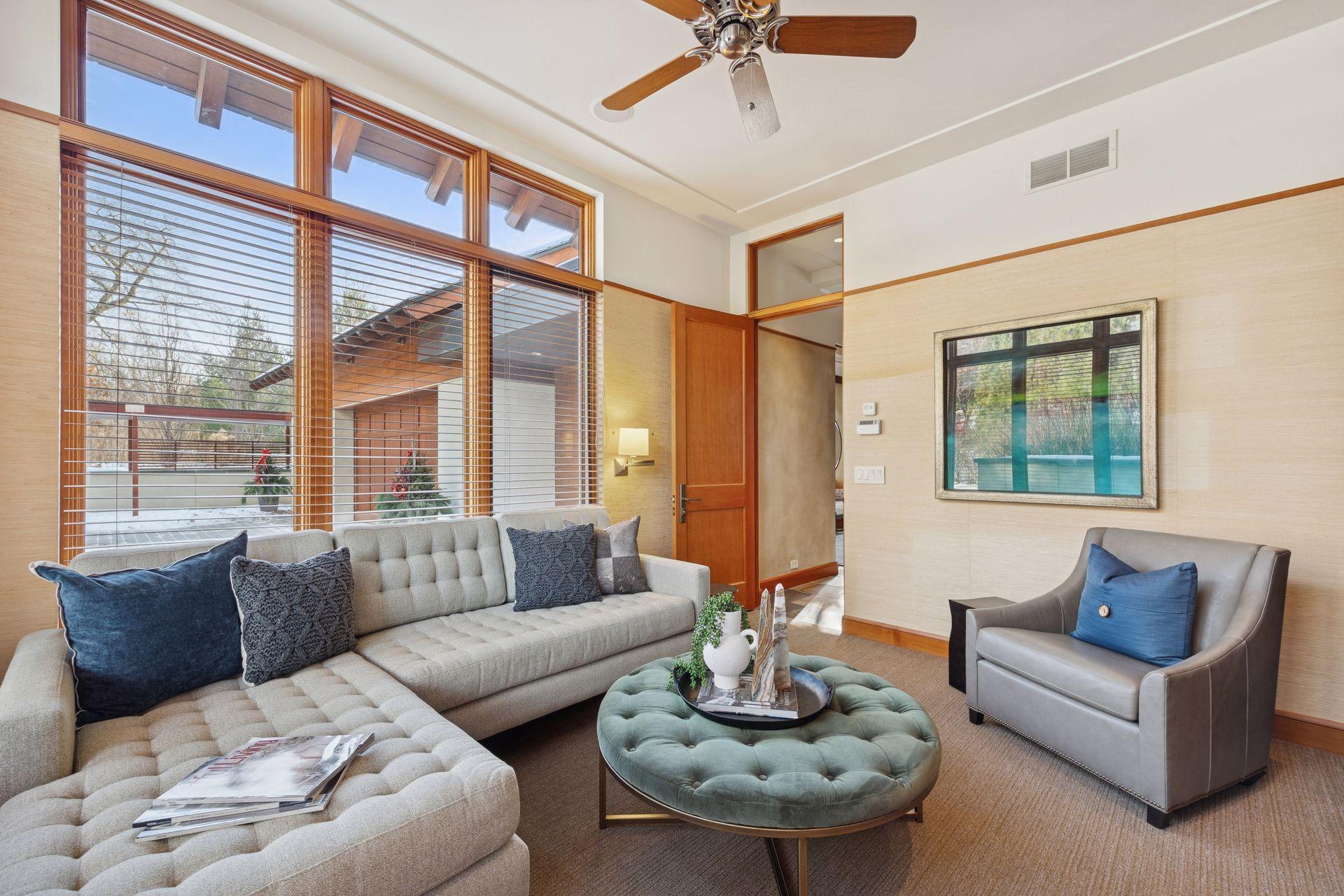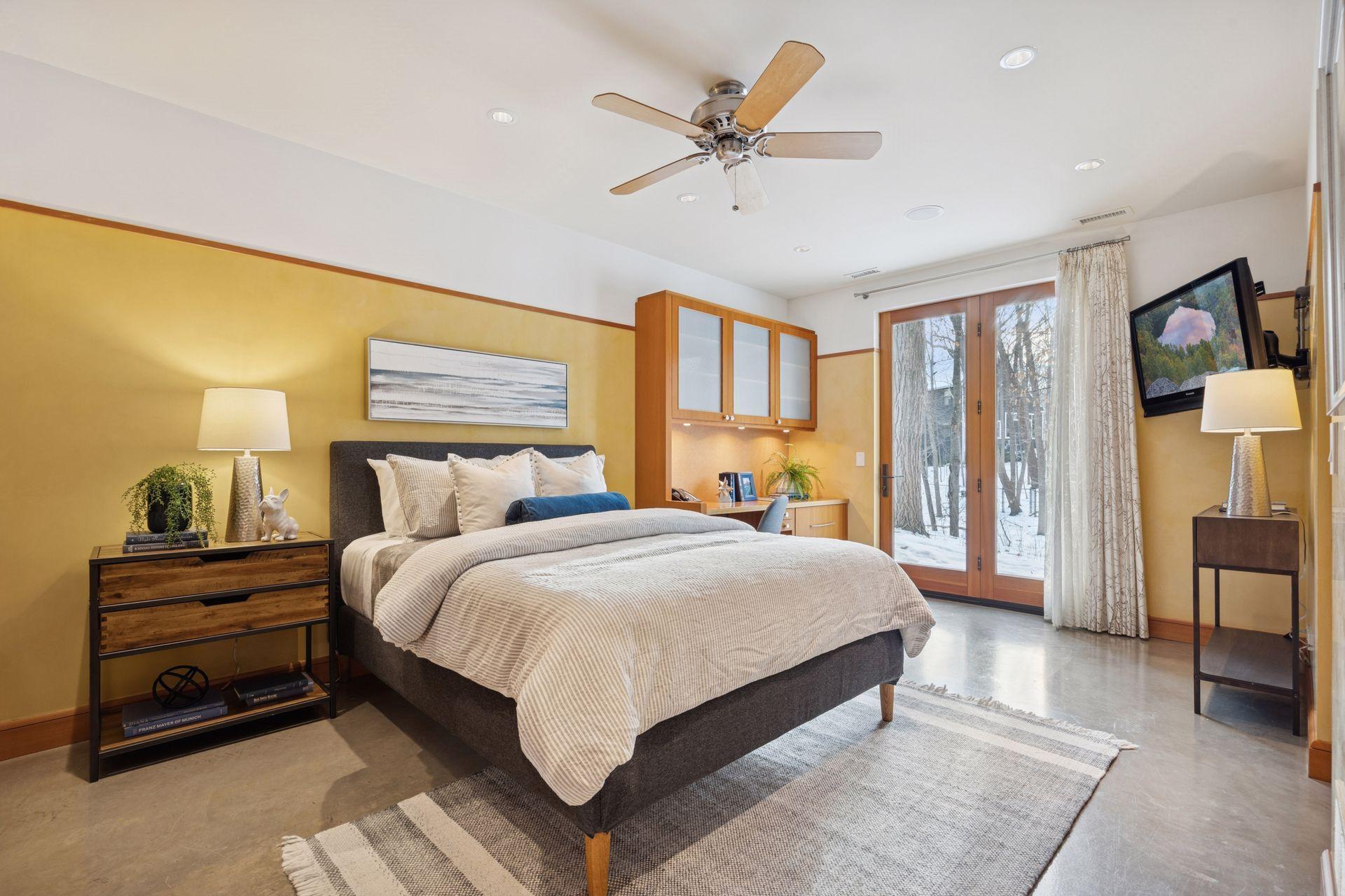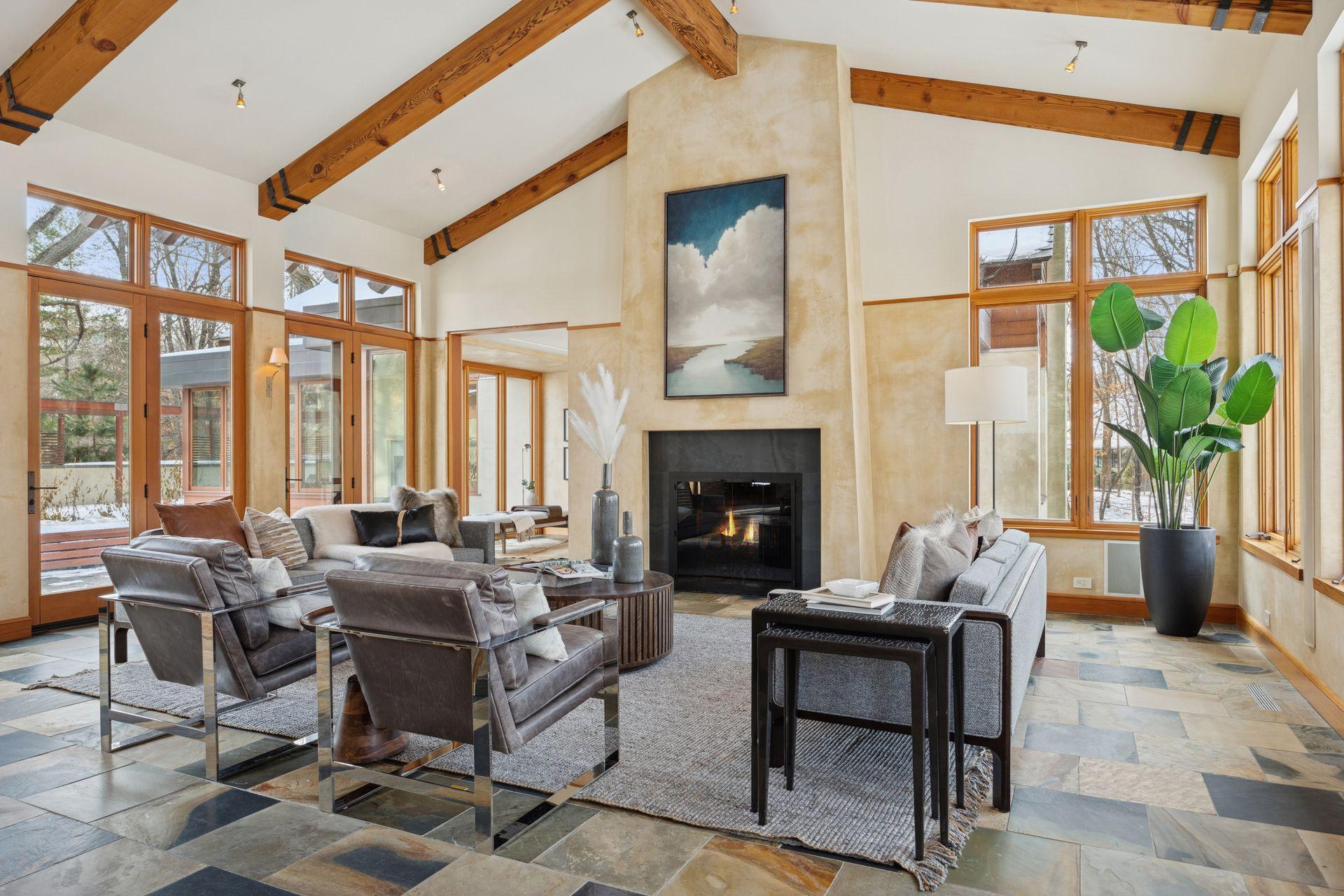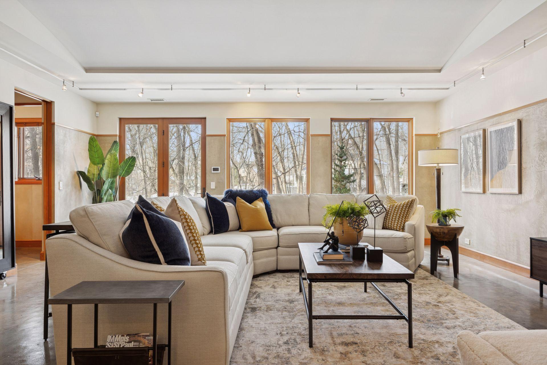 Custom Streeter Design/Build on a completely private 1.2 acre site of woods, manicured paths and courtyards in coveted Cottagewood. Where mountain resort meets sleek modern architecture, enjoy a masterful combination of elements; wood, stone, metals, warmth and natural light. A rare combination of grand yet intimate spaces for large and small gatherings boasts 15’ vaulted ceilings with beams reclaimed from a Northern Minnesota bridge. From the living and dining rooms, 30 feet of glass doors walk out to the bluestone courtyard with in-ground pool, bath, woodburning fireplace, and lounge. Just outside the courtyard, a screened gazebo for perfect for relaxing and nature views. A chef’s dream kitchen includes SubZero refrigerators and beverage drawers, 48” Wolf range and double wall ovens, Asko dishwashers, miles of soapstone, marbles, customized cabinetry, walk-in butler’s pantry, and dual islands. The sumptuous owner’s quarters overlooks acreage and a custom designed waterfall. Amenities include a fireplace, gorgeous private bath, and walk-in closet with wall of built-ins and laundry hookup. An executive office and handsome family room complete the main level. Three generously sized secondary bedrooms in the walkout level feature an ensuite with steam shower plus Jack and Jill bath, a study/hangout, recreation room, and wine cellar. Superb mechanicals include in-floor heat throughout; new cedar shake roof. The oversized, triple heated garage has two walls of storage closets, floor drains and a wash sink. Have it all in this unmatched location a short walk to the lake. Enjoy Minnetonka schools, downtown Excelsior shops and restaurants. One of a kind gem!