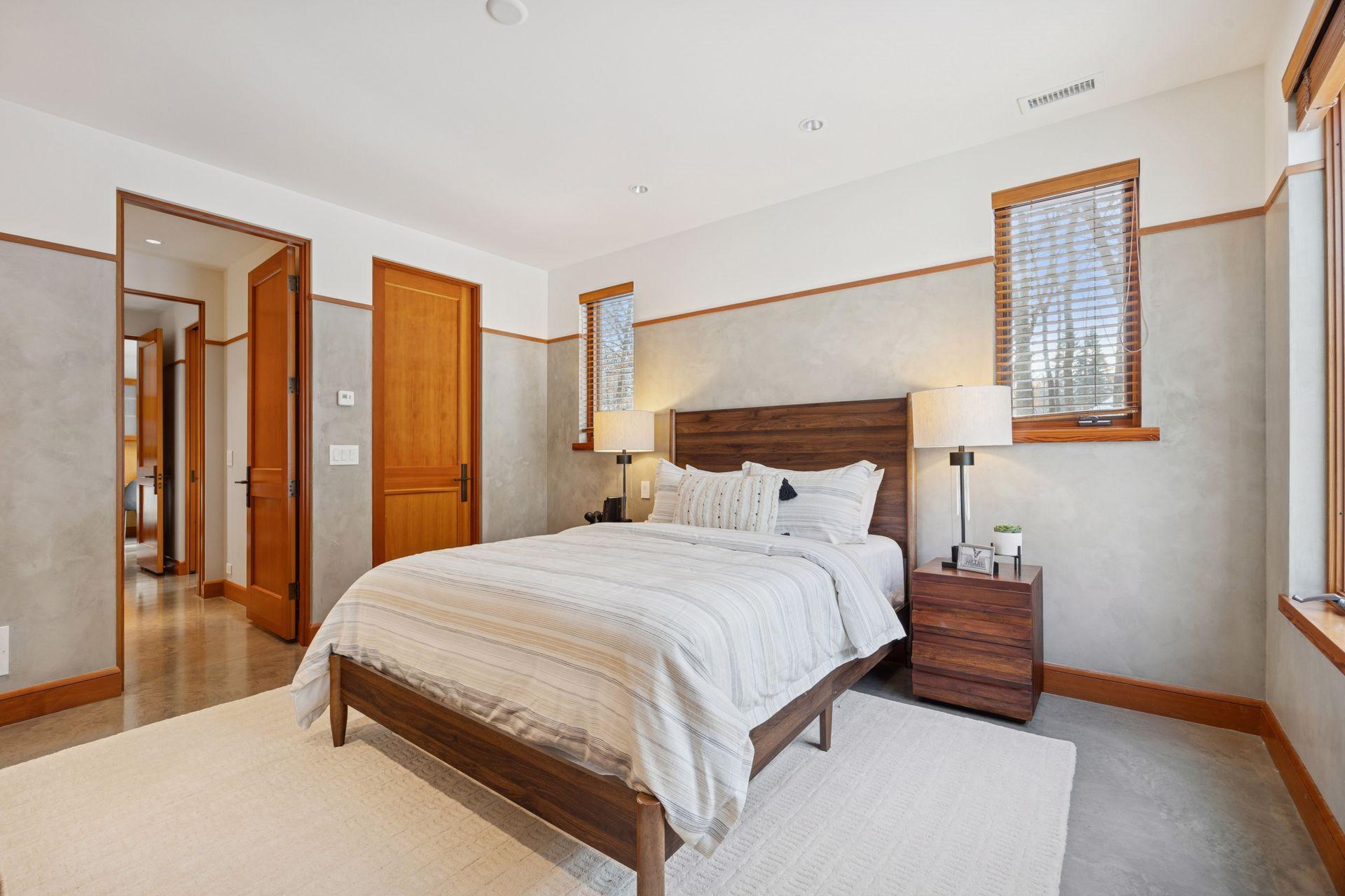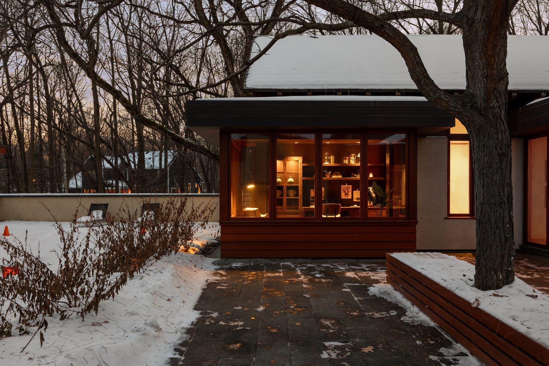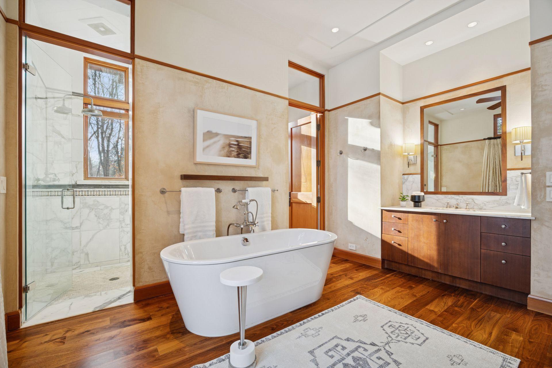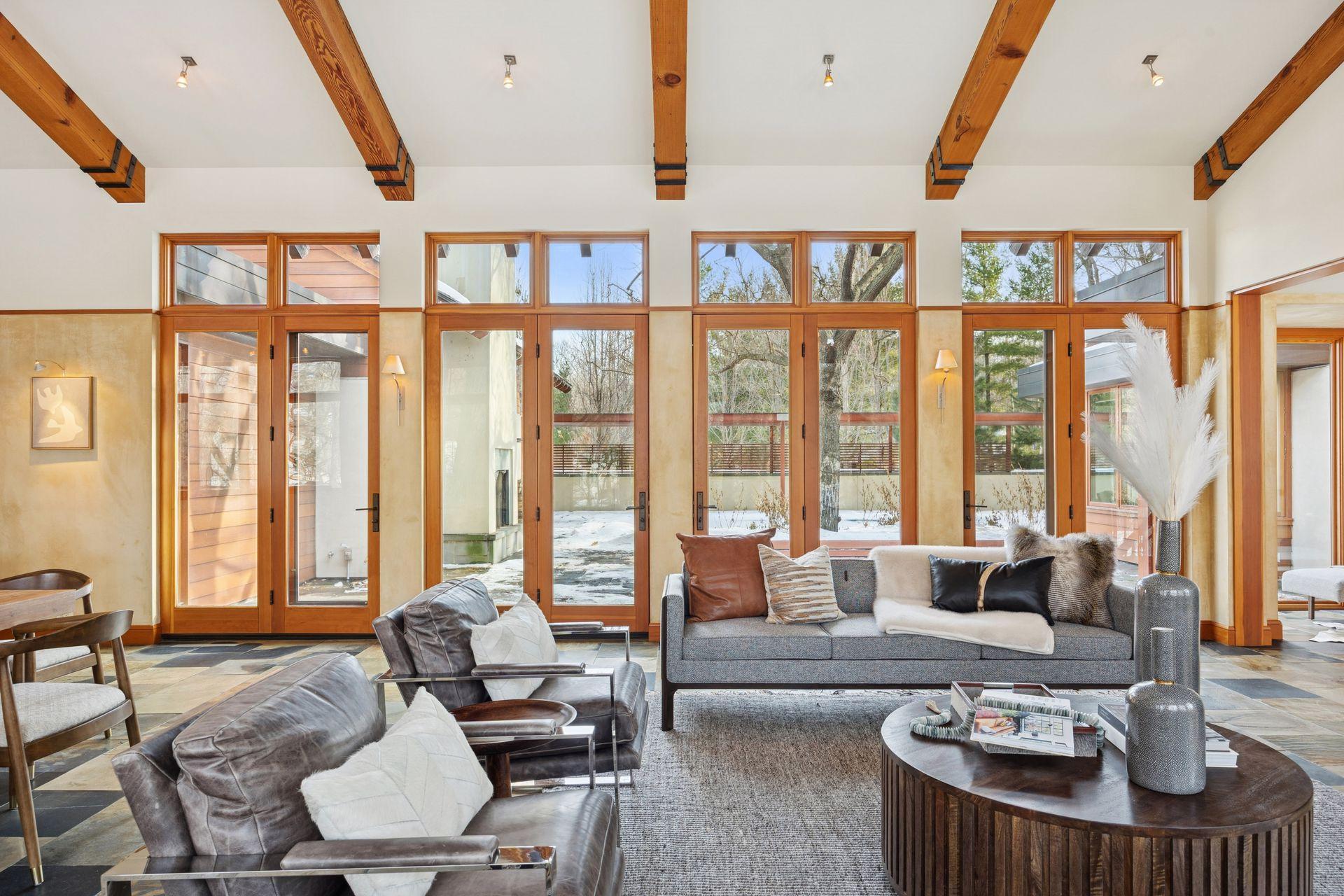 Custom Streeter Design/Build on a completely private 1.2 acre site of woods, manicured paths and courtyards in coveted Cottagewood. Where mountain resort meets sleek modern architecture, enjoy a masterful combination of elements; wood, stone, metals, warmth and natural light. A rare combination of grand yet intimate spaces for large and small gatherings boasts 15’ vaulted ceilings with beams reclaimed from a Northern Minnesota bridge. From the living and dining rooms, 30 feet of glass doors walk out to the bluestone courtyard with in-ground pool, bath, woodburning fireplace, and lounge. Just outside the courtyard, a screened gazebo for perfect for relaxing and nature views. A chef’s dream kitchen includes SubZero refrigerators and beverage drawers, 48” Wolf range and double wall ovens, Asko dishwashers, miles of soapstone, marbles, customized cabinetry, walk-in butler’s pantry, and dual islands. The sumptuous owner’s quarters overlooks acreage and a custom designed waterfall. Amenities include a fireplace, gorgeous private bath, and walk-in closet with wall of built-ins and laundry hookup. An executive office and handsome family room complete the main level. Three generously sized secondary bedrooms in the walkout level feature an ensuite with steam shower plus Jack and Jill bath, a study/hangout, recreation room, and wine cellar. Superb mechanicals include in-floor heat throughout; new cedar shake roof. The oversized, triple heated garage has two walls of storage closets, floor drains and a wash sink. Have it all in this unmatched location a short walk to the lake. Enjoy Minnetonka schools, downtown Excelsior shops and restaurants. One of a kind gem!